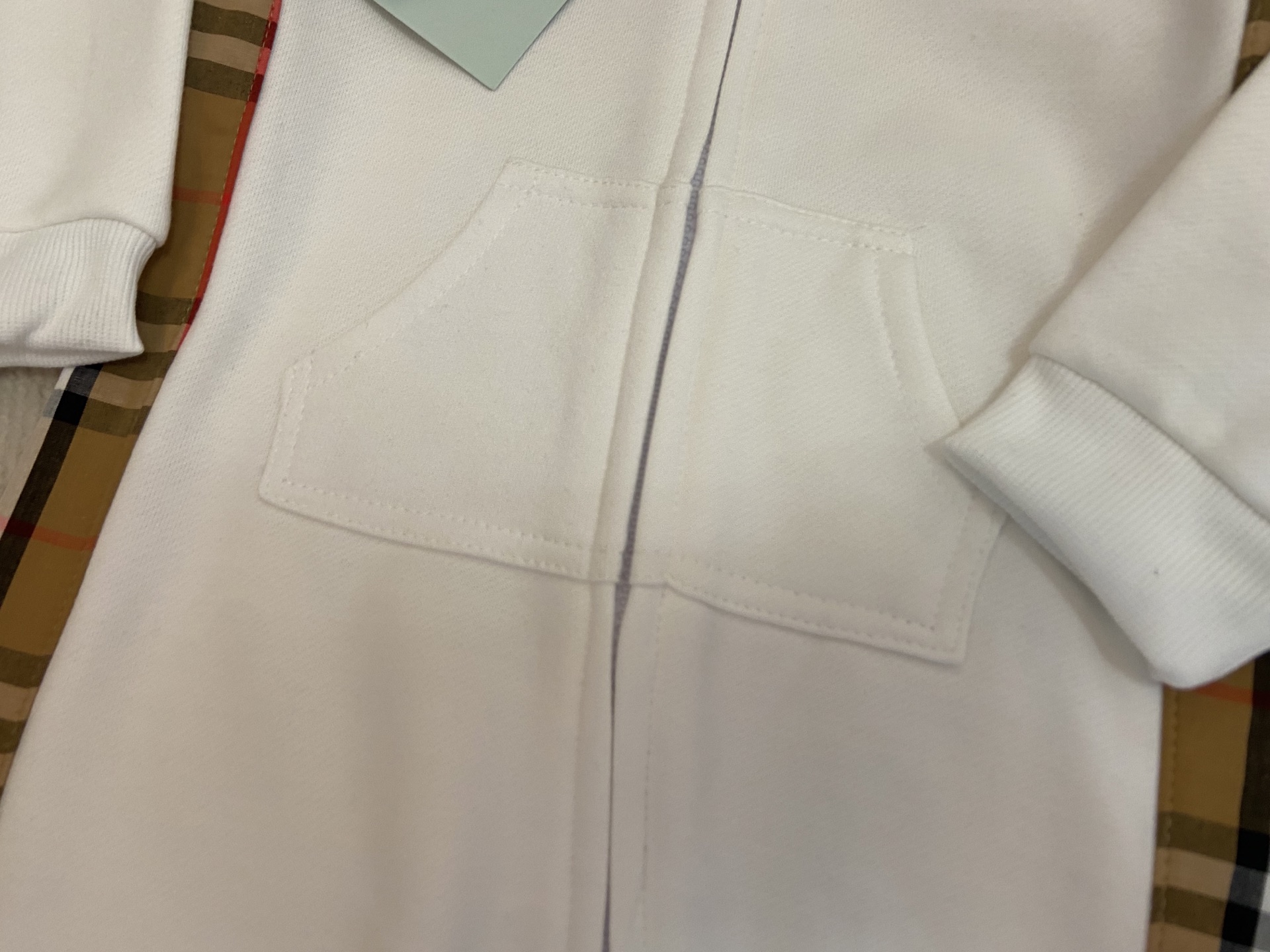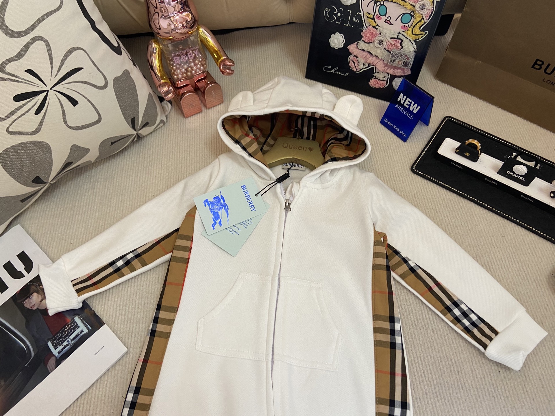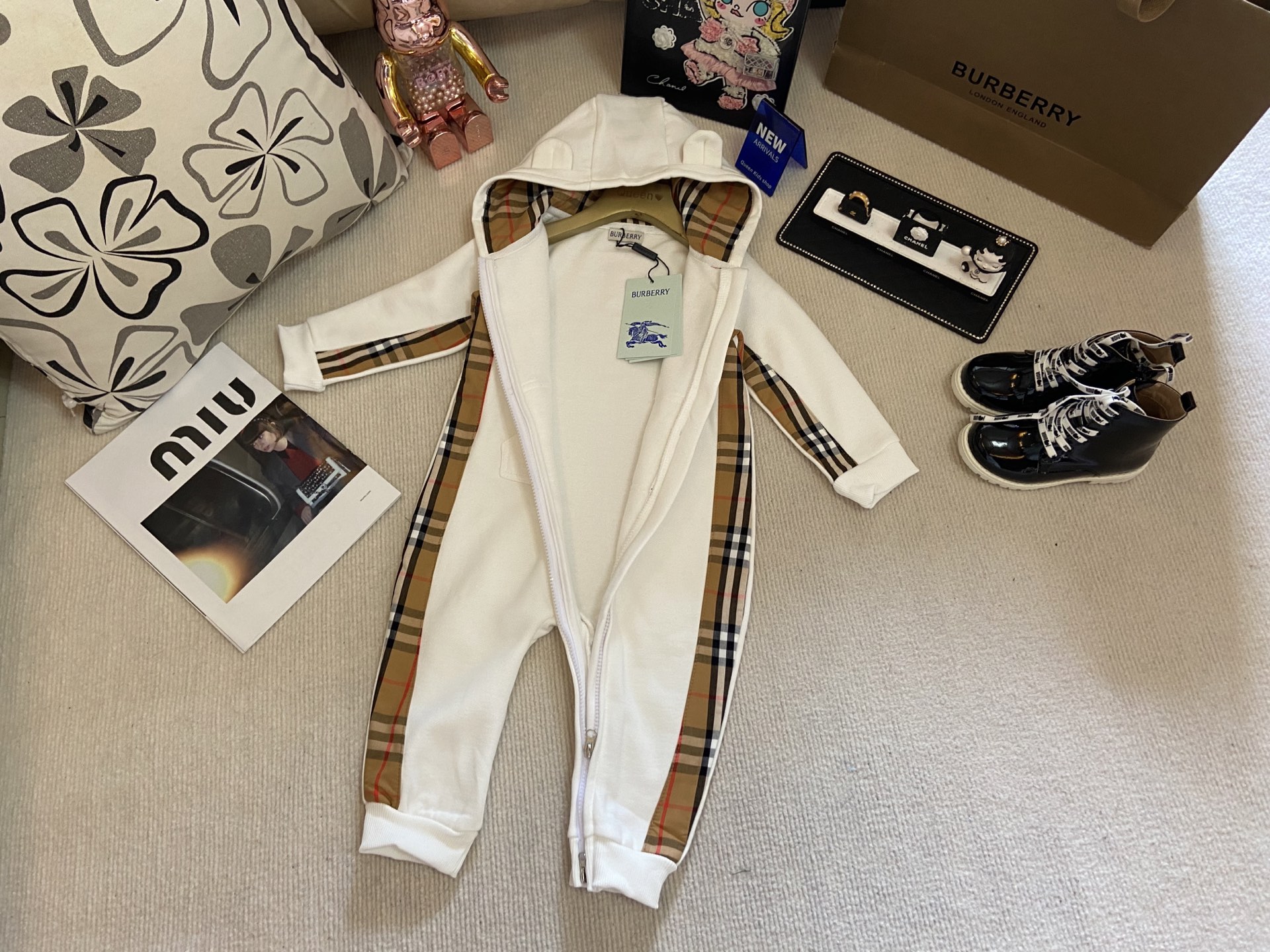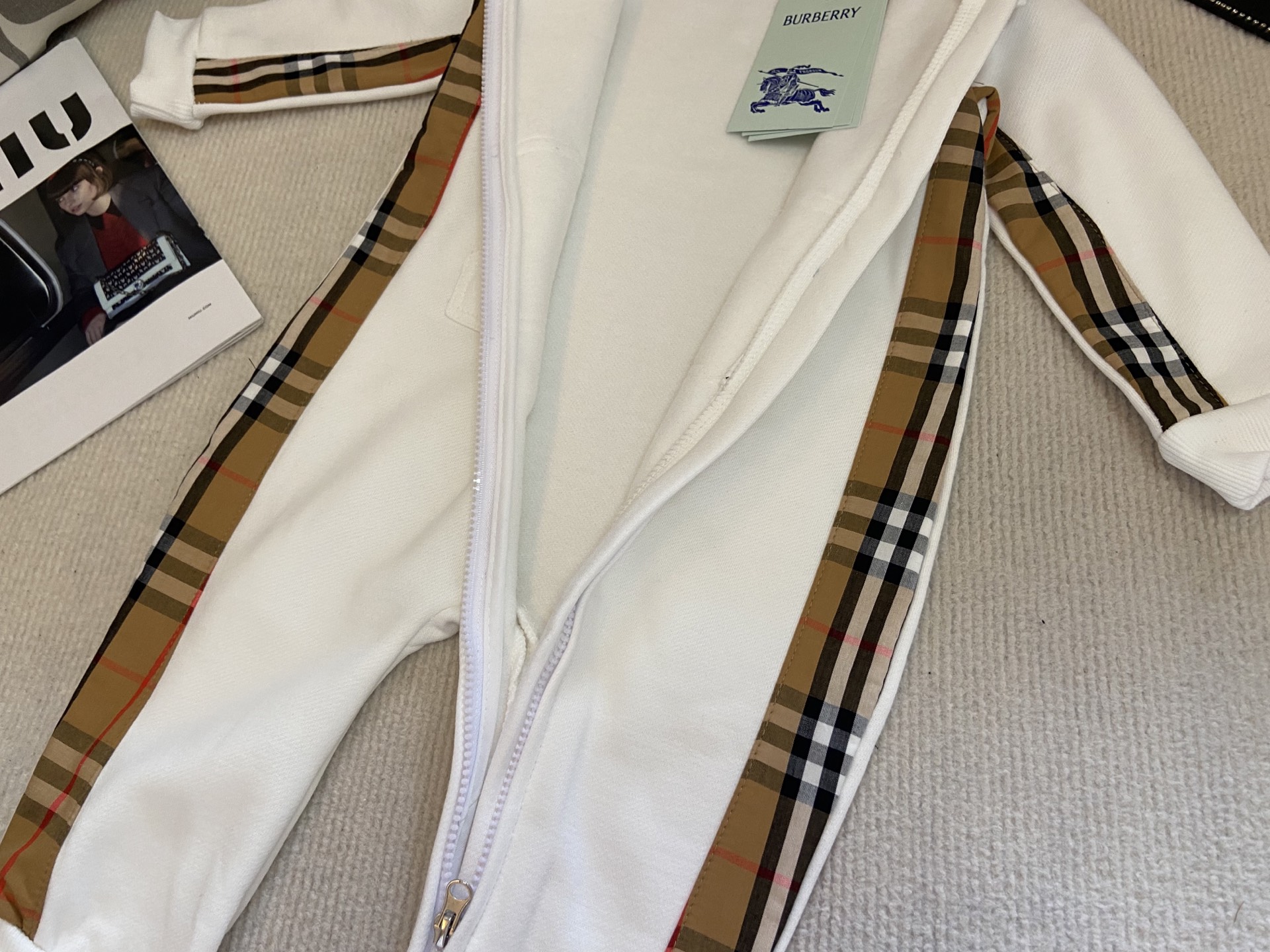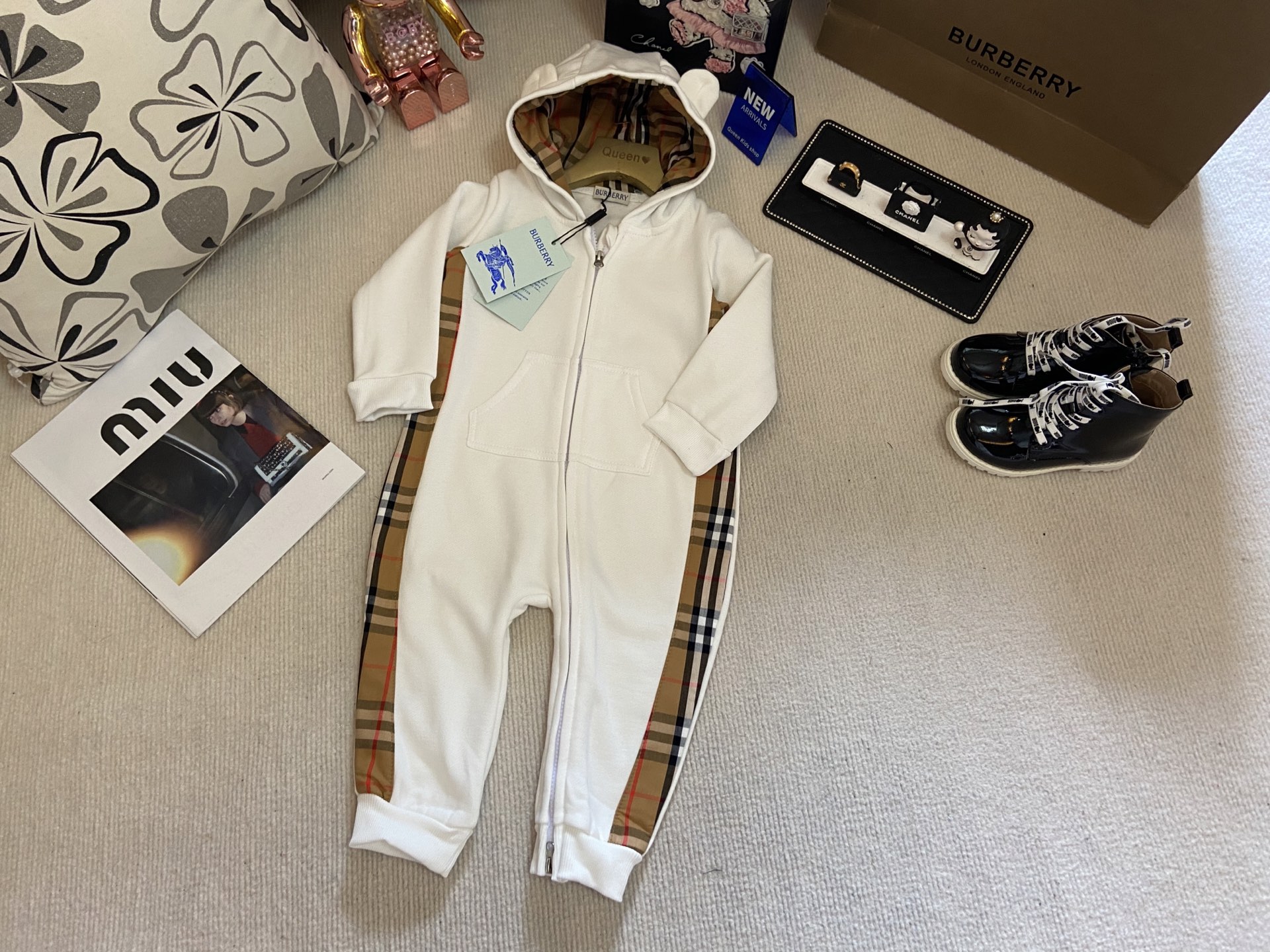 This Burberry baby jumpsuit is the perfect blend of comfort and style for your little one. Crafted with care and attention to detail, this romper is sure to be a favorite.