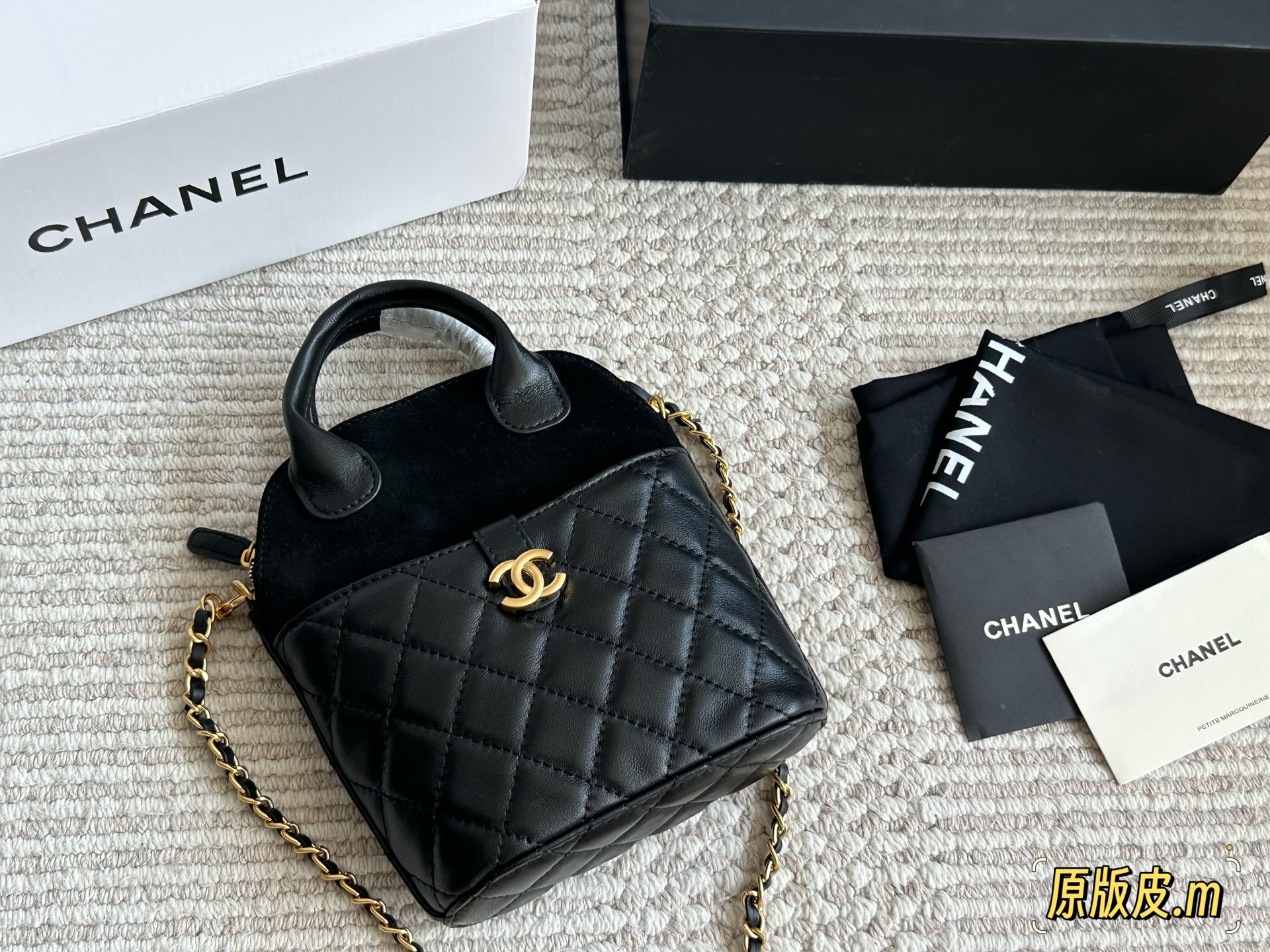 This Chanel small shell bag in lambskin is both elegant and casual. The chain length is suitable for cross-body wear, perfect for daily use.