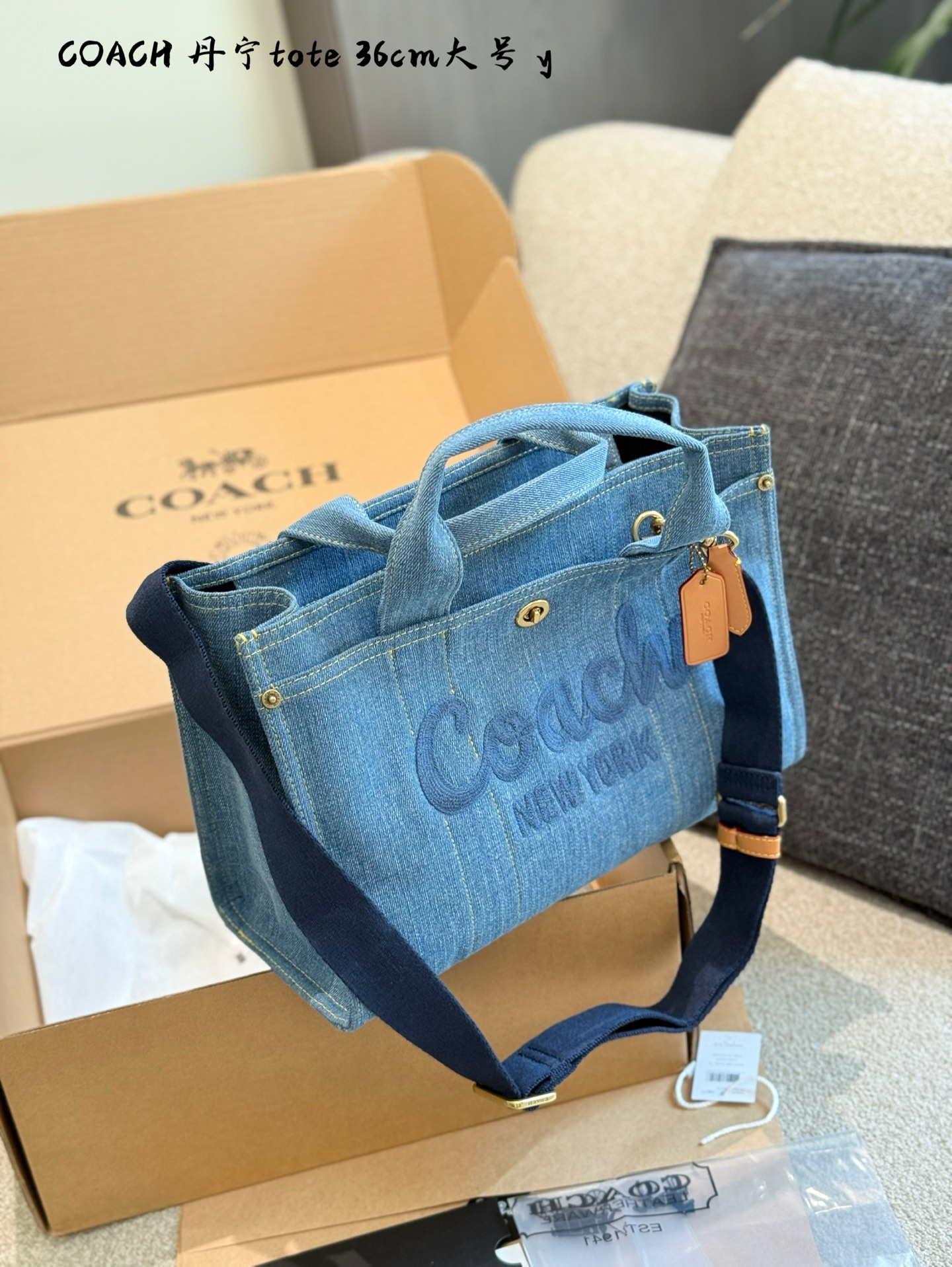 Coach Denim Tote Bag, Stylish and Functional for Everyday Use - 36cm