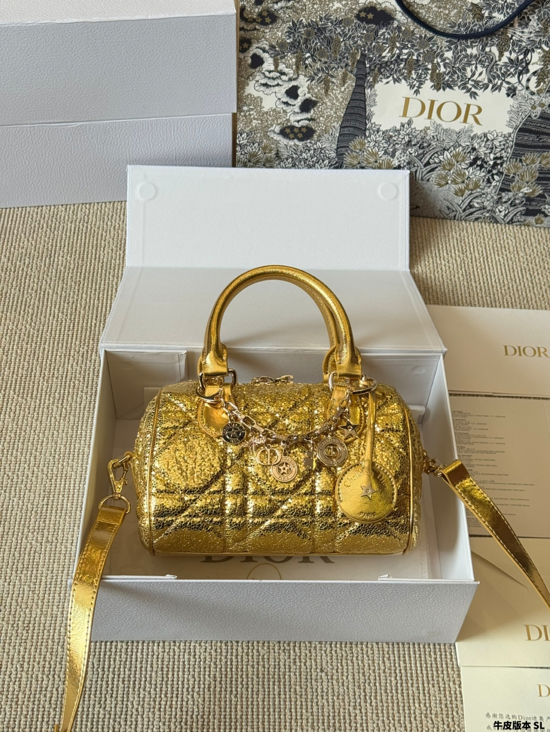 The DIORgroove bowling bag in denim blue leather is stylish and durable. Mini and practical, perfect for daily use. Size: 20 x 17cm.