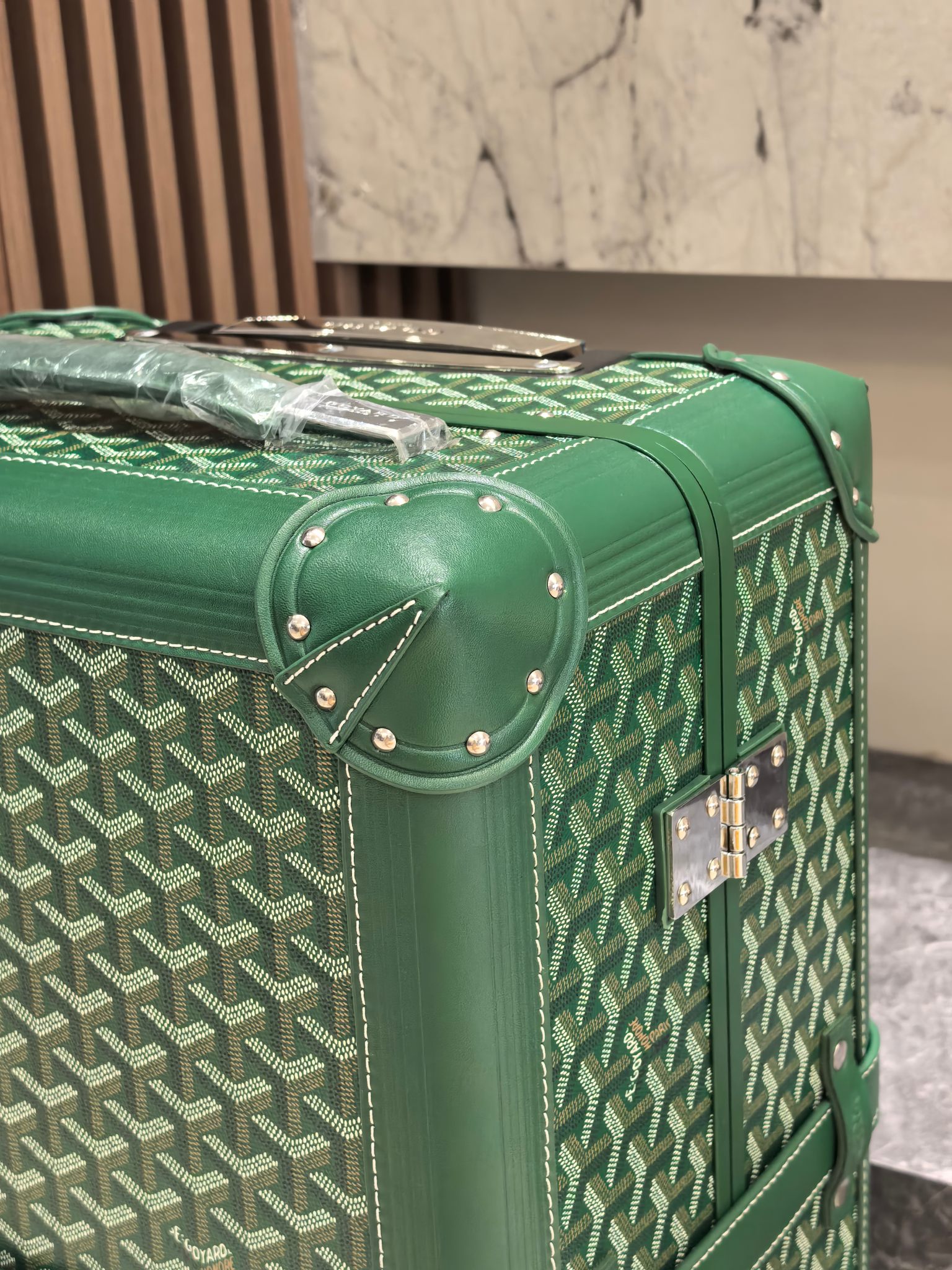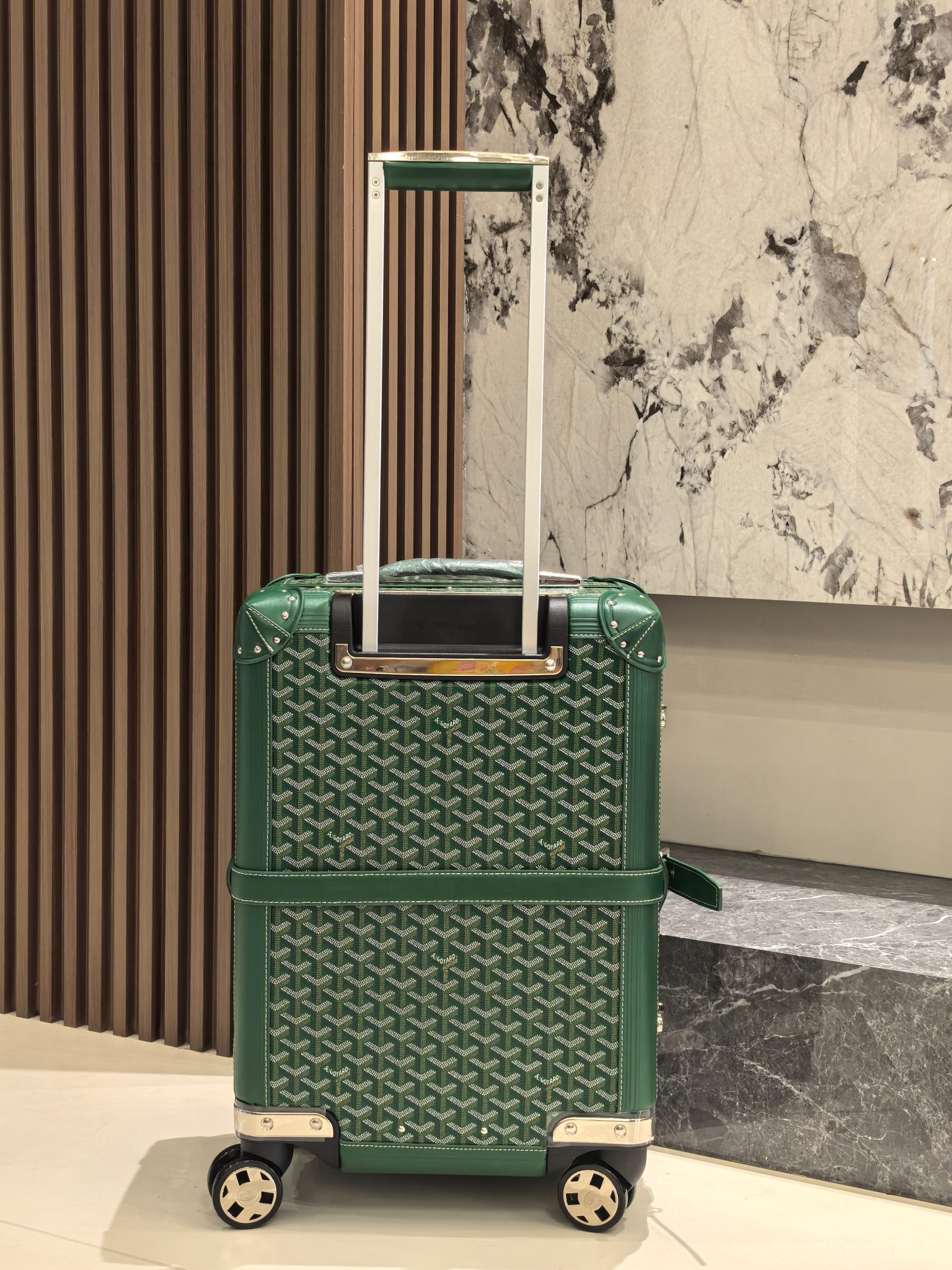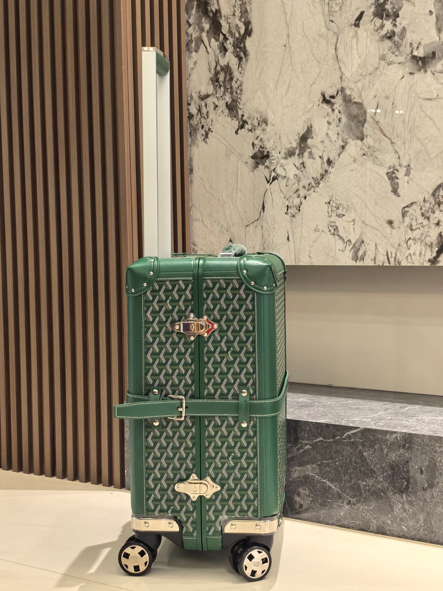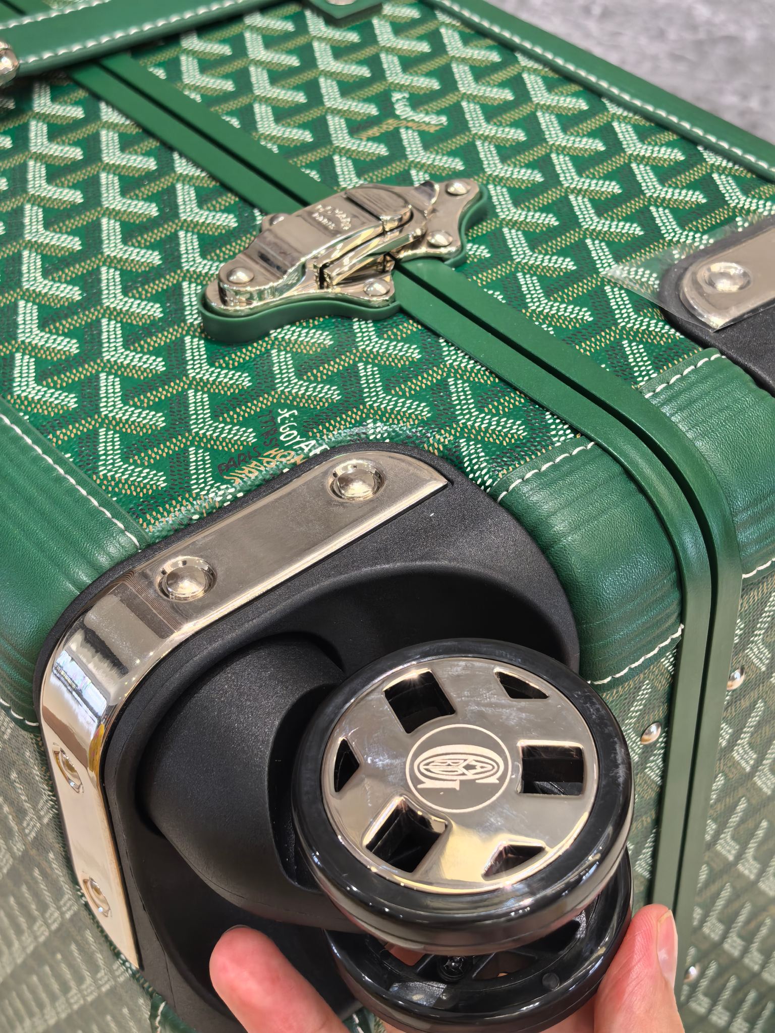 Goyard Green 20-Inch Carry-On Suitcase: Handmade Luxury Travel Companion
