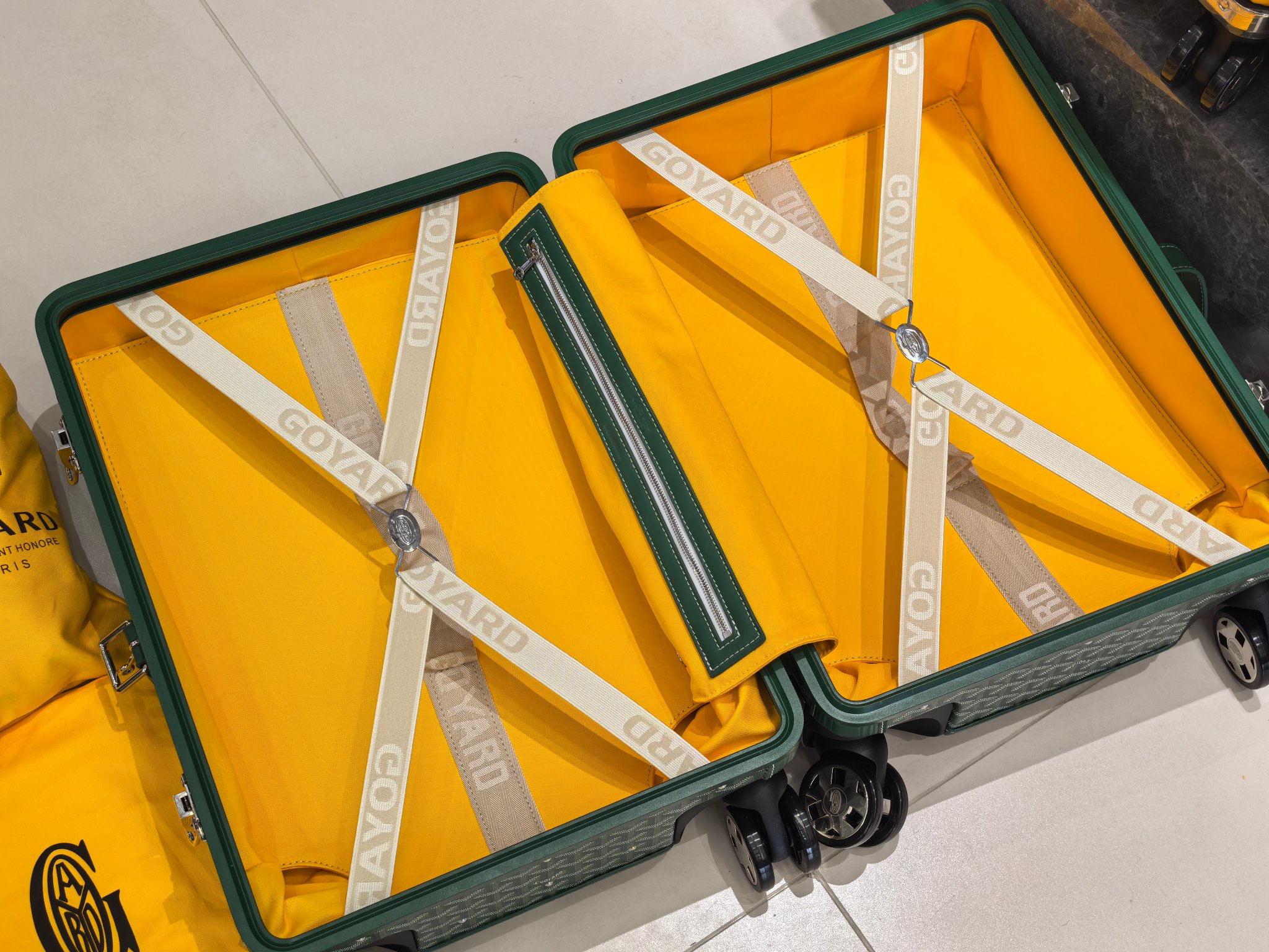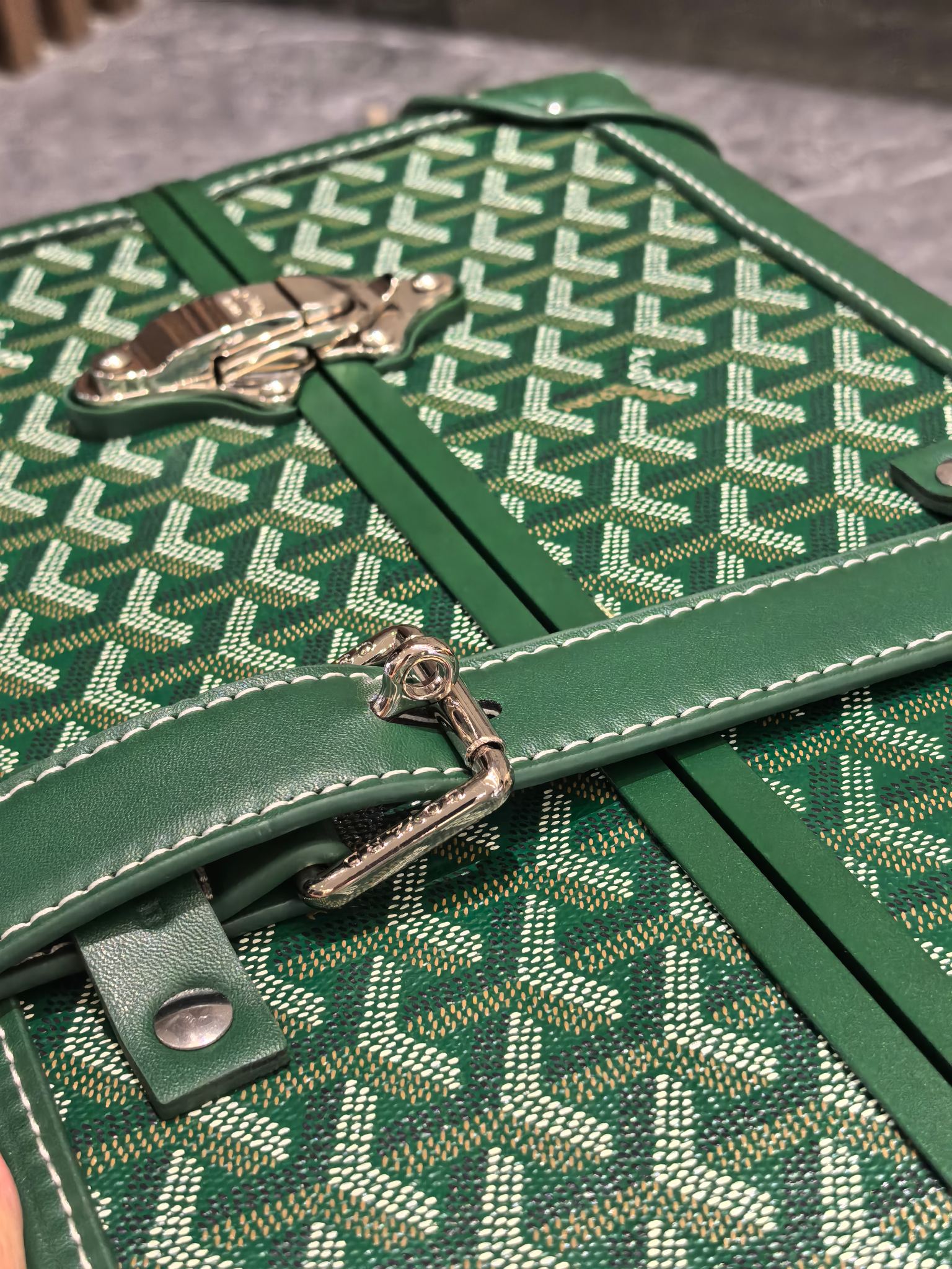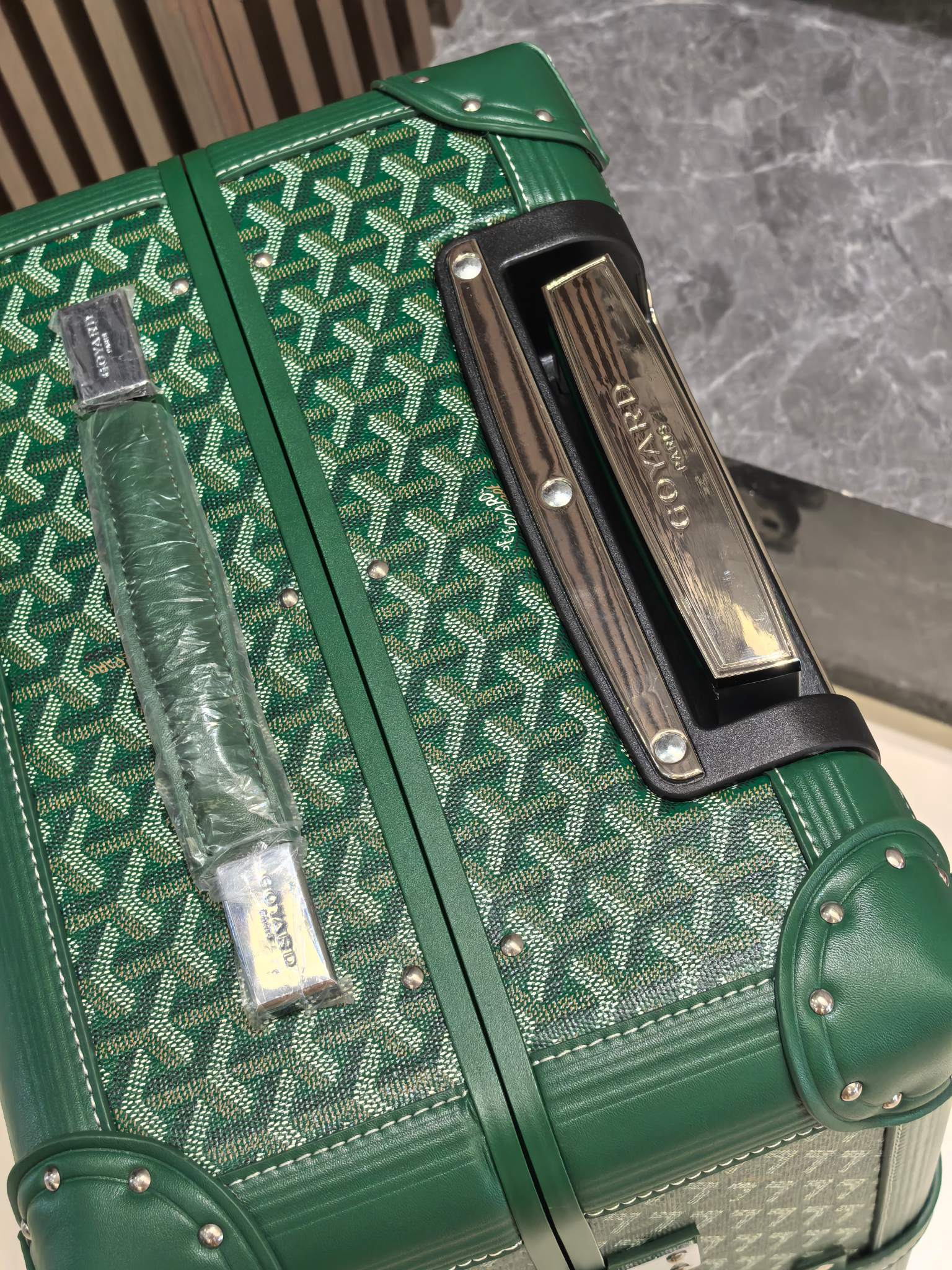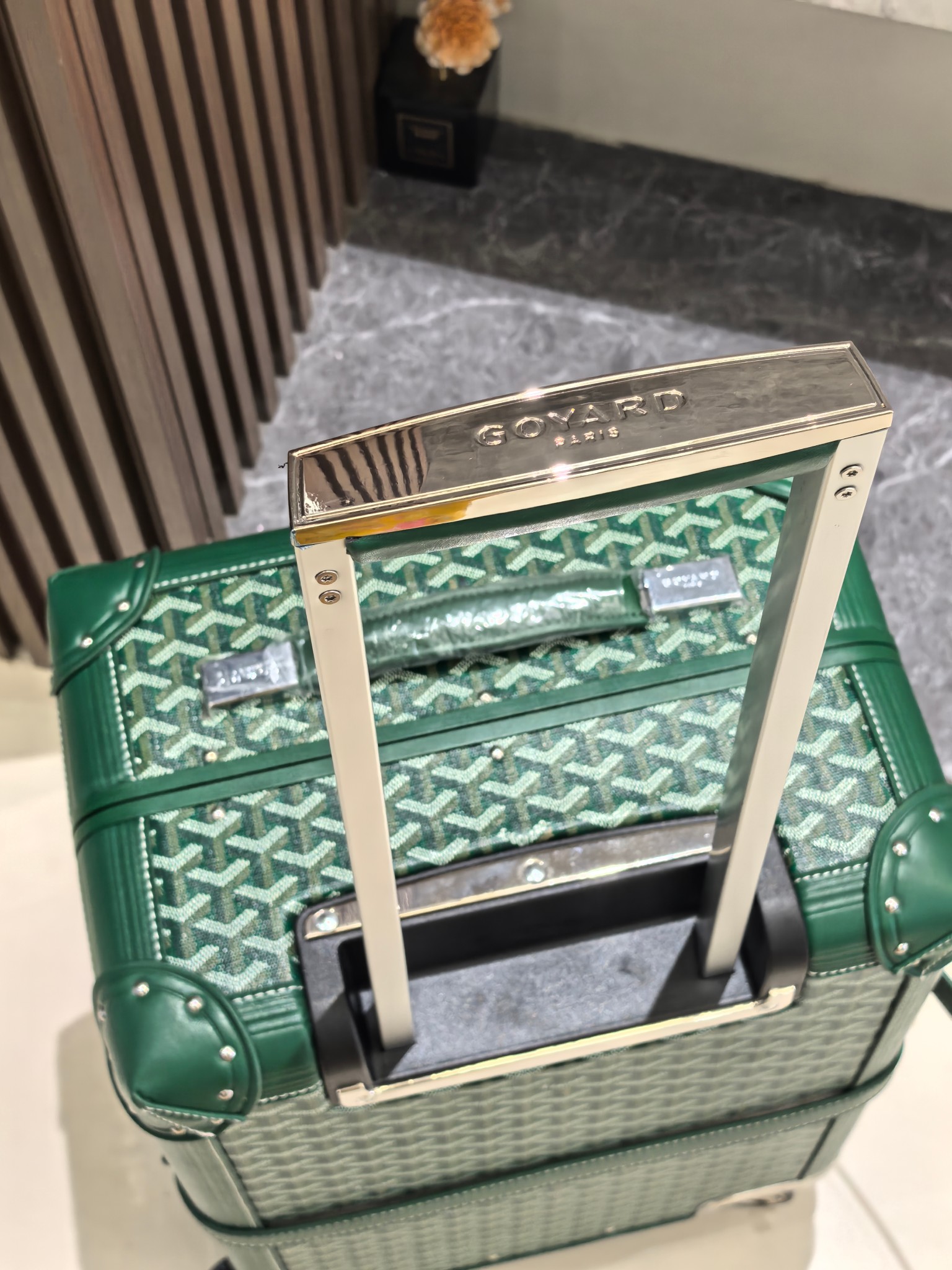 Goyard Green 20-Inch Carry-On Suitcase: Handmade Luxury Travel Companion