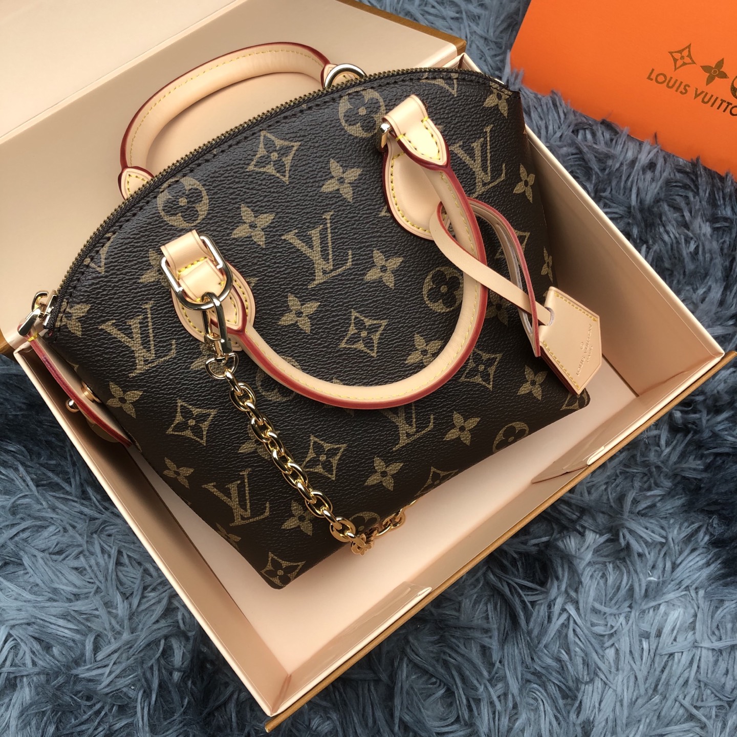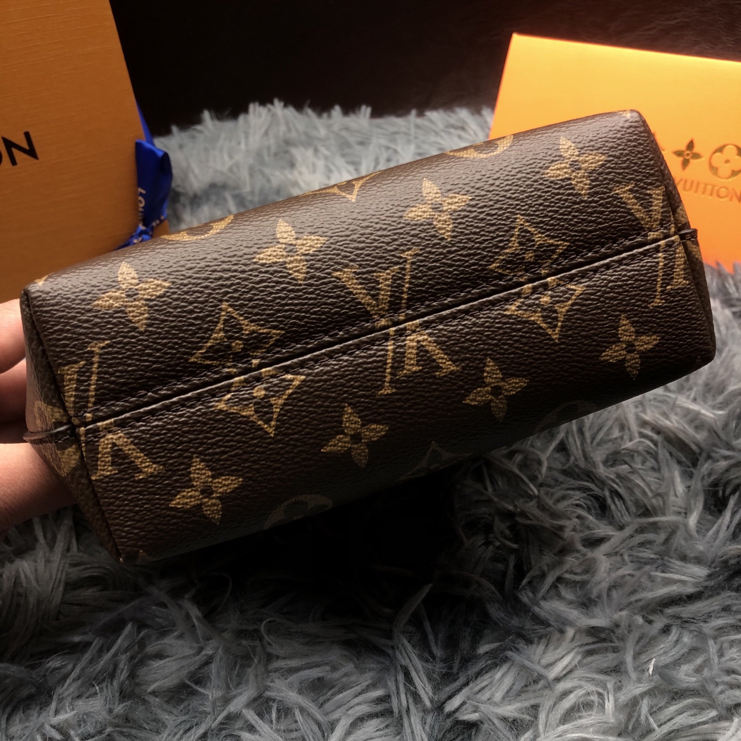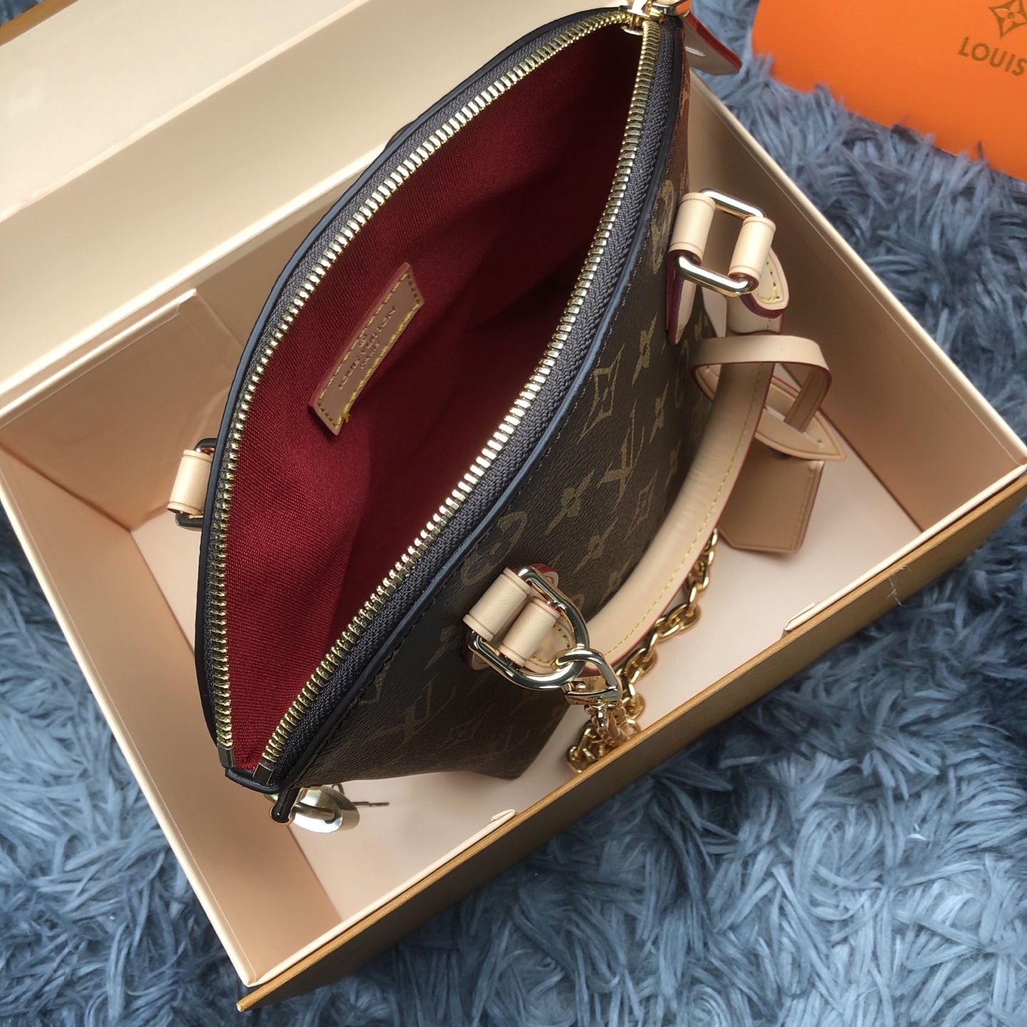 - Material: Monogram coated canvas, cowhide-leather trim, textile lining