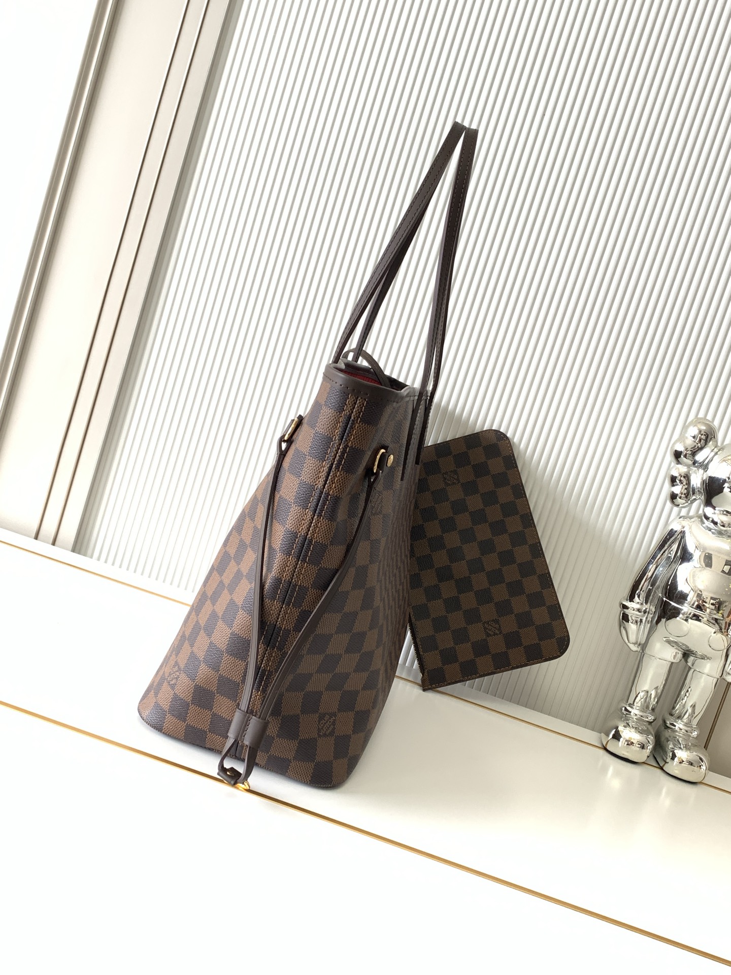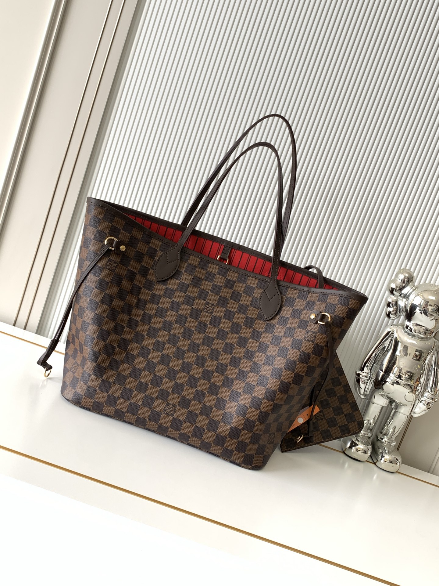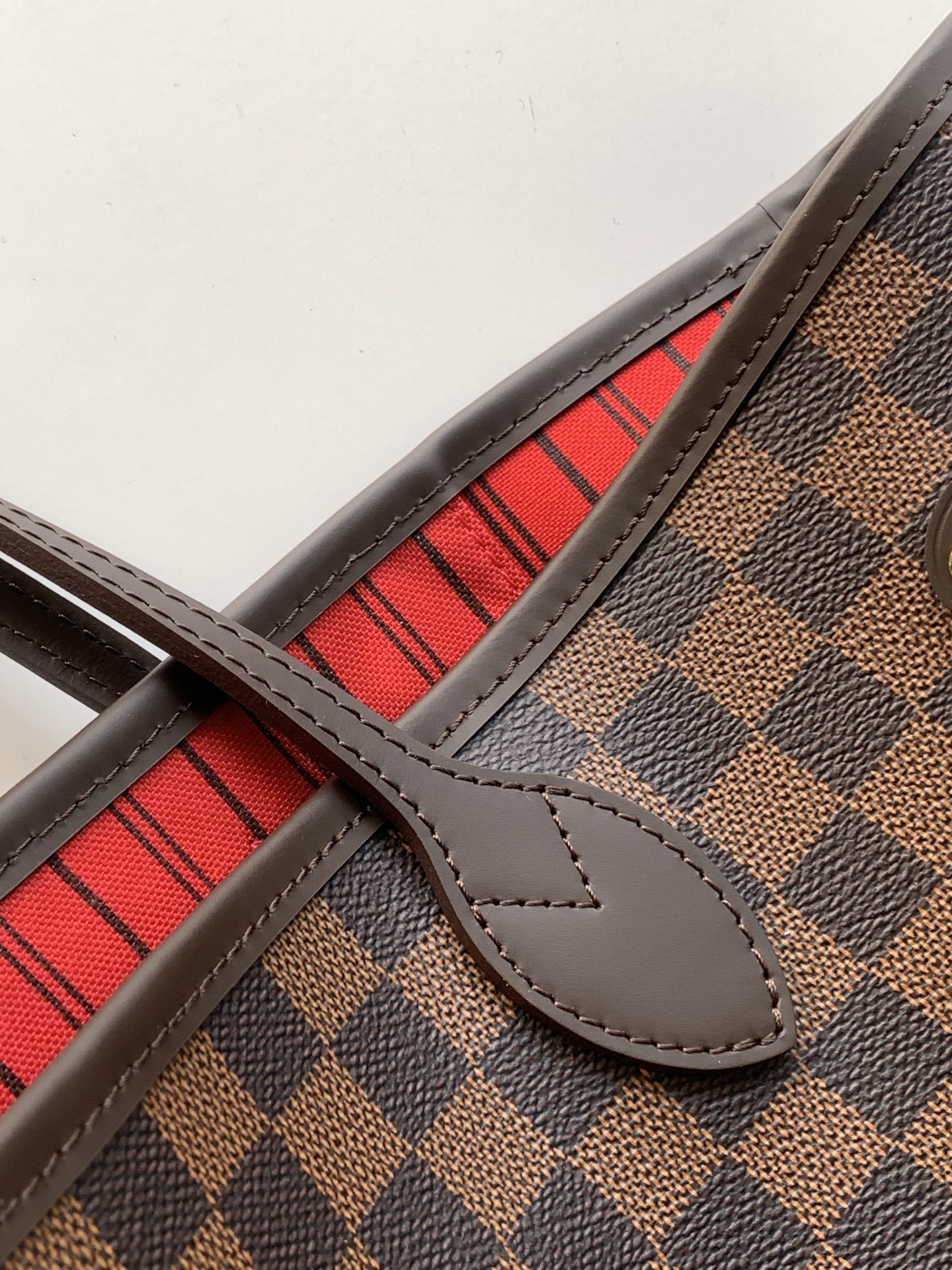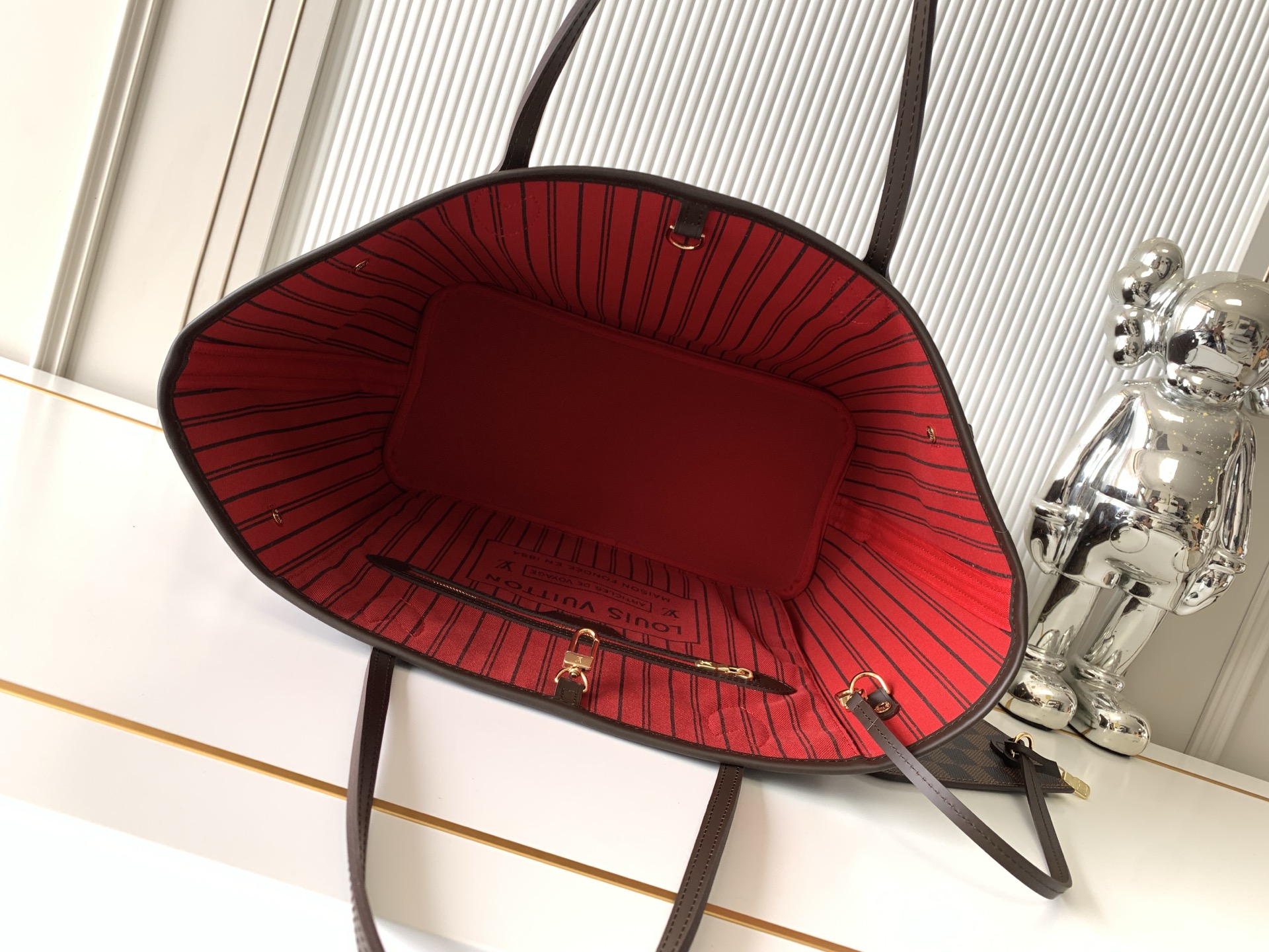 Louis Vuitton Neverfull Medium Tote Bag Damier Ebene with Red Interior