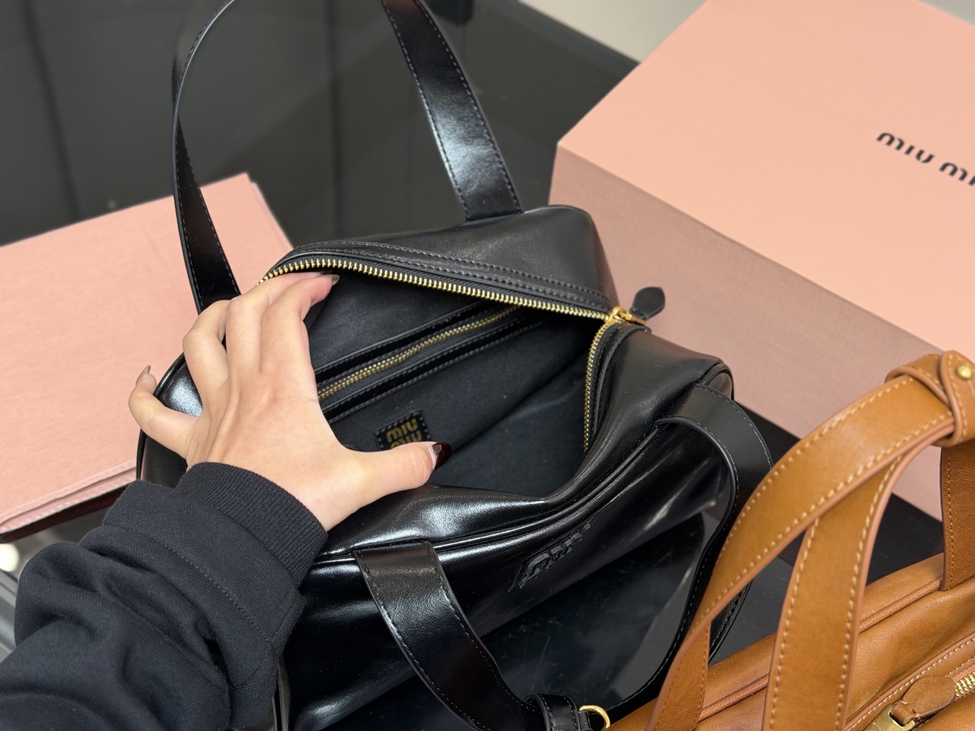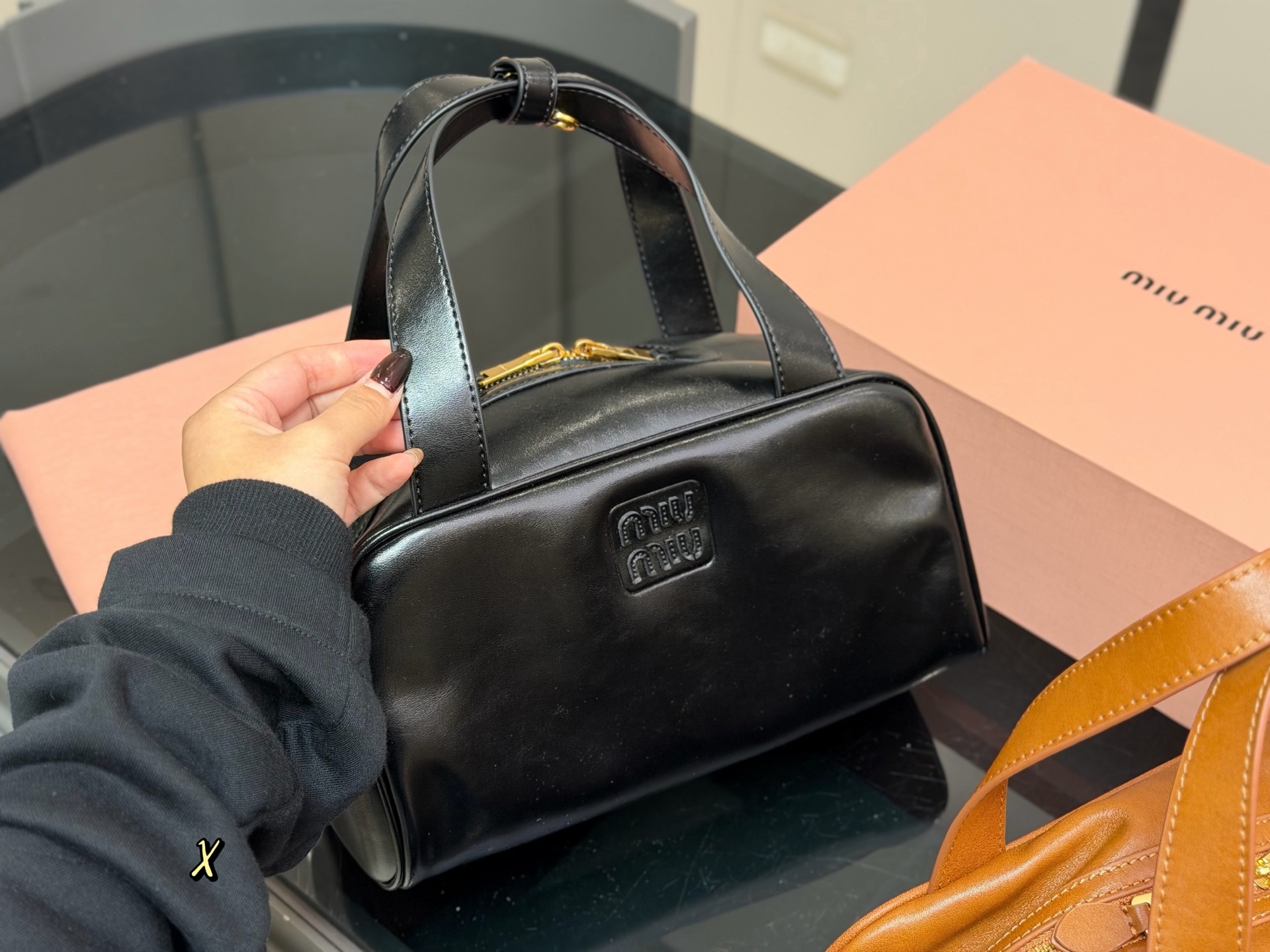 Elevate your look with this Miu Miu Bowling/Briefcase Bag. Carry by hand or use the shoulder strap. Provides ample space for your necessities.