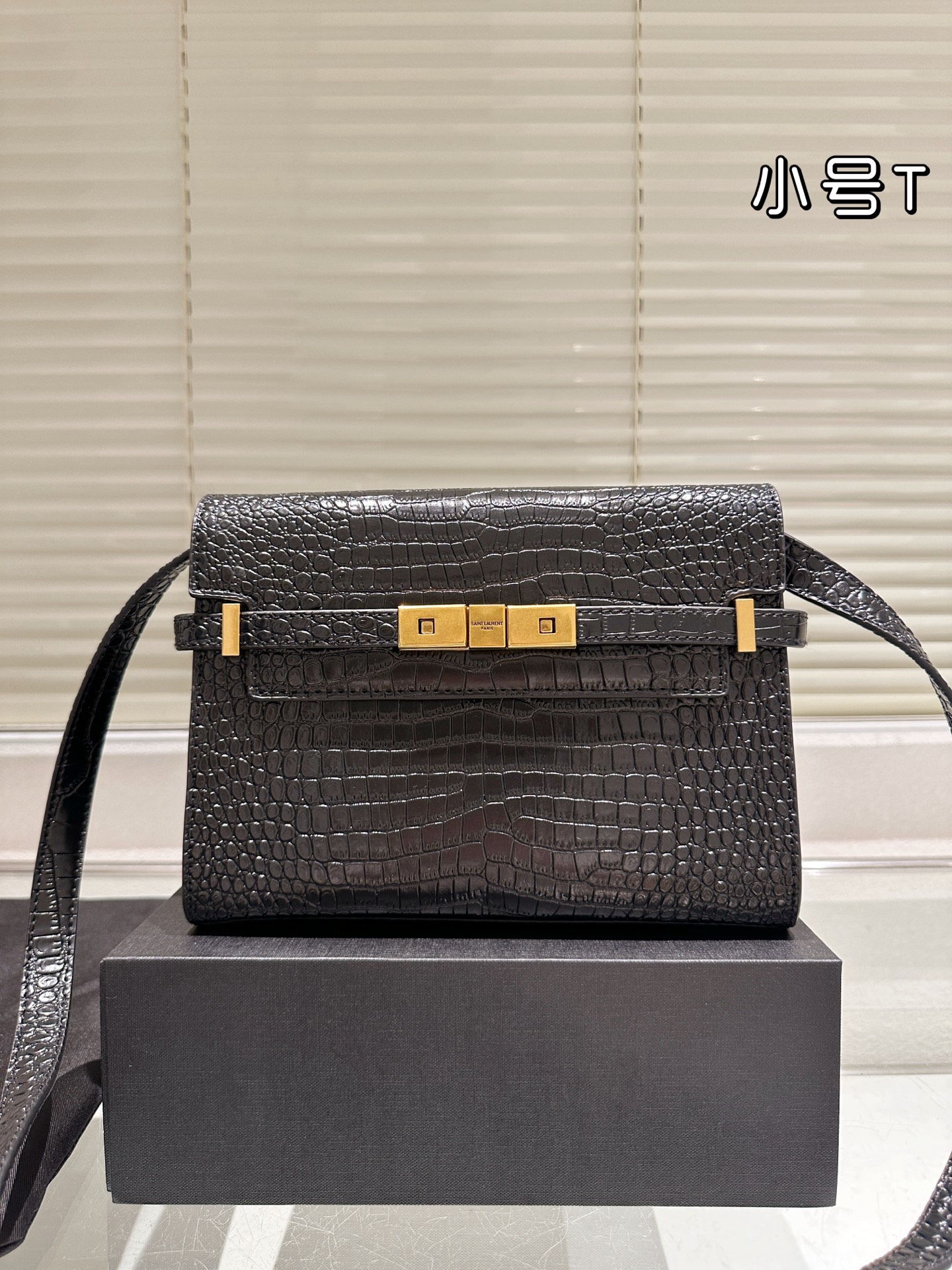 Yves Saint Laurent Manhattan Box Bag in Embossed Leather, Adjustable Strap