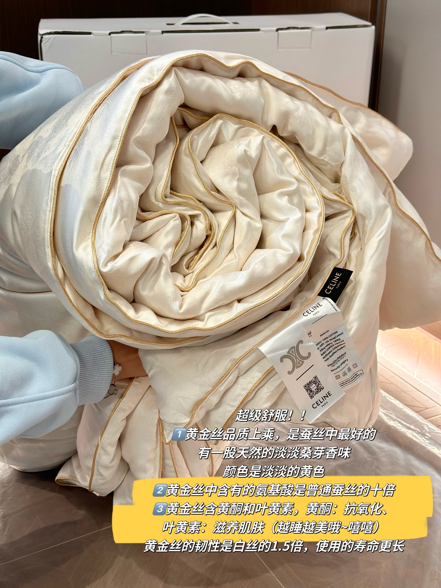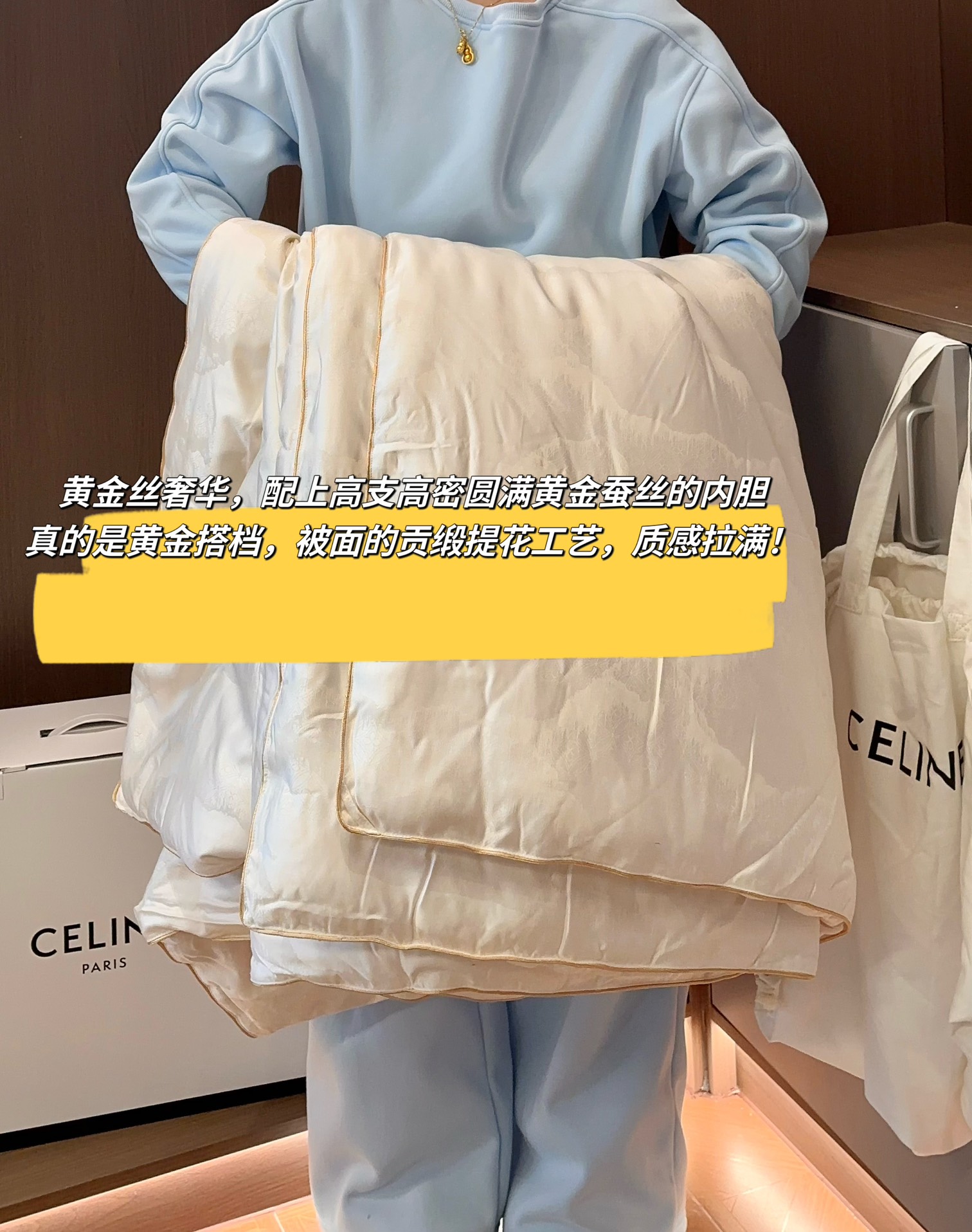 Experience luxury with this Celine quilt.It features high yarn density fabric, imported silver thread accents, and meticulous craftsmanship for a restful sleep.