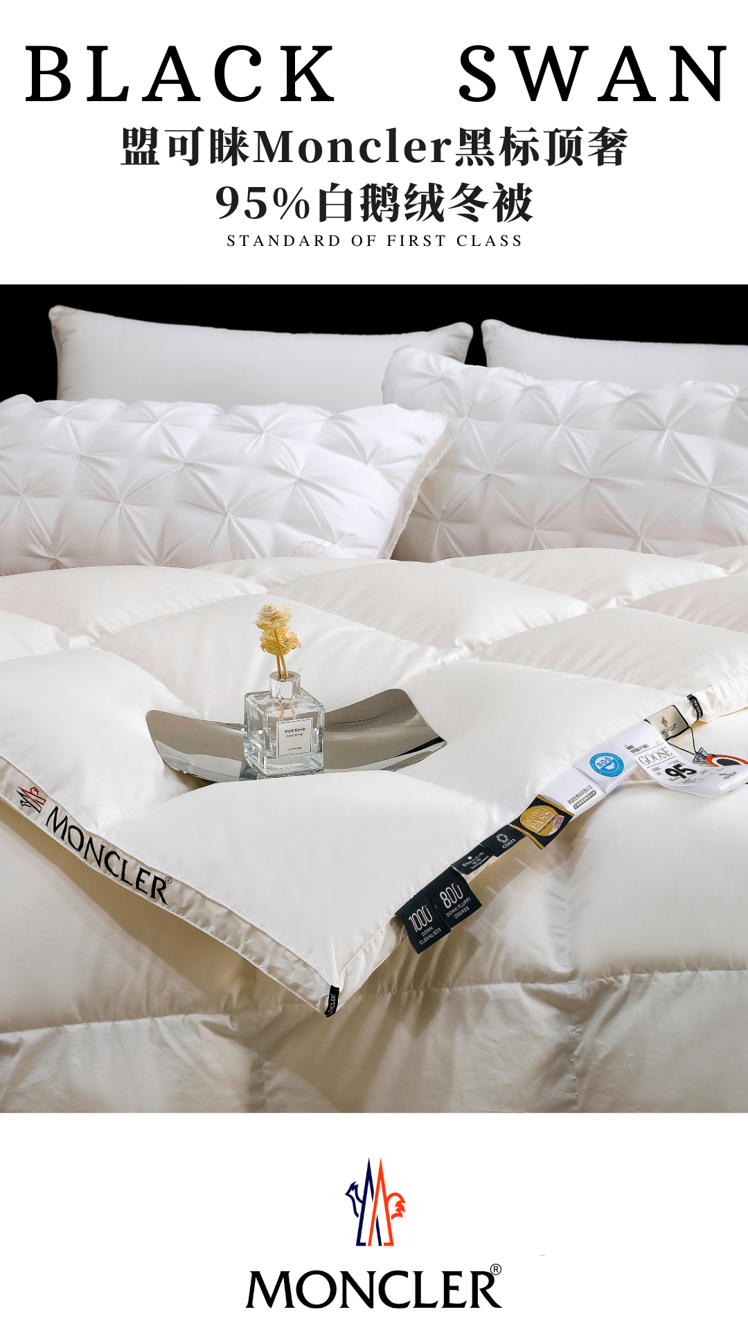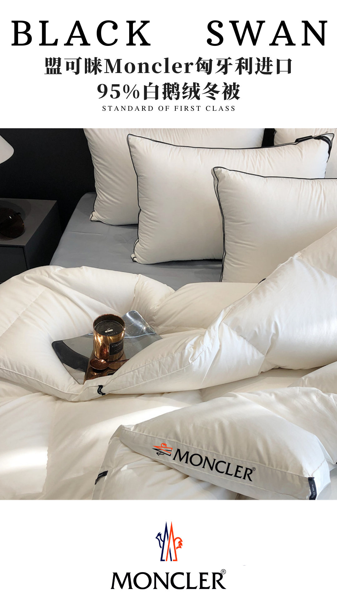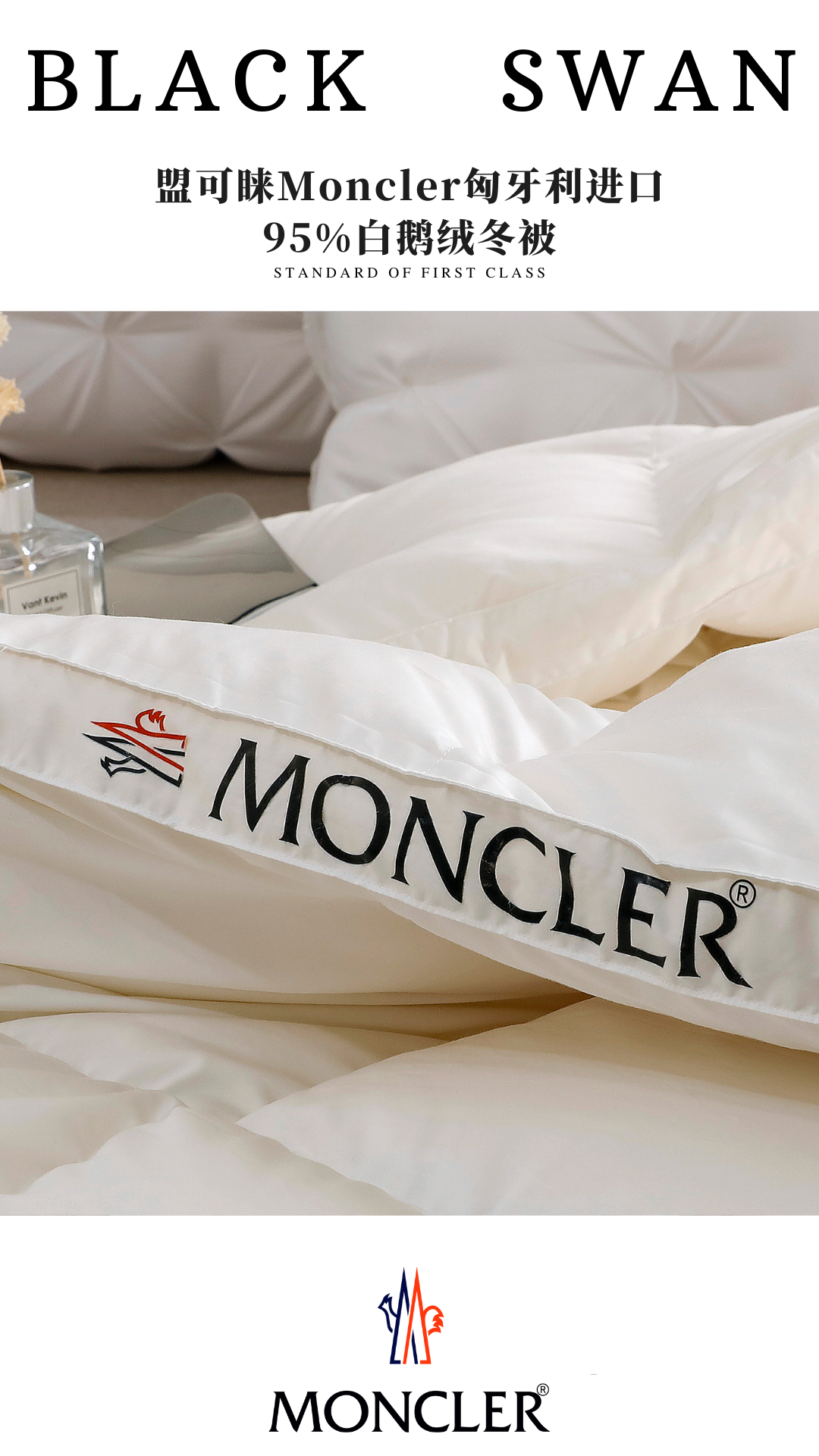 Moncler White Goose Down Comforter - Luxury Winter Bedding, Hungary Import