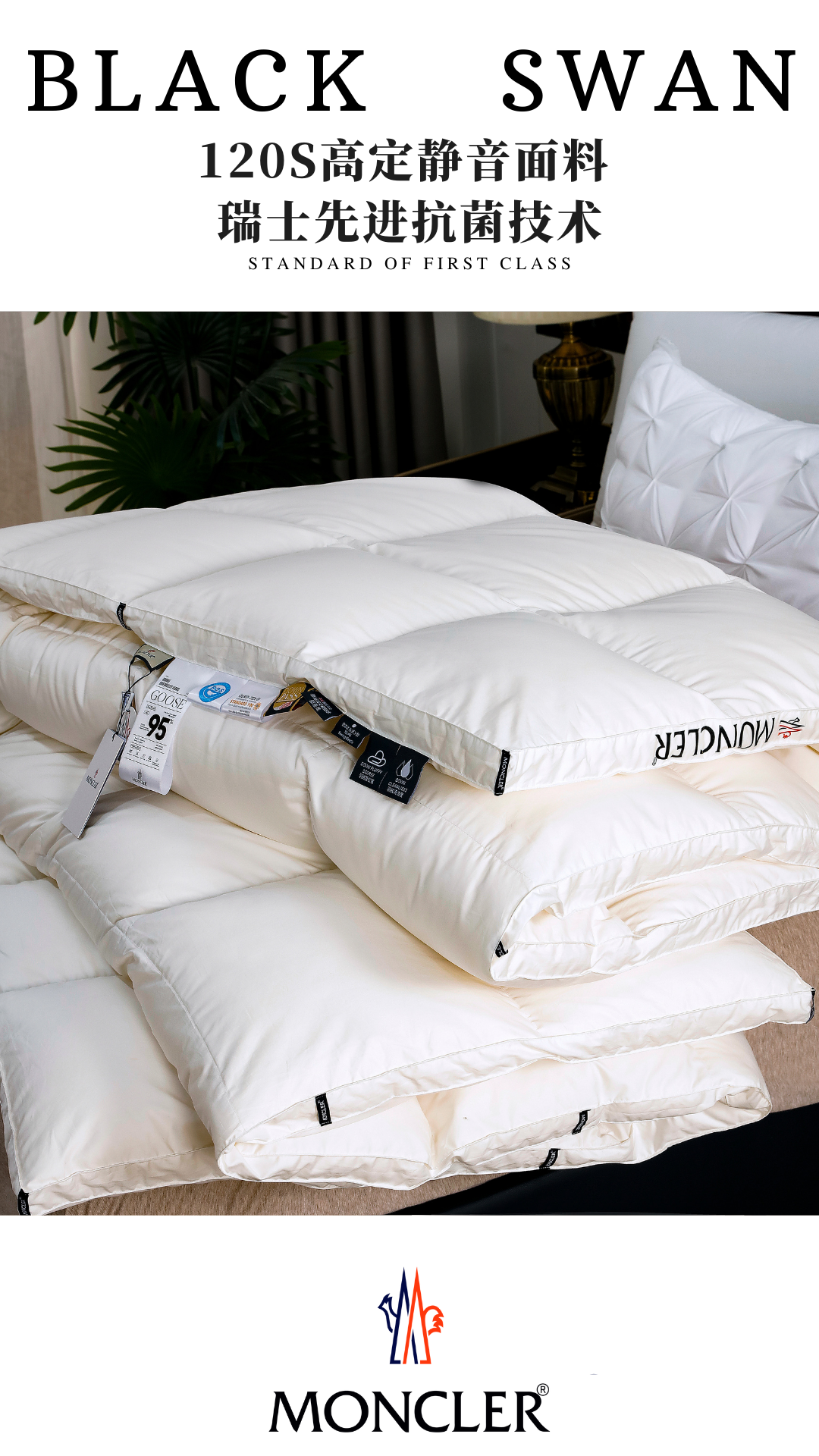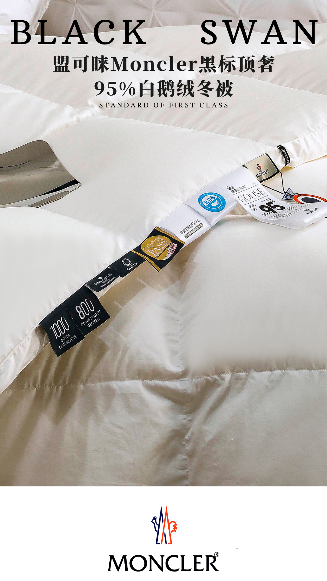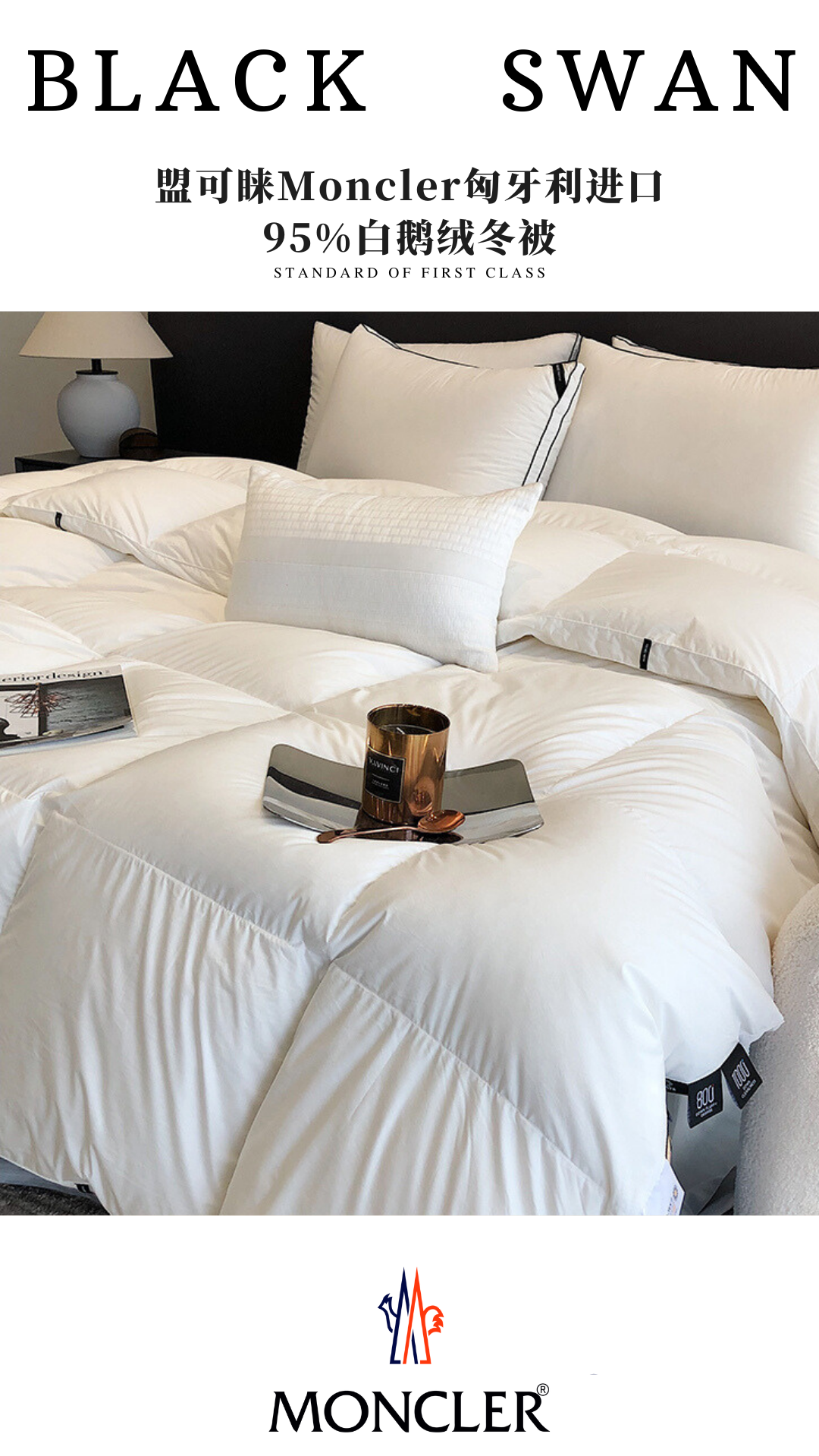 Moncler White Goose Down Comforter - Luxury Winter Bedding, Hungary Import