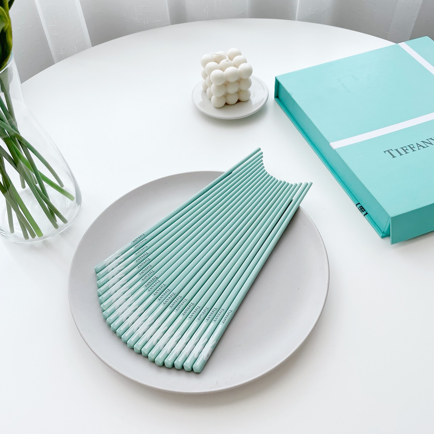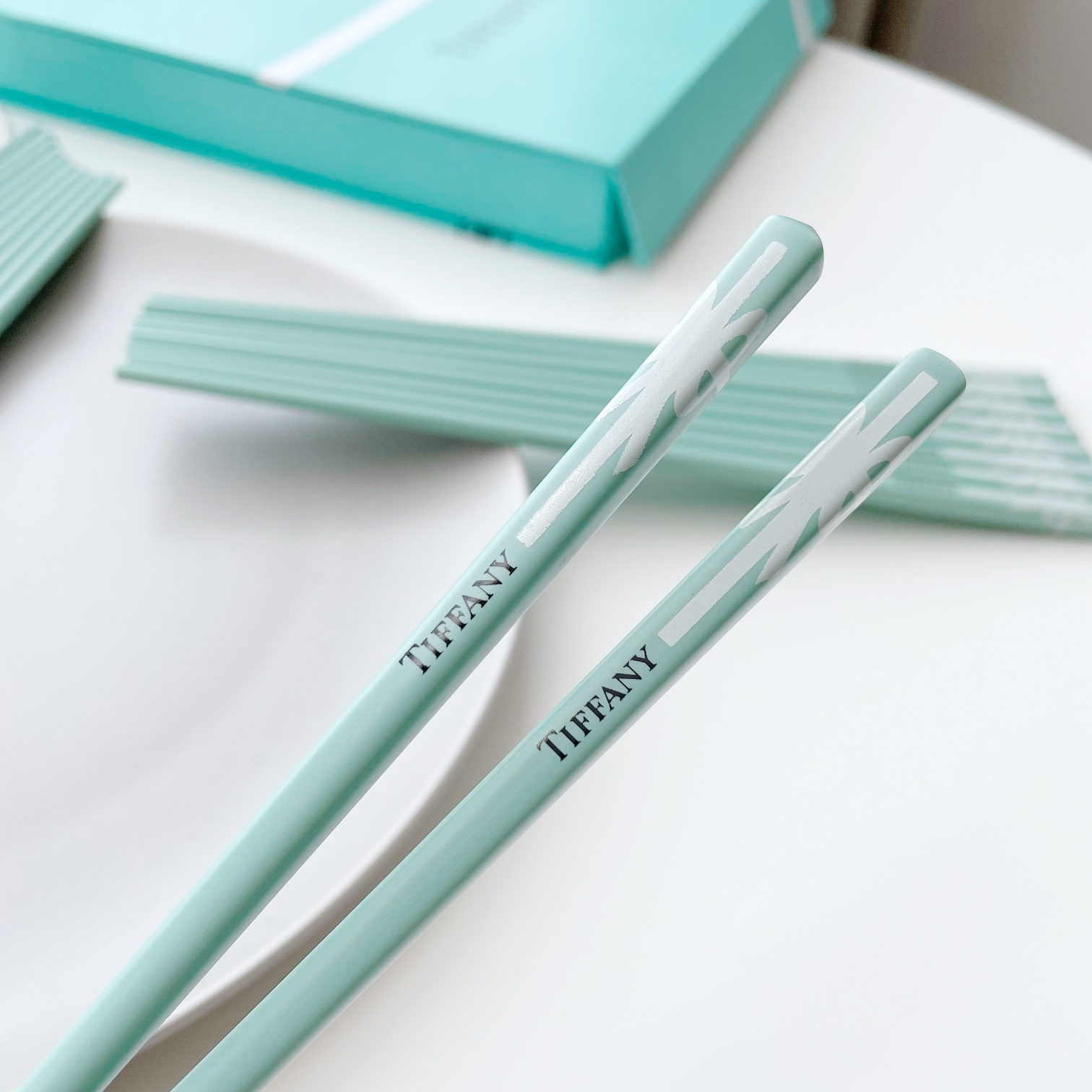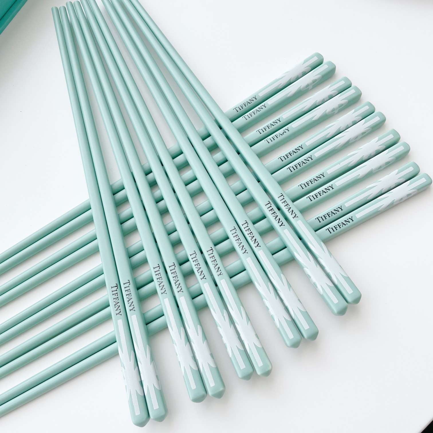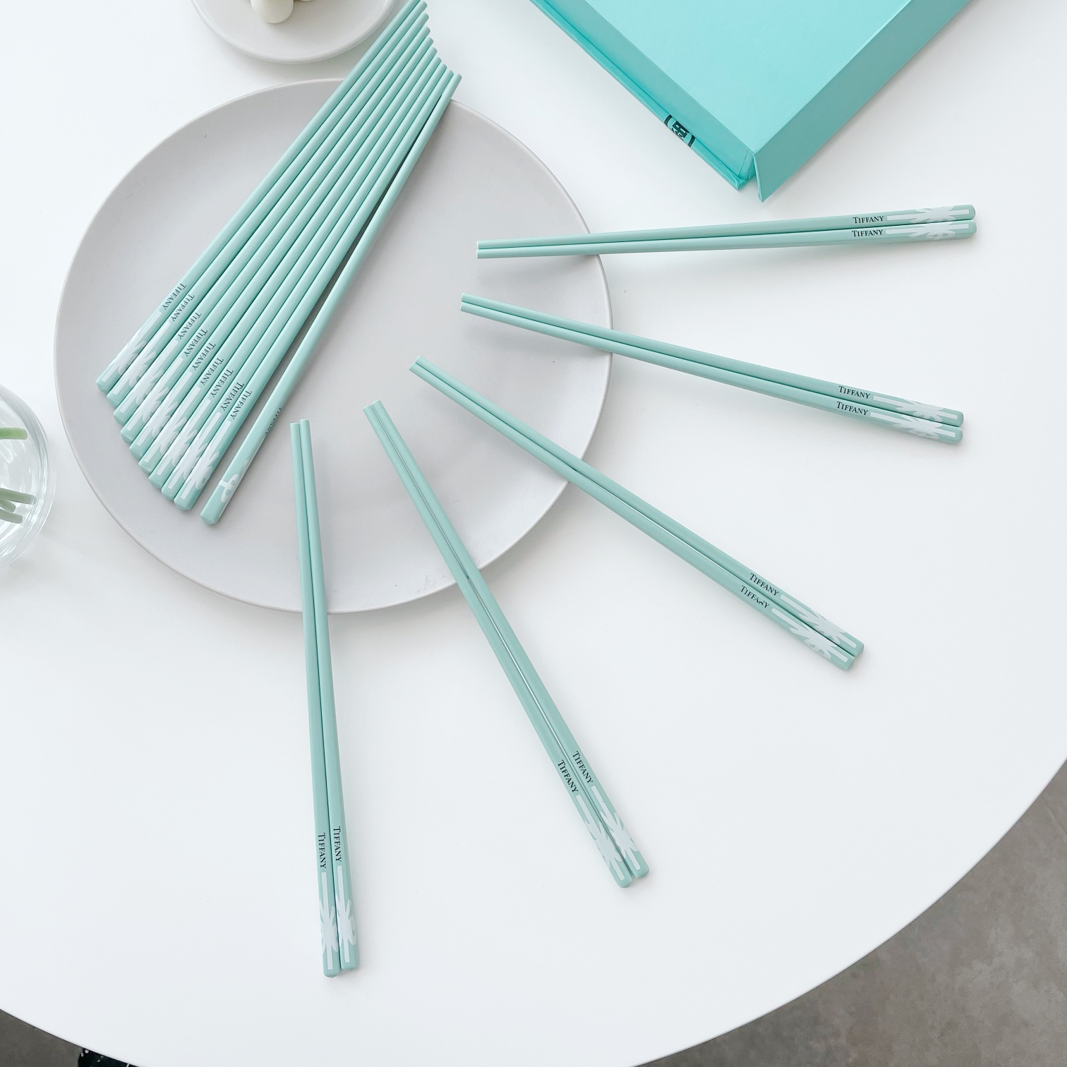 Exquisite 10-piece set of Tiffany & Co. chopsticks. Crafted from high bone china, these chopsticks boast a non-toxic, colorful glaze. Perfect for gifting to your best friend!
