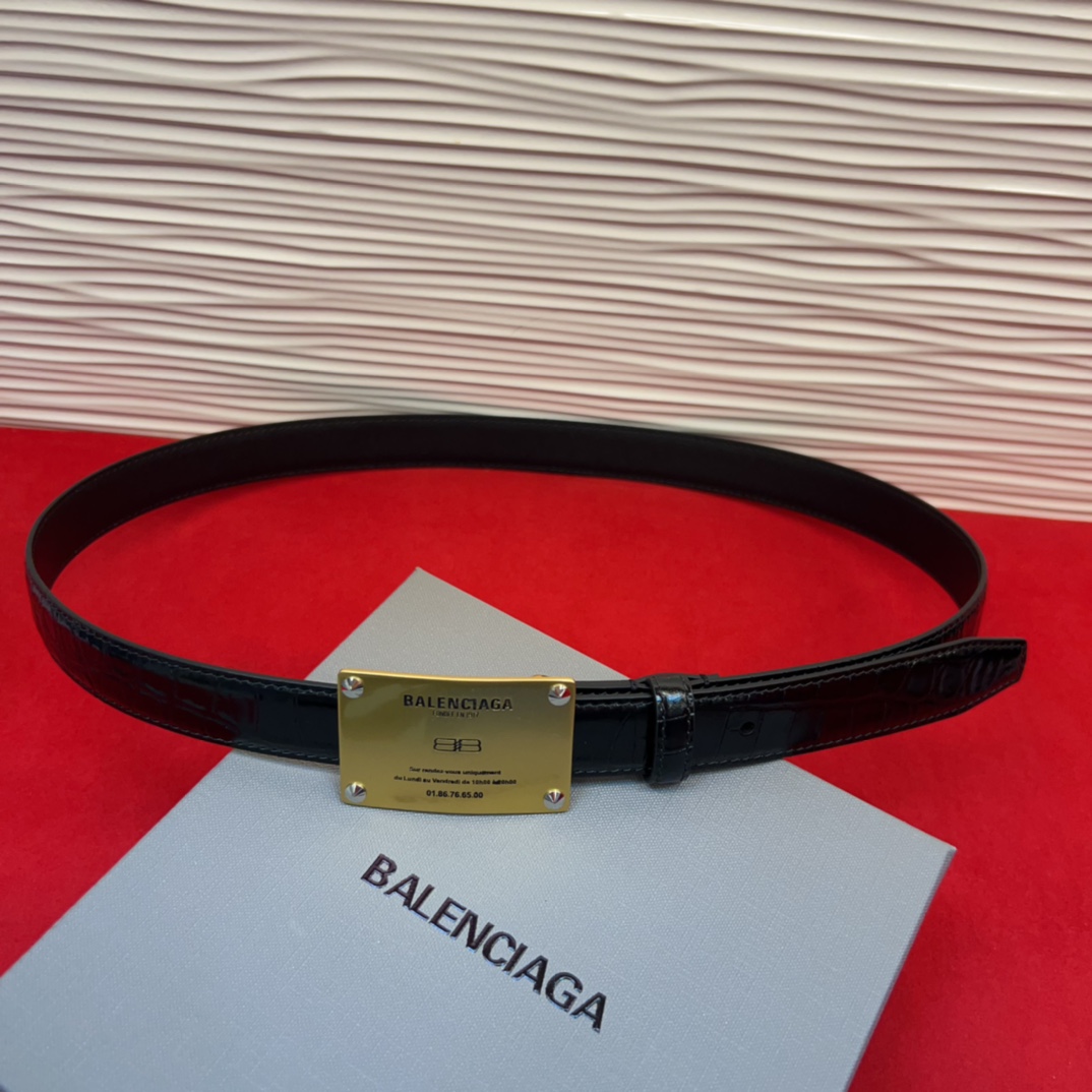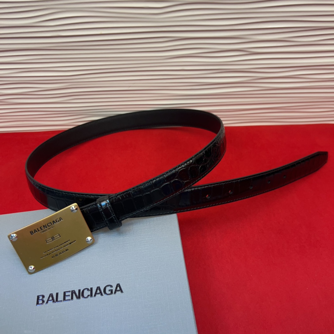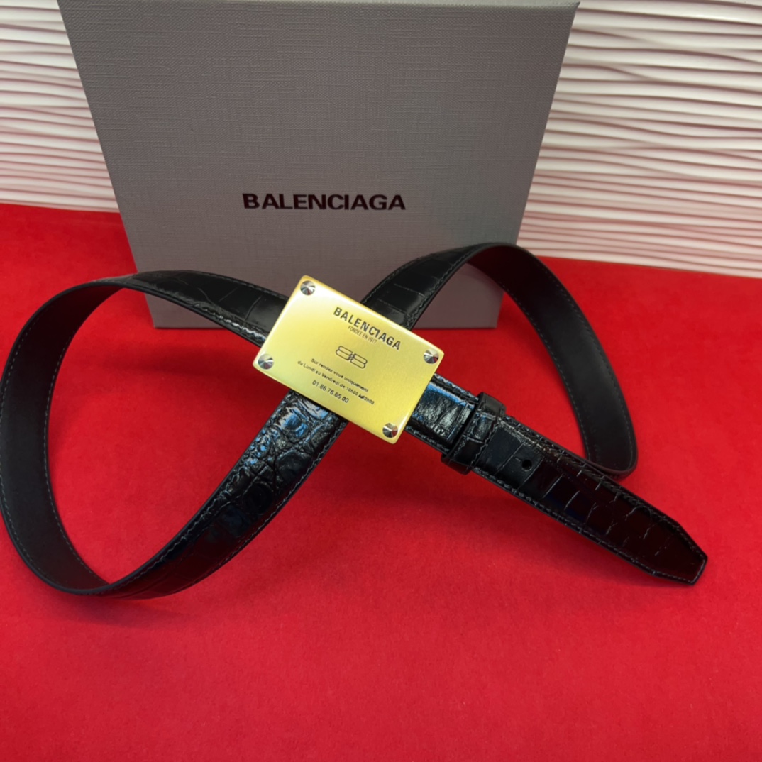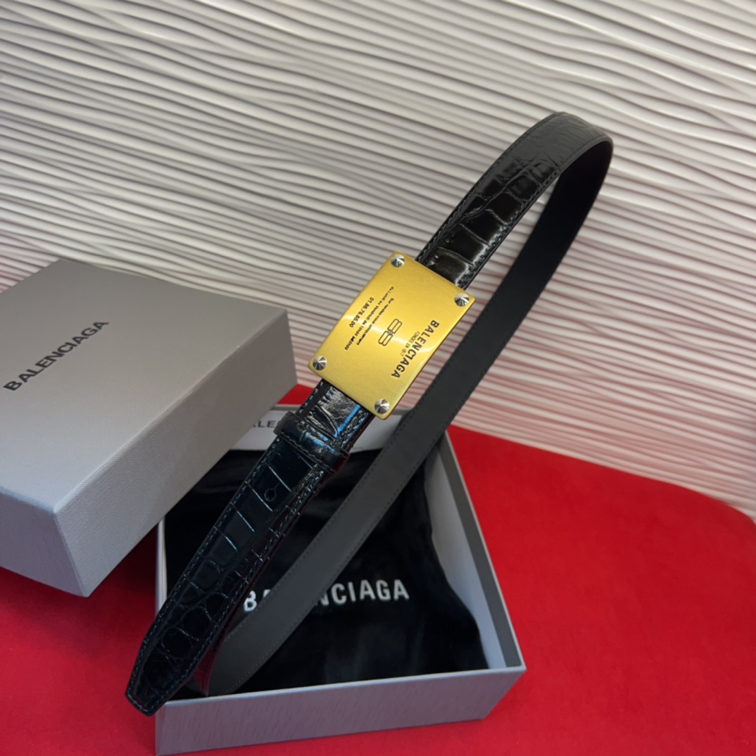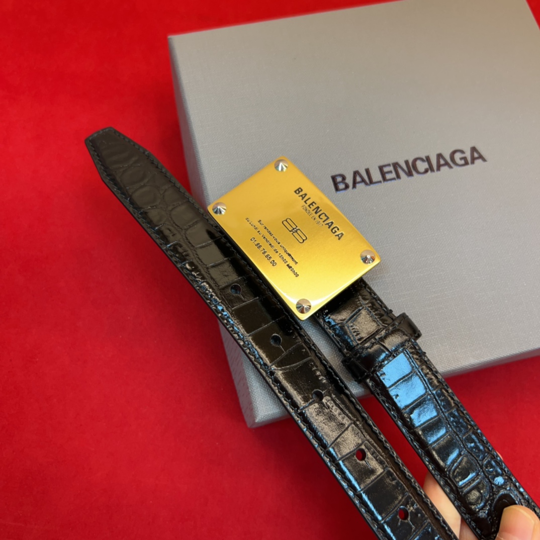 Balenciaga Black Crocodile Leather Belt with Gold Buckle - Stylish & Luxury