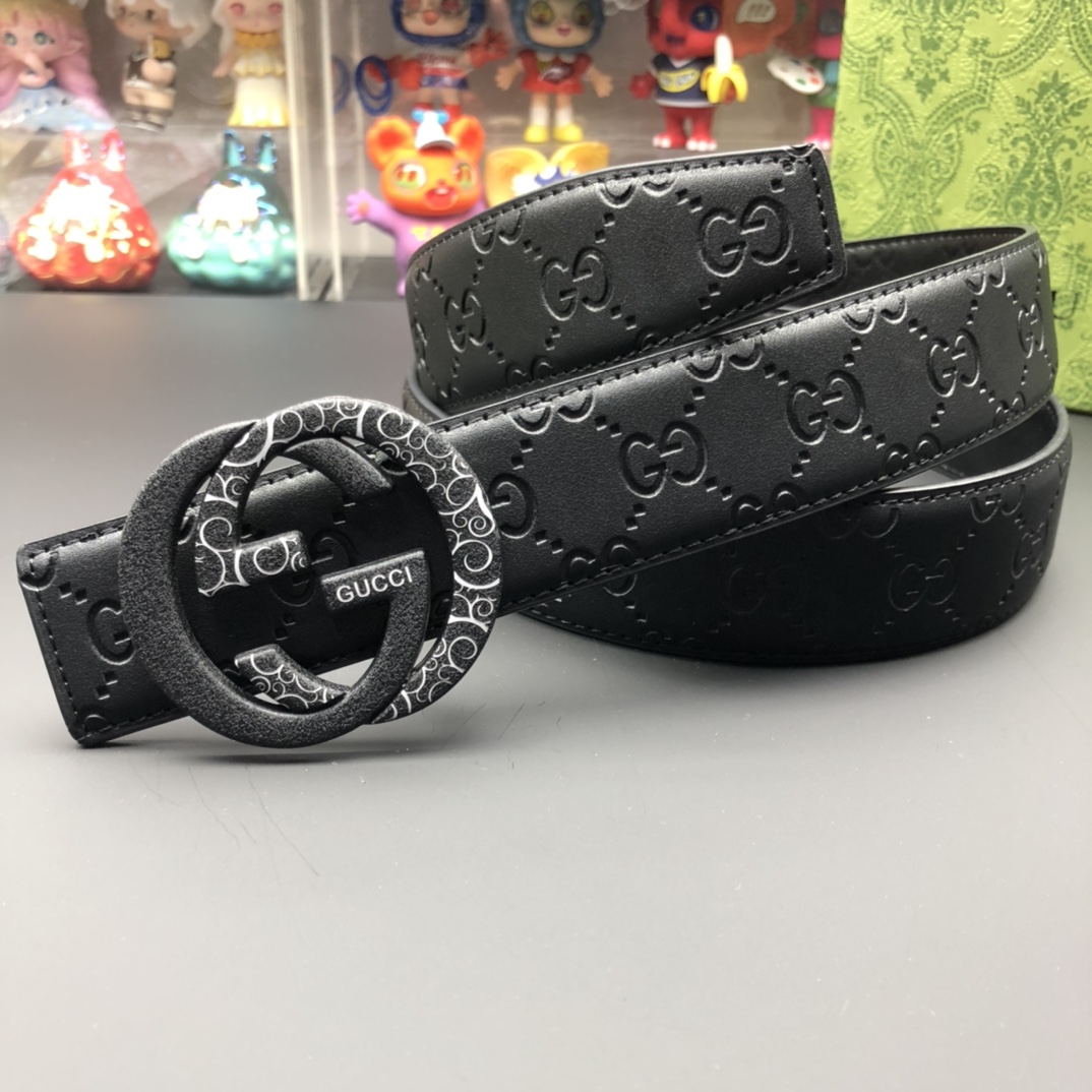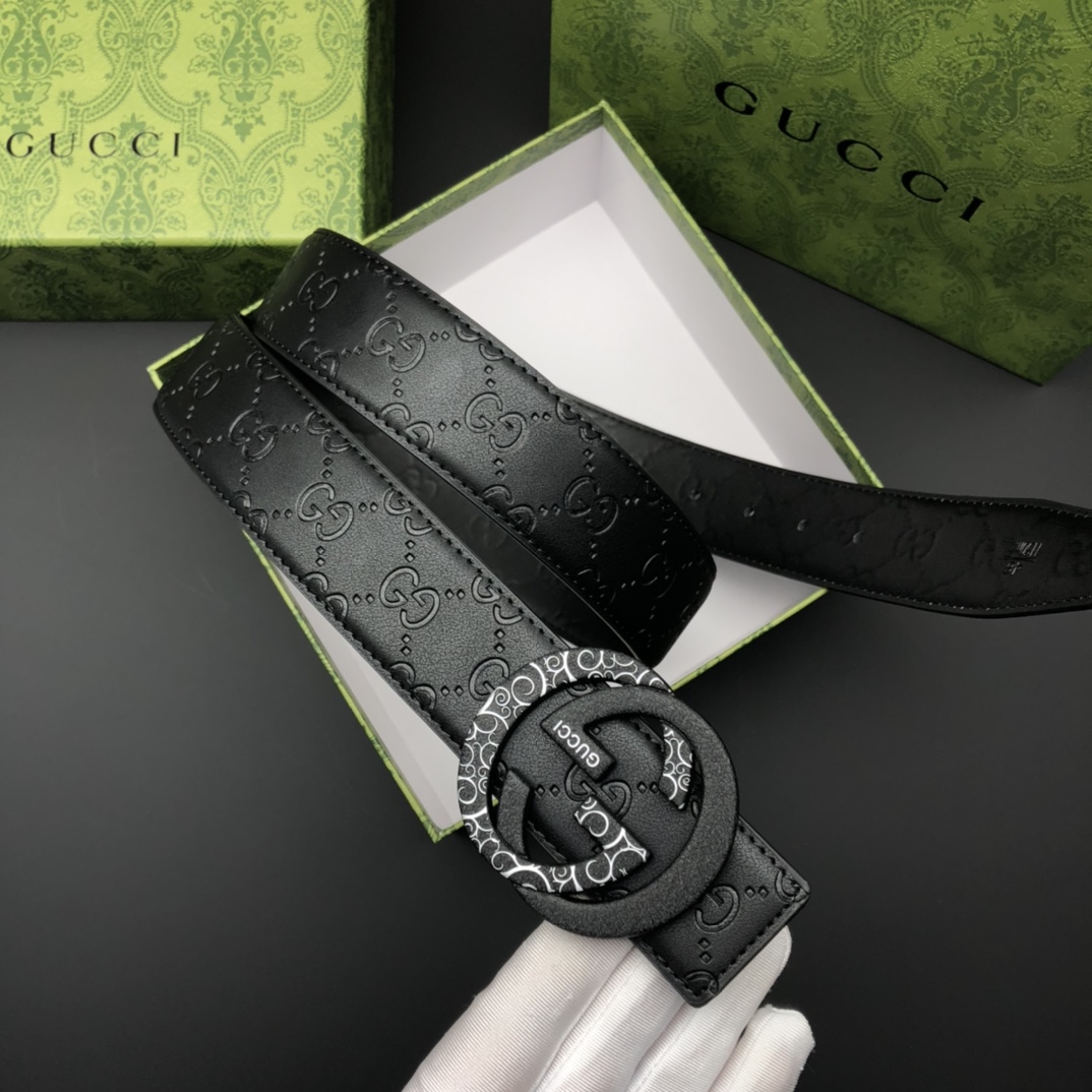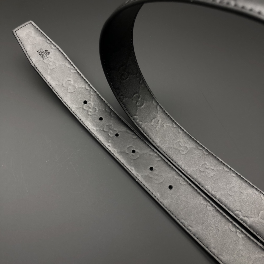 Gucci Classic Black Leather Belt with GG Buckle, 115cm Length and 4cm Width
