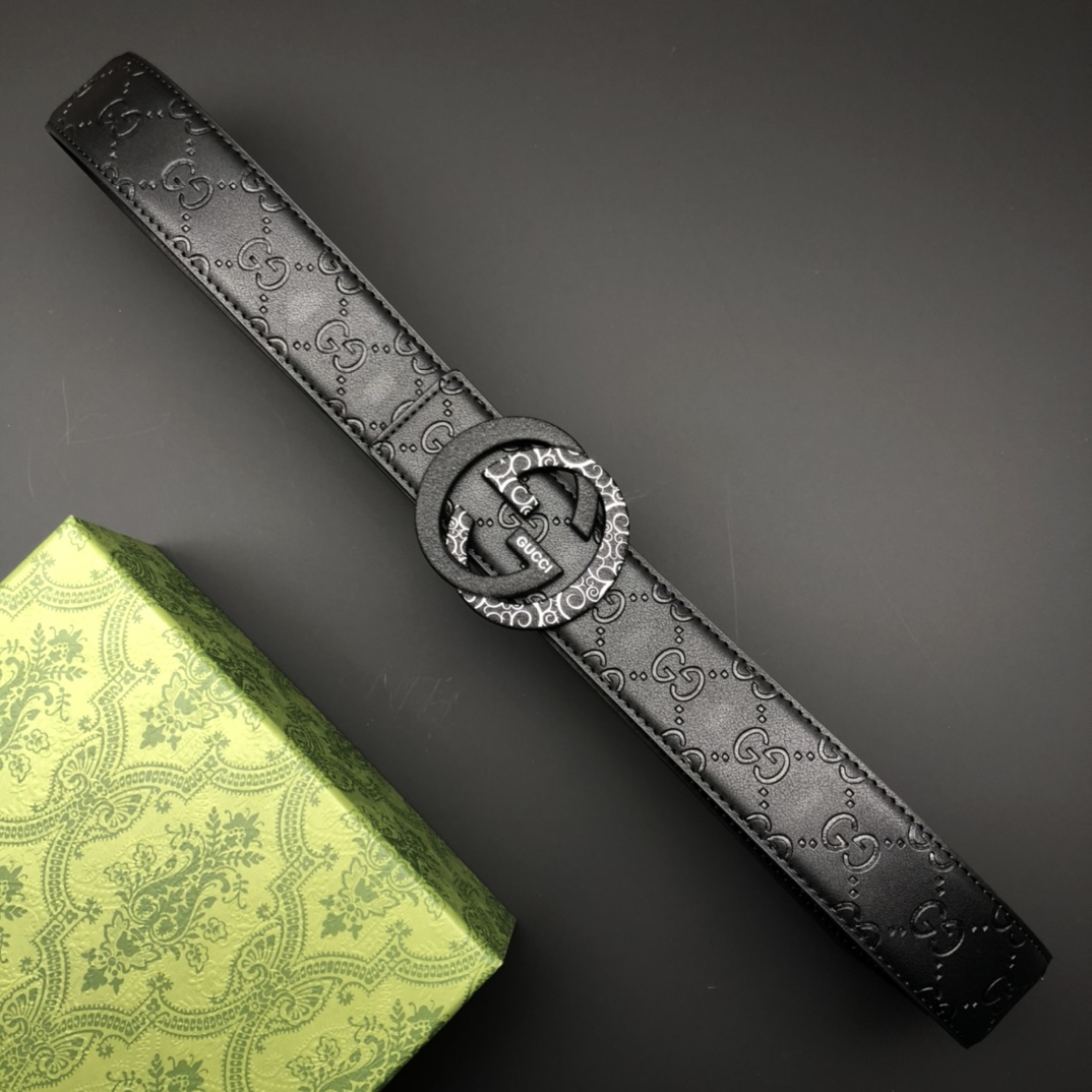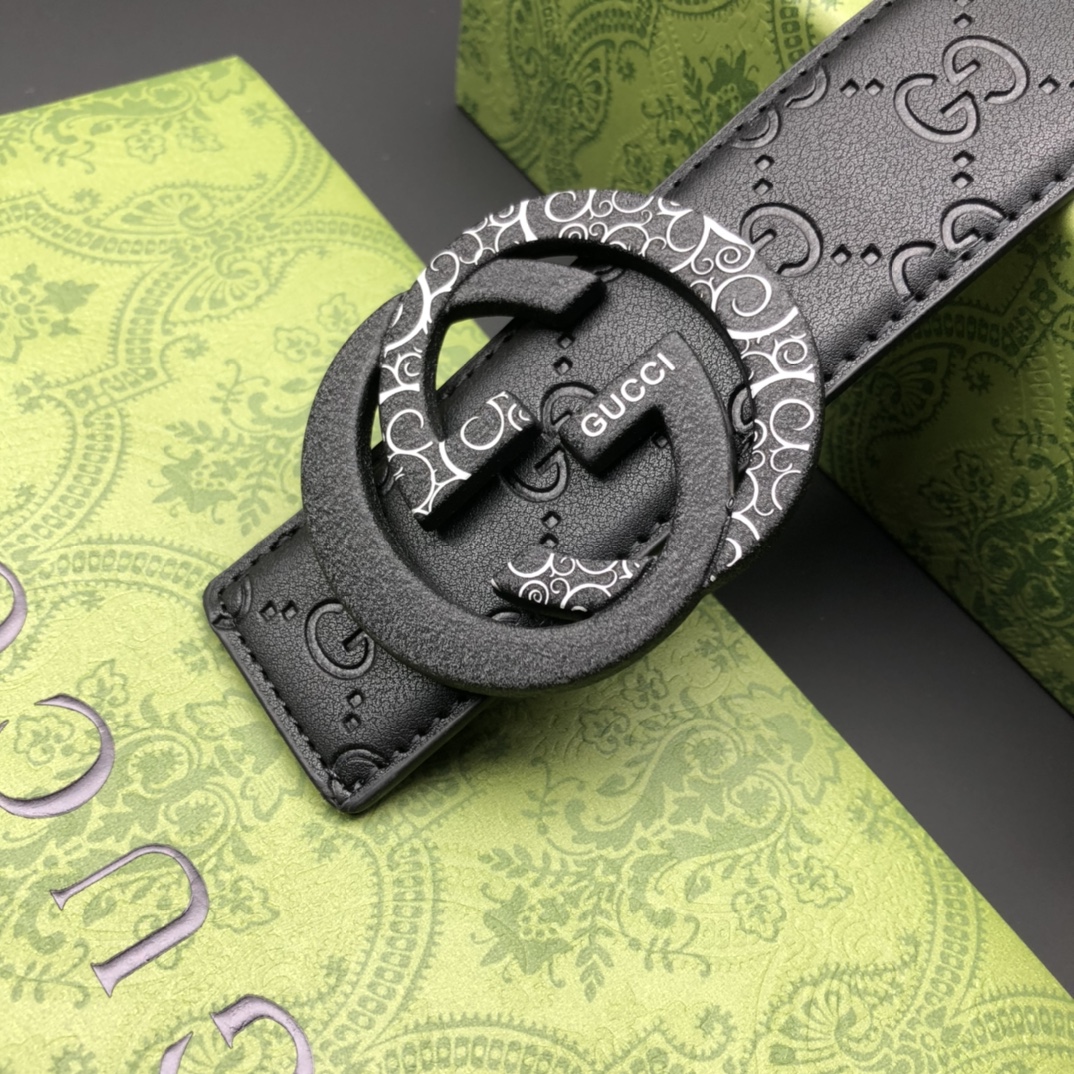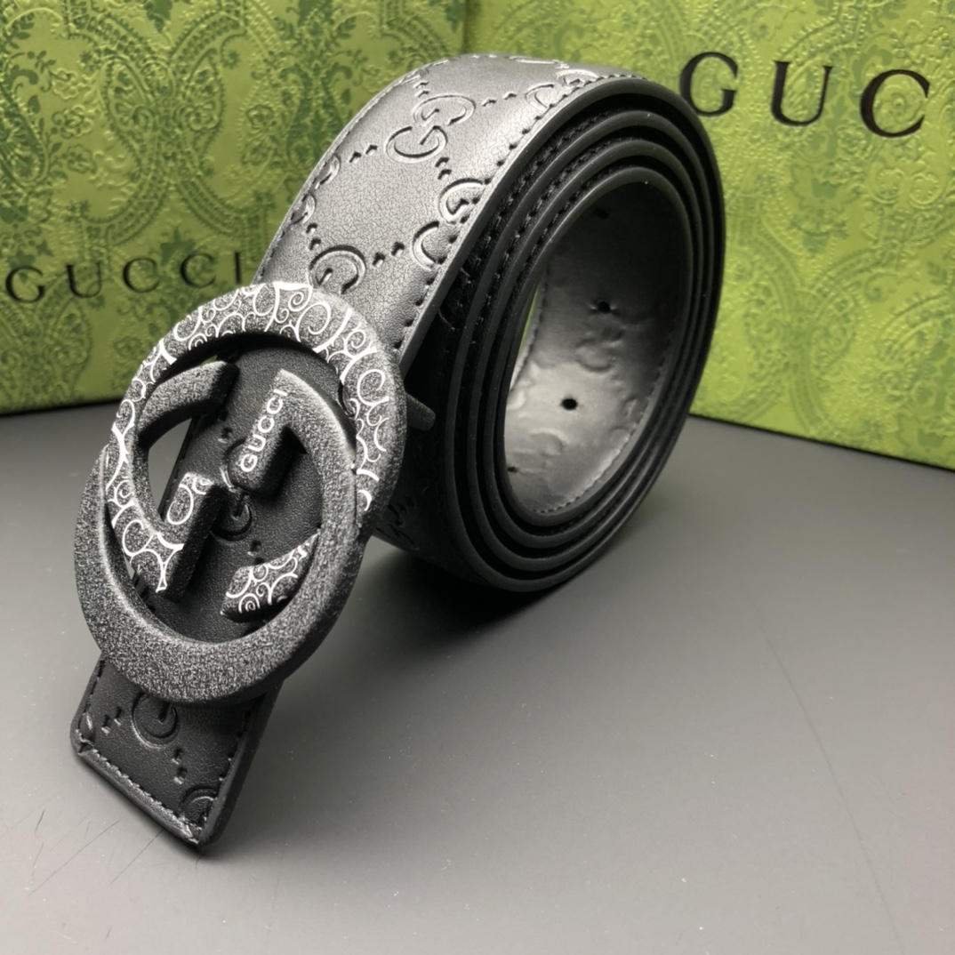 Gucci Classic Black Leather Belt with GG Buckle, 115cm Length and 4cm Width