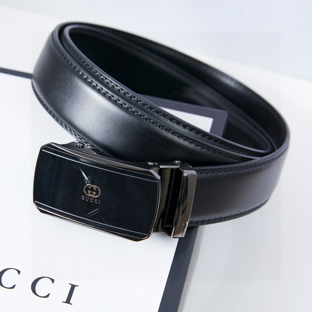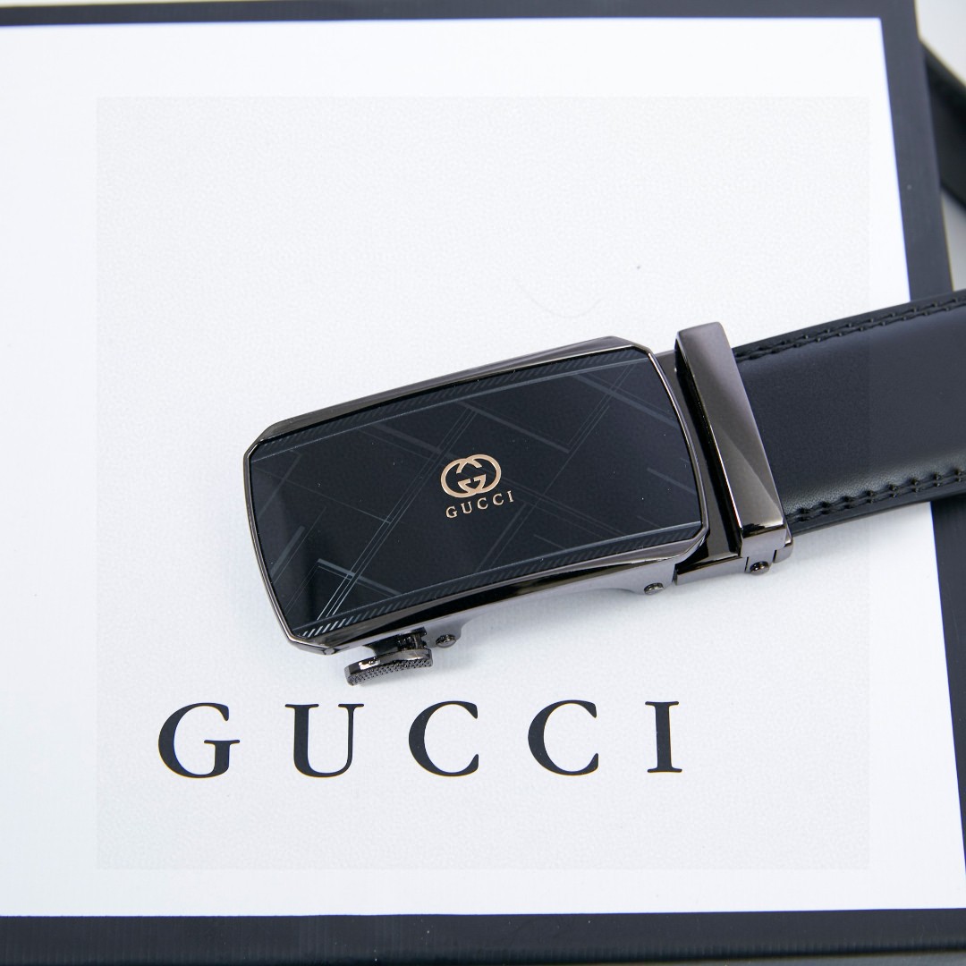 Elevate your style with this Gucci belt. Made from premium leather and features a sleek, automatic buckle. Adjustable for a perfect fit and comes with box.