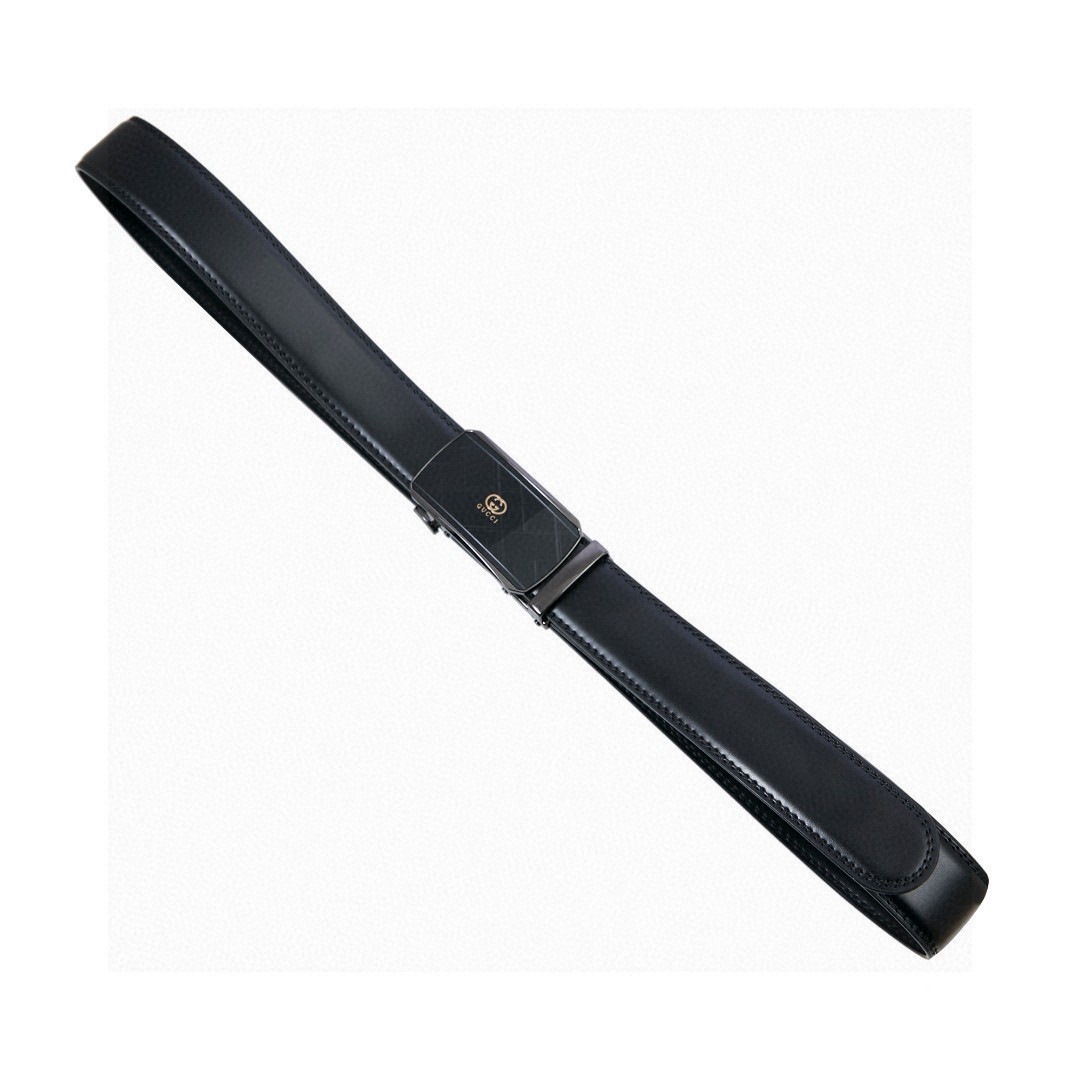 Gucci Men's Black Leather Belt with Automatic Buckle, Adjustable Length