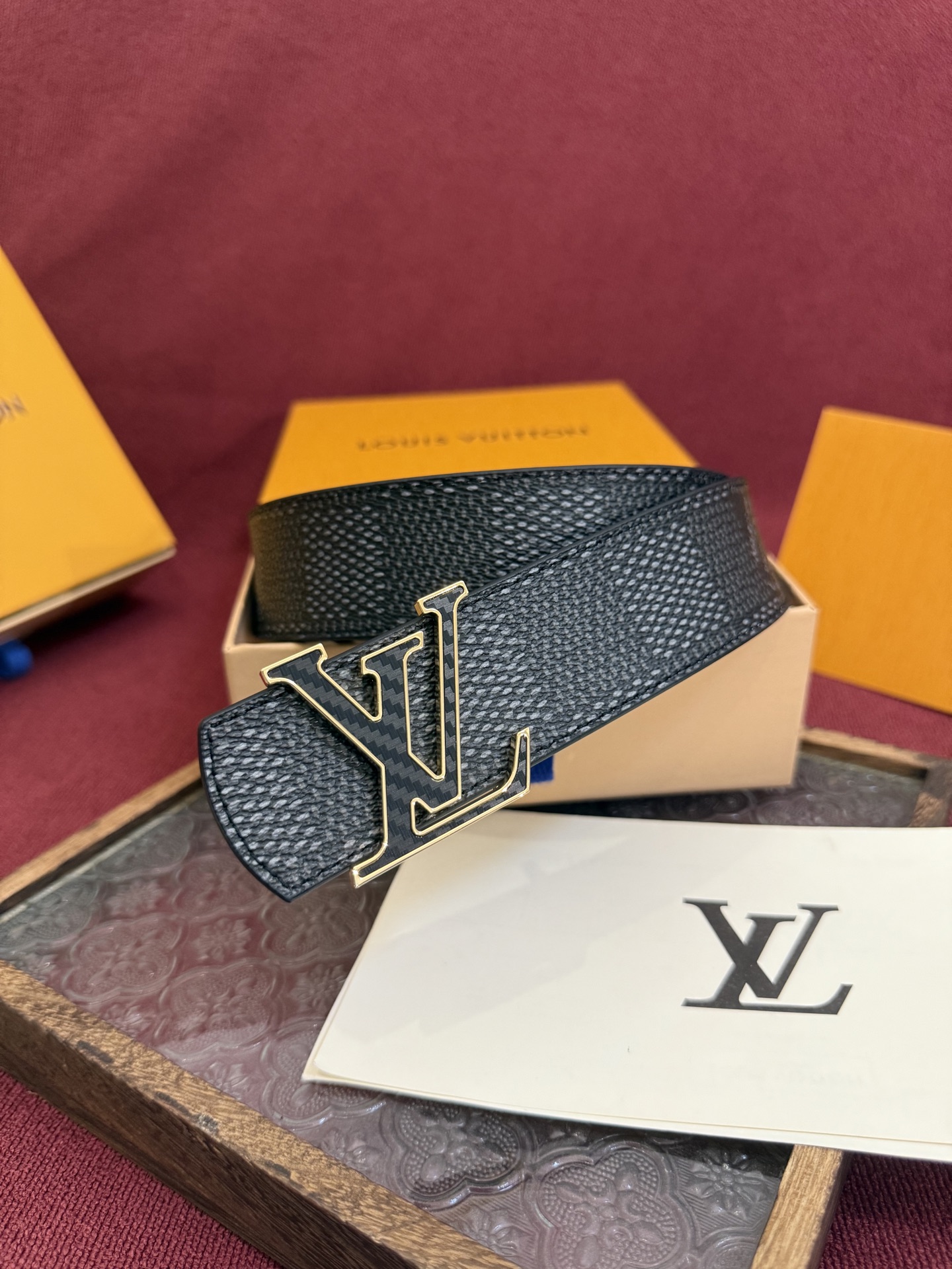 - Features the iconic LV Dimension metal buckle.