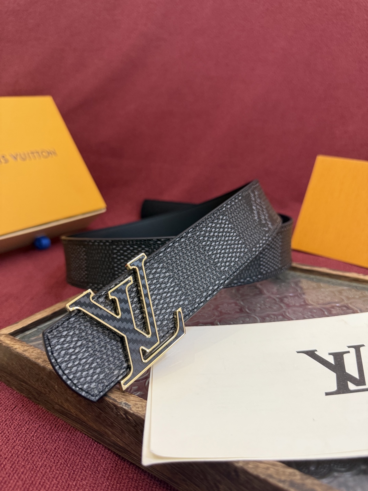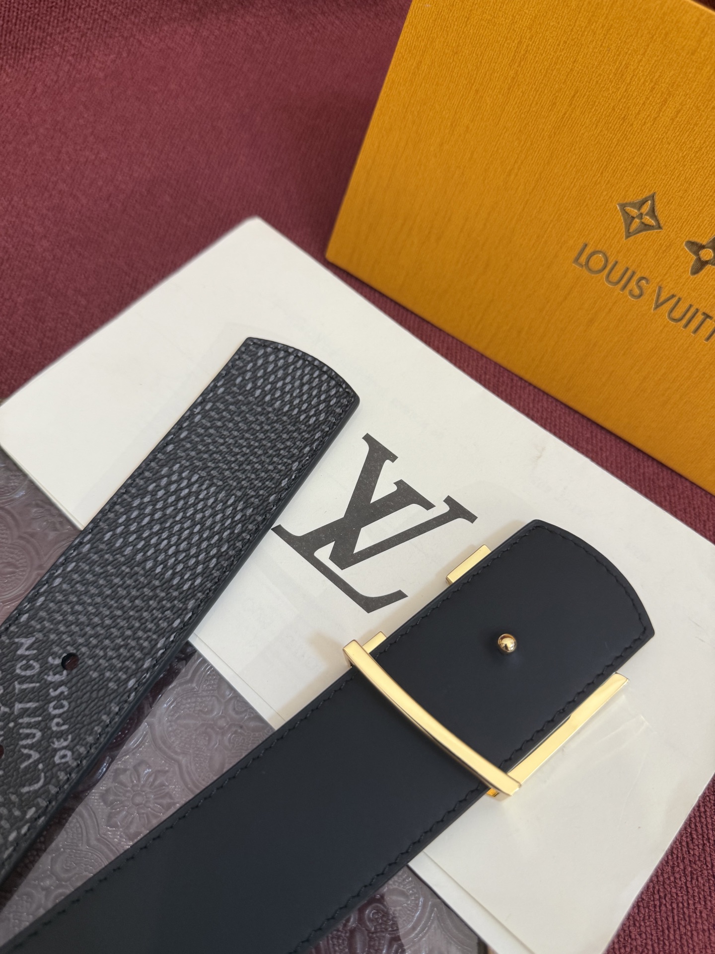 The Louis Vuitton Dimension belt is a timeless accessory that will elevate your look. Its reversible design and signature details make it a must-have for any fashion-conscious individual.