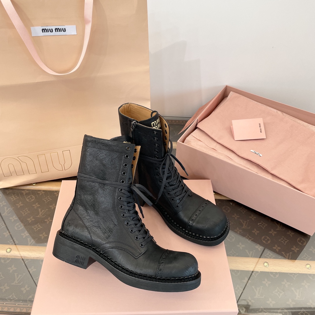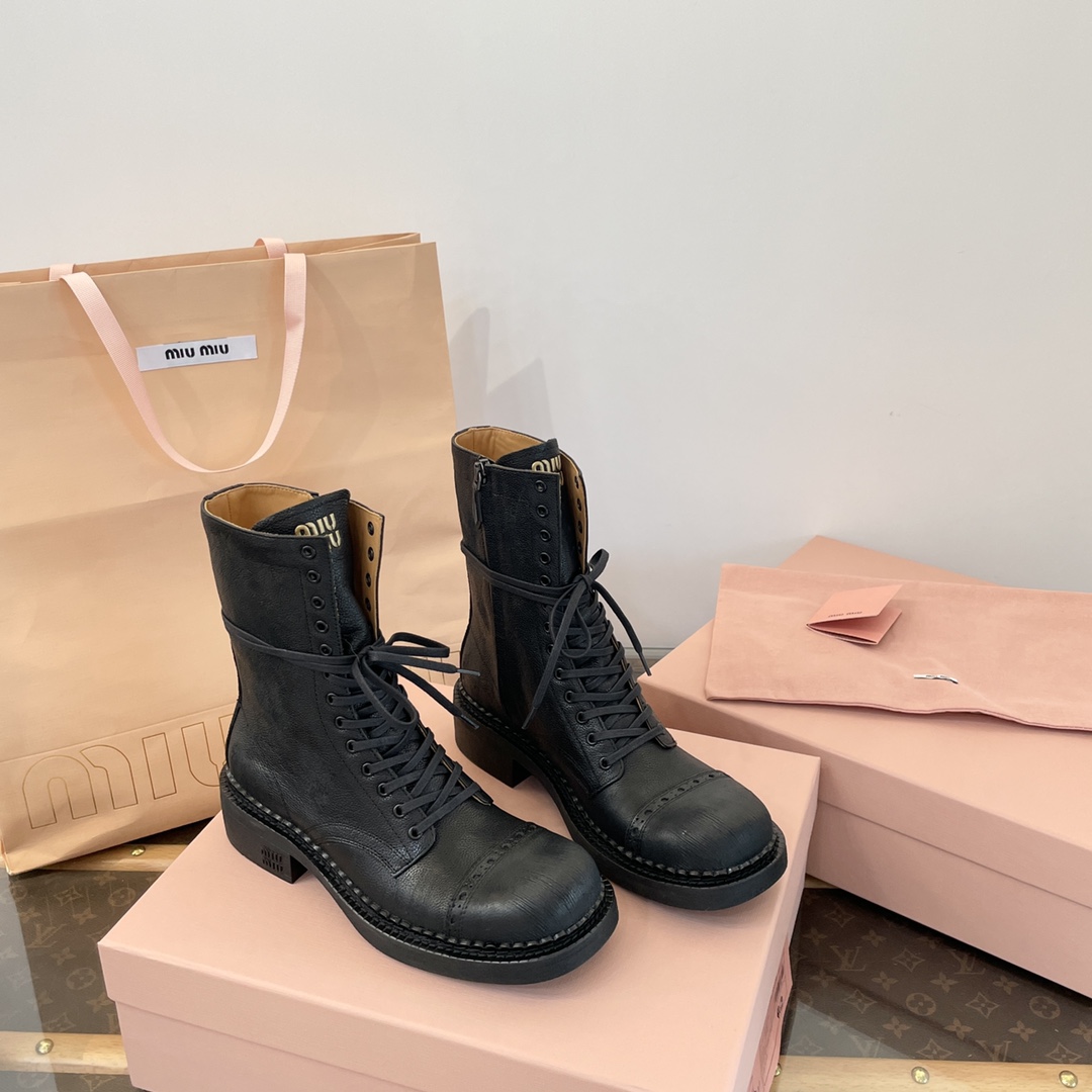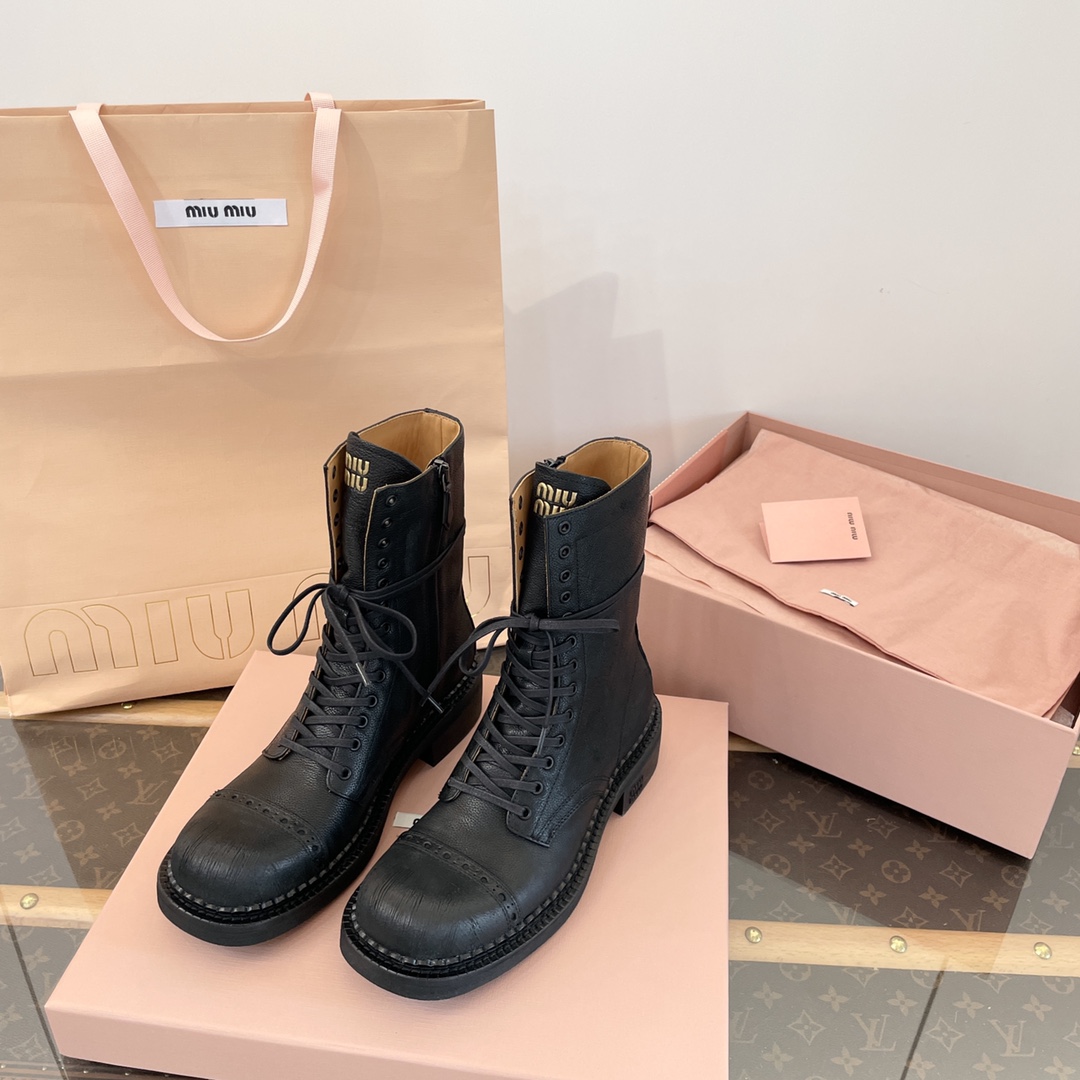 Elevate your footwear collection with these Miu Miu combat boots, perfect for adding a touch of rebellious chic to any ensemble.