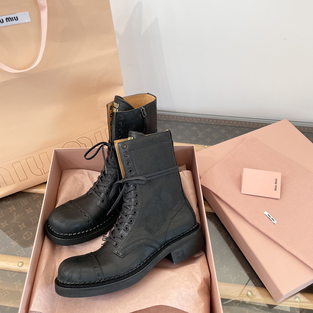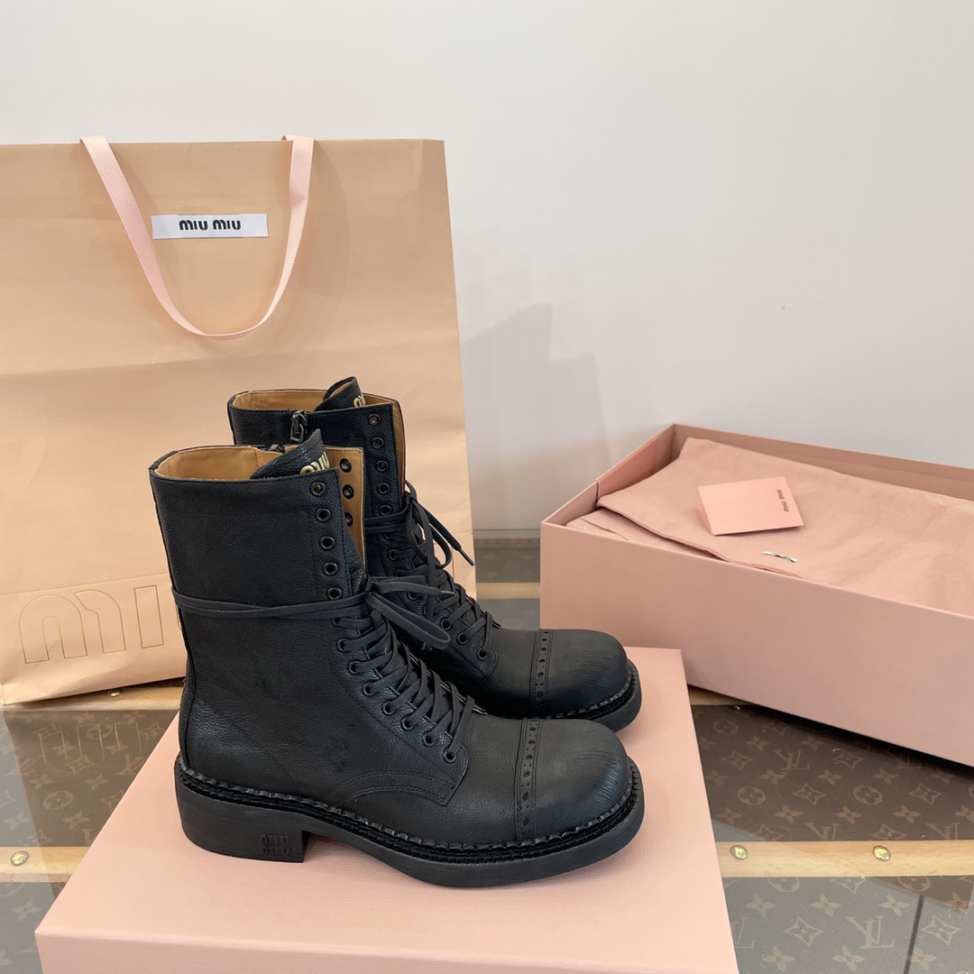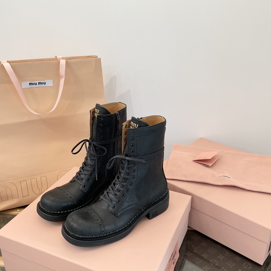 Elevate your footwear collection with these Miu Miu combat boots, perfect for adding a touch of rebellious chic to any ensemble.