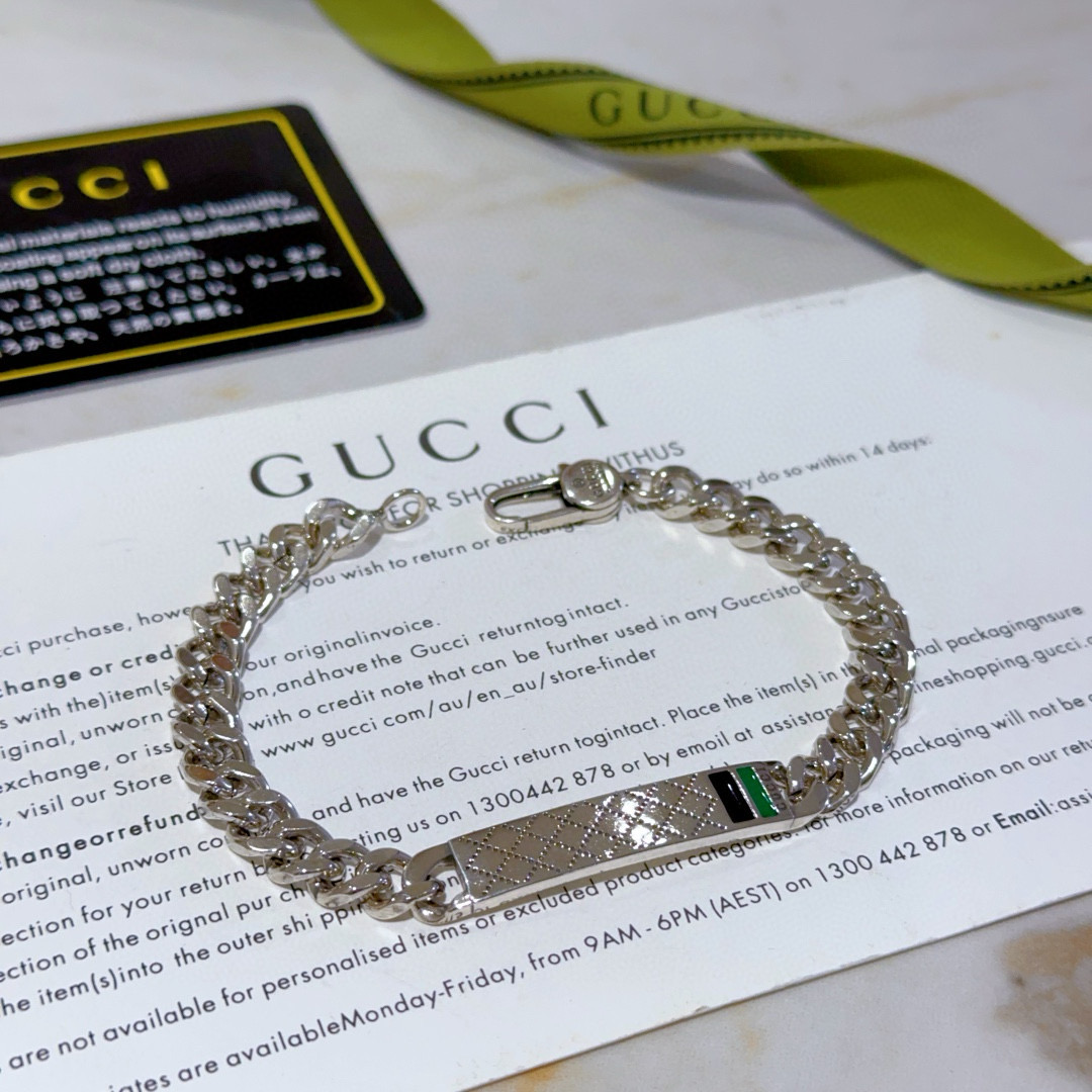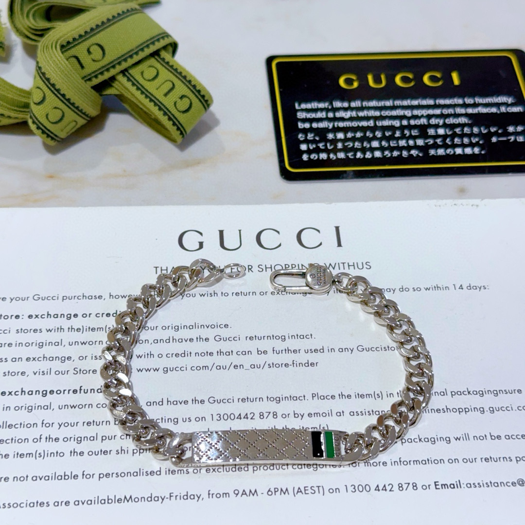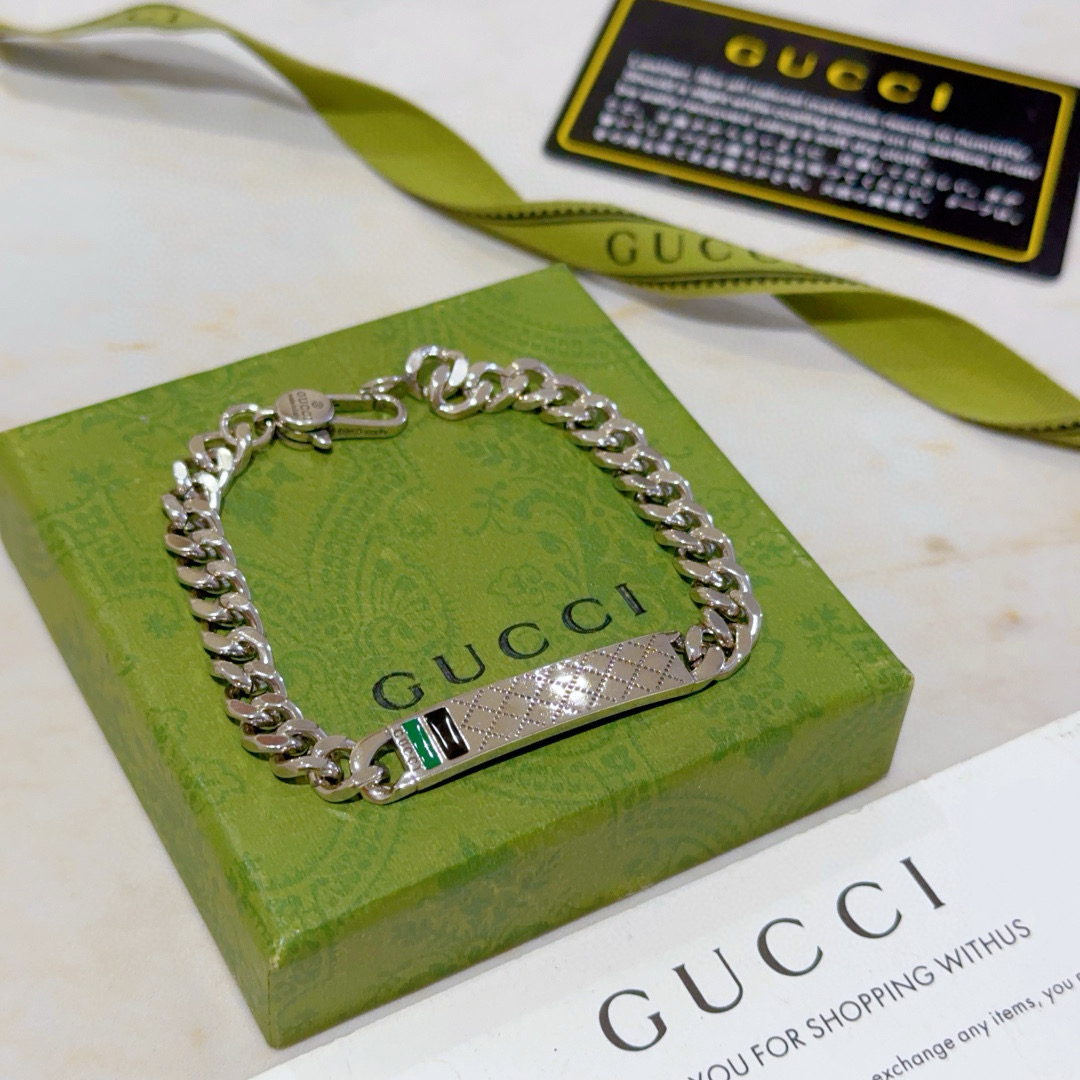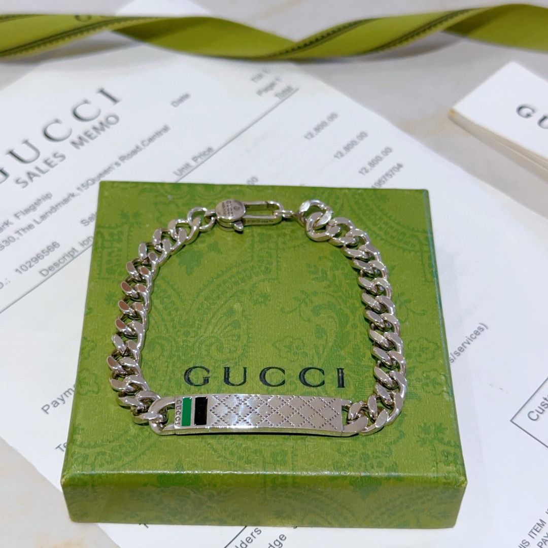 Gucci Silver Chain Bracelet with Green Enamel - Unisex Design