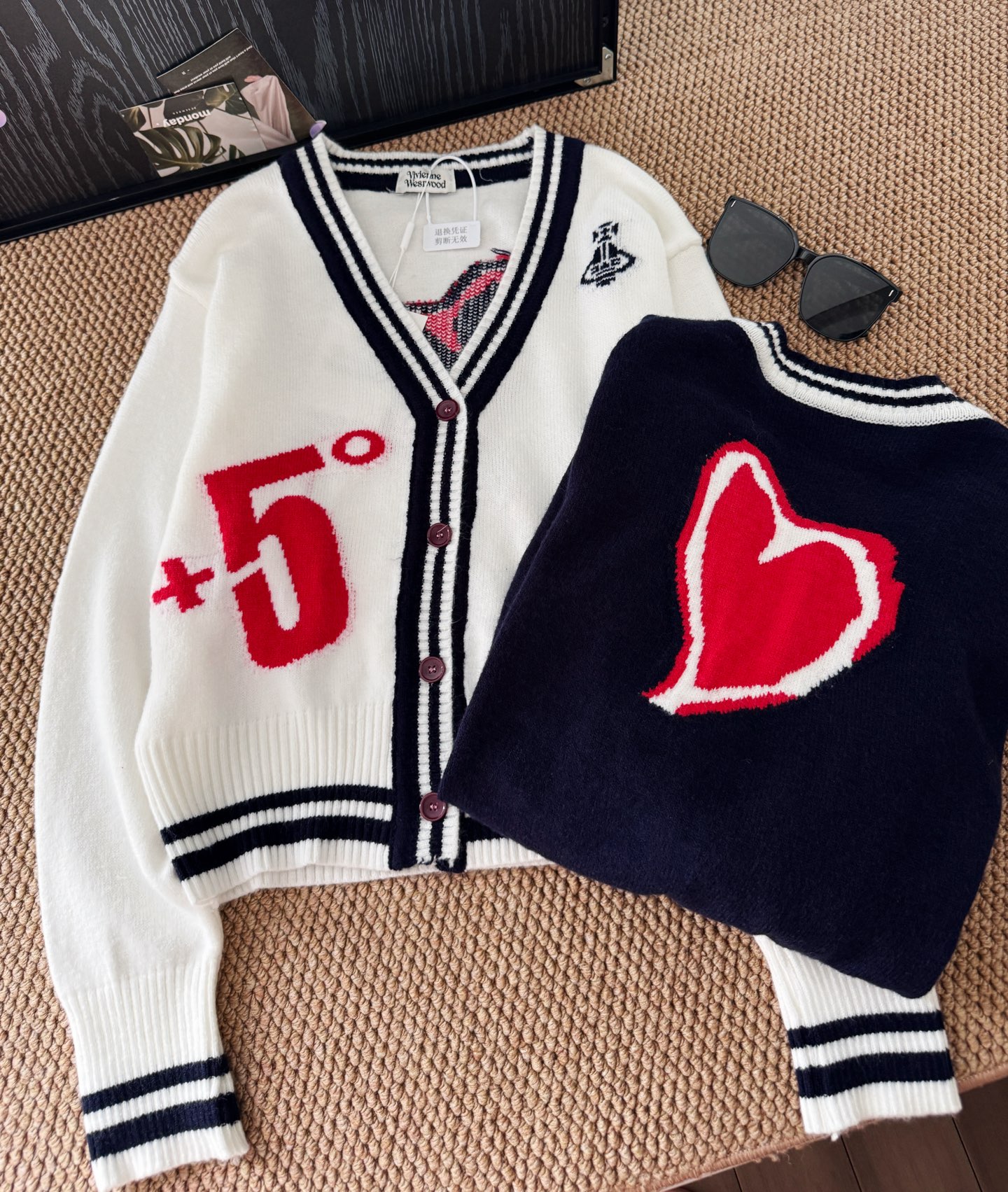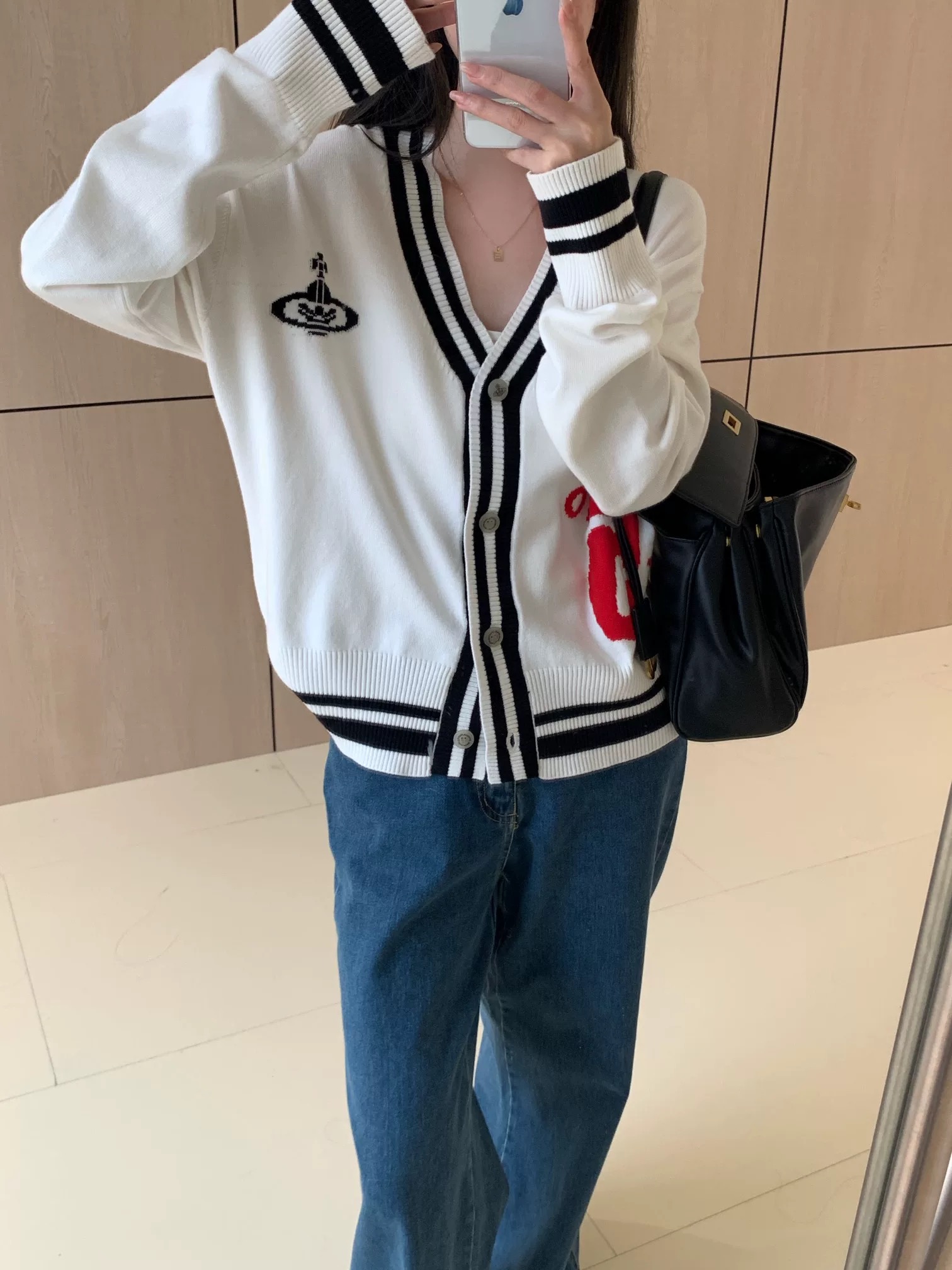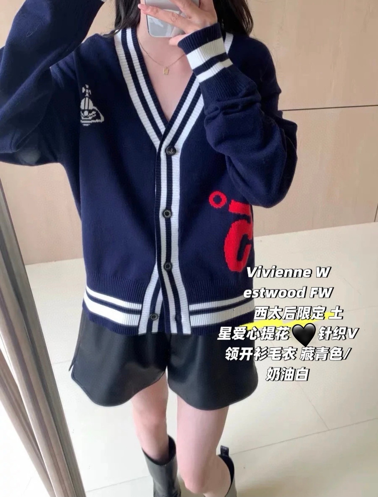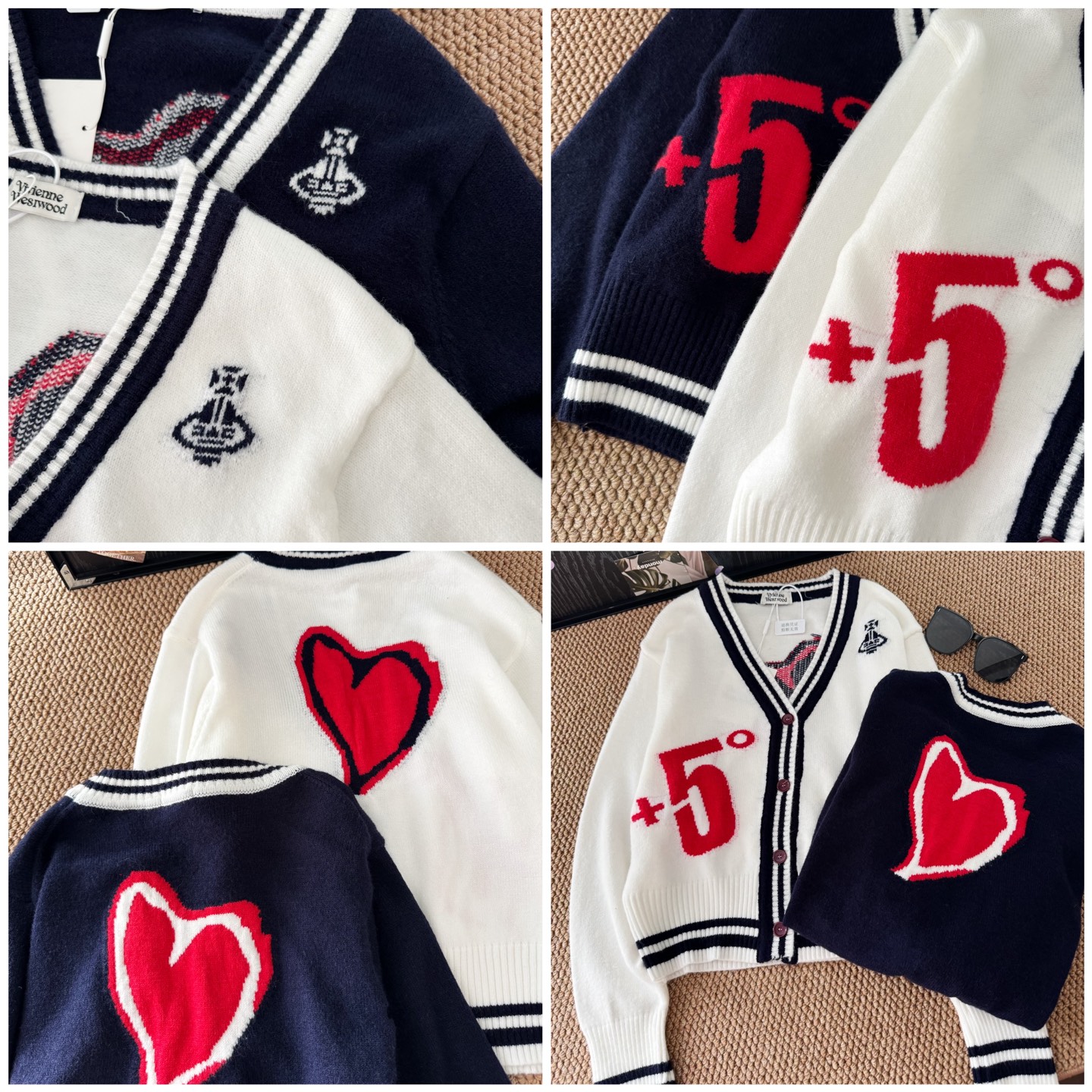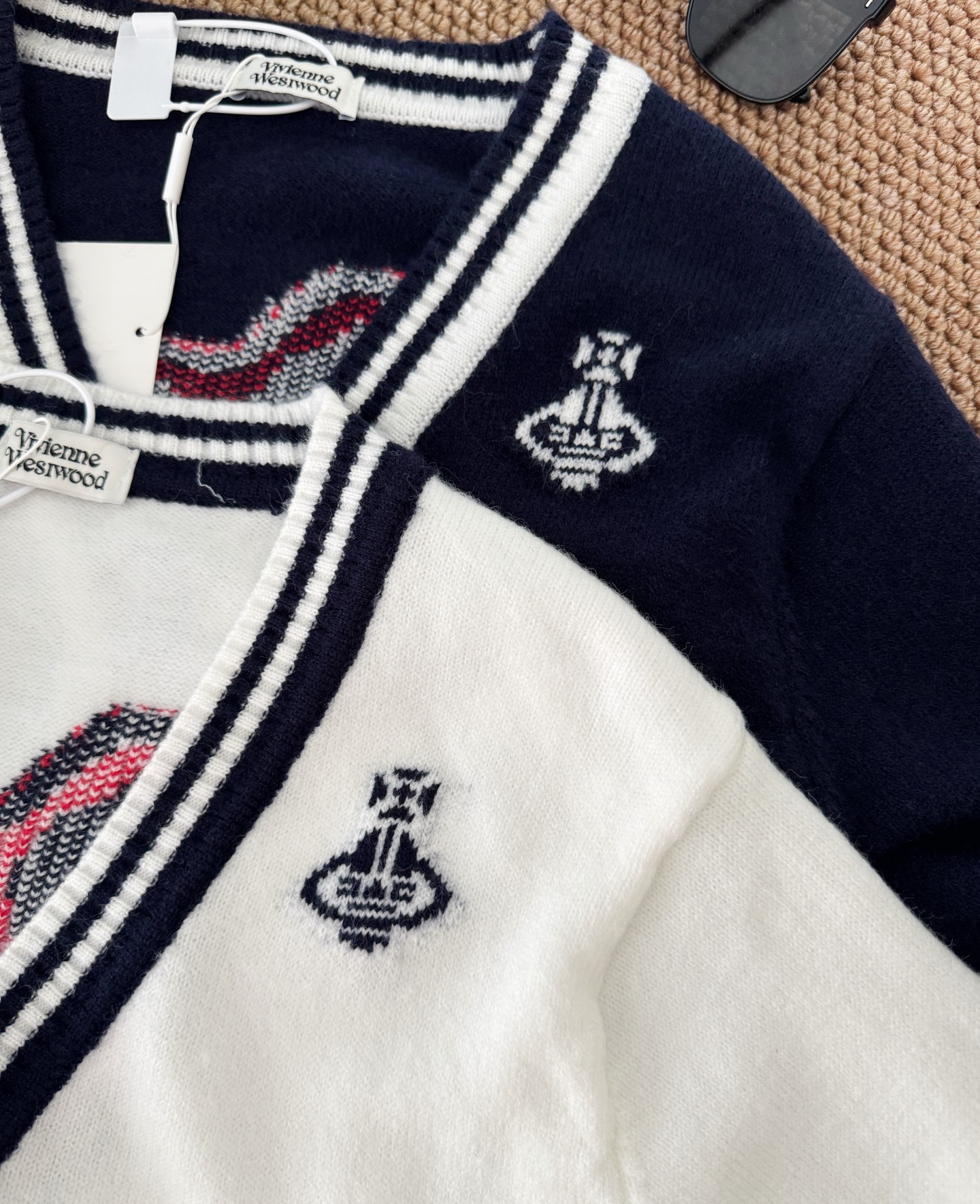 This Vivienne Westwood Saturn Heart Jacquard Knit Cardigan is a limited-edition piece that blends vintage charm with modern sophistication. Available in cream white and navy, this cardigan is designed to elevate your wardrobe with its unique details and comfortable fit.