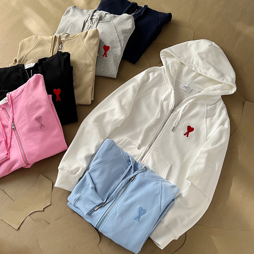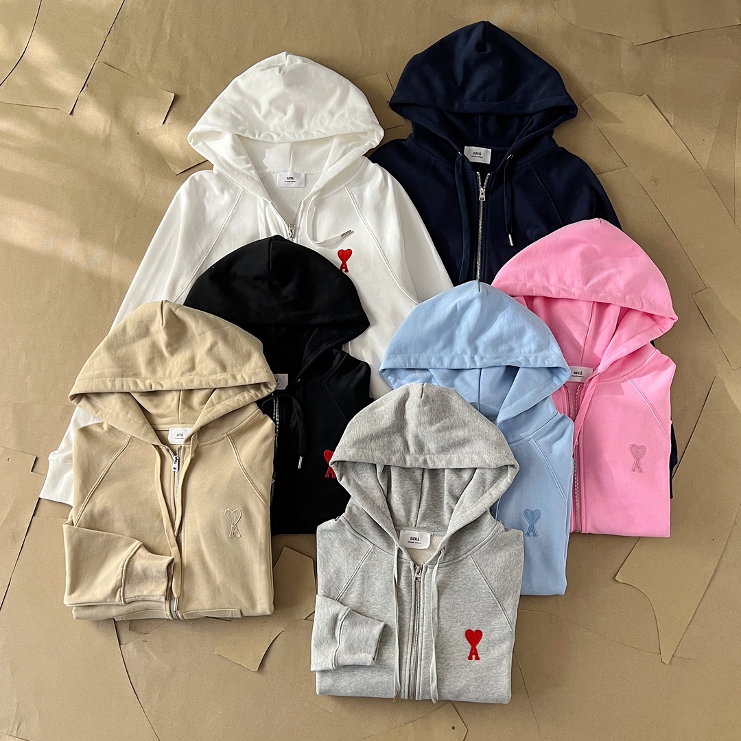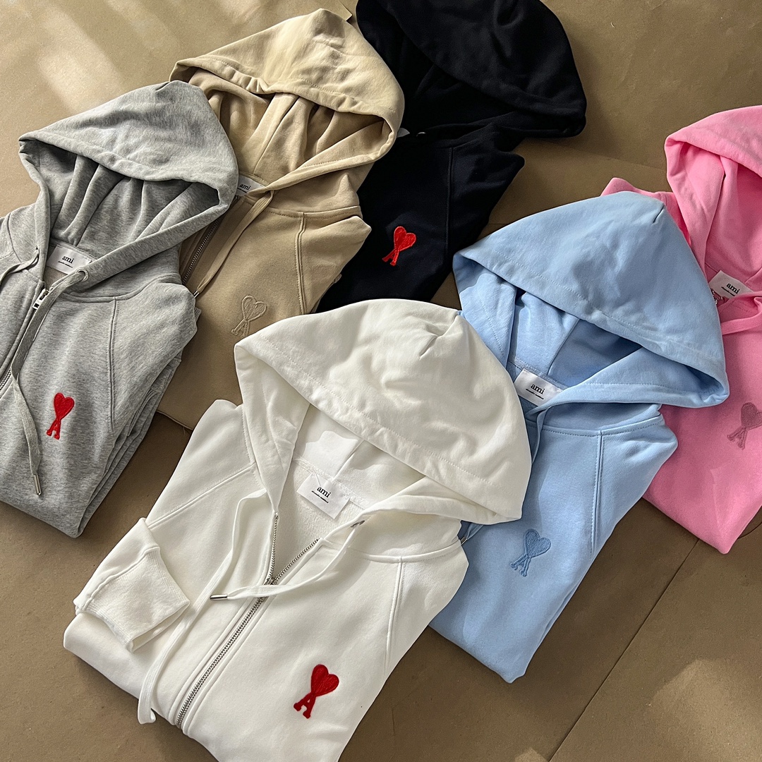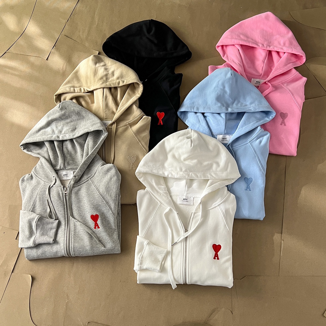 Ami Paris Heart Logo Zip-Up Hoodie Unisex Casual Sweatshirt