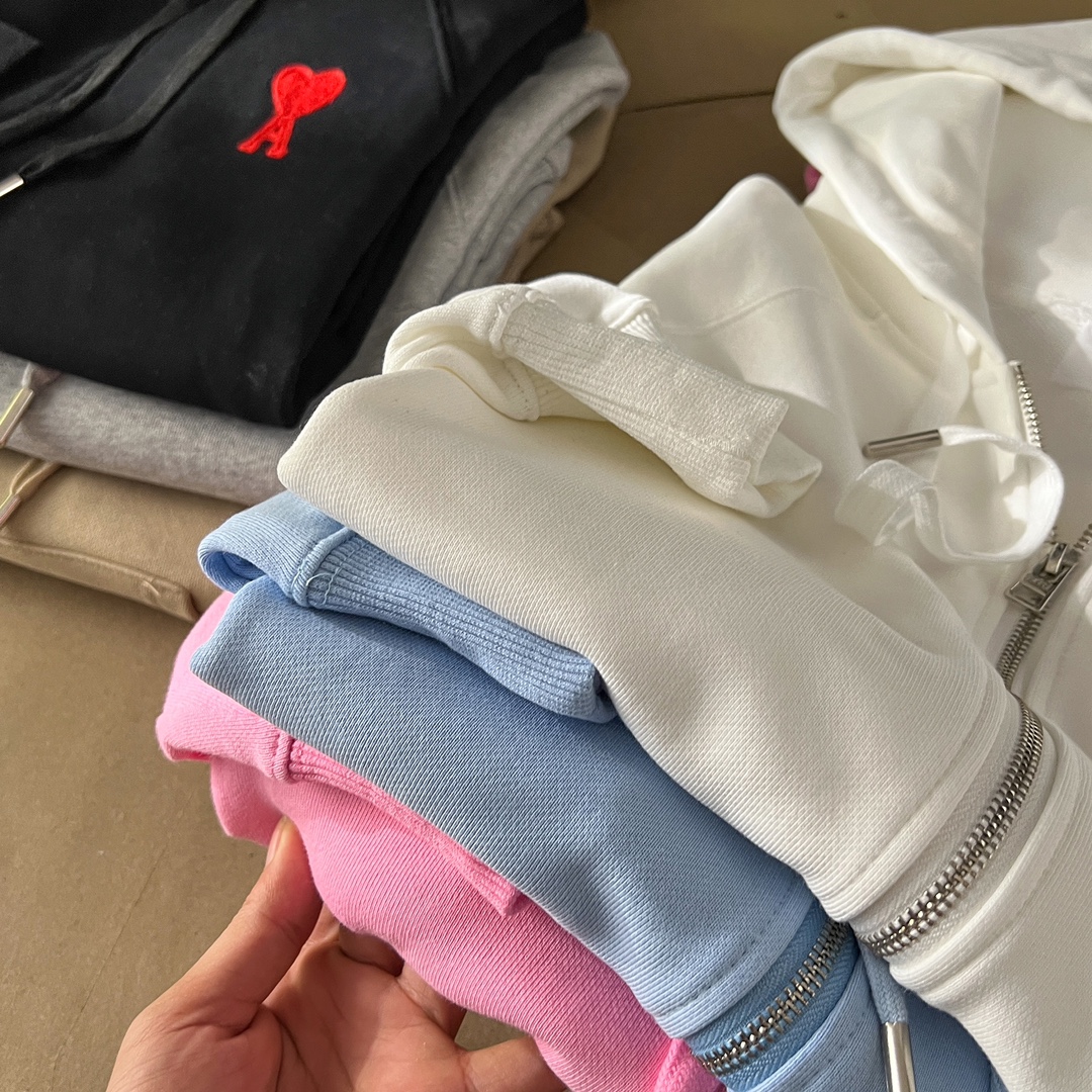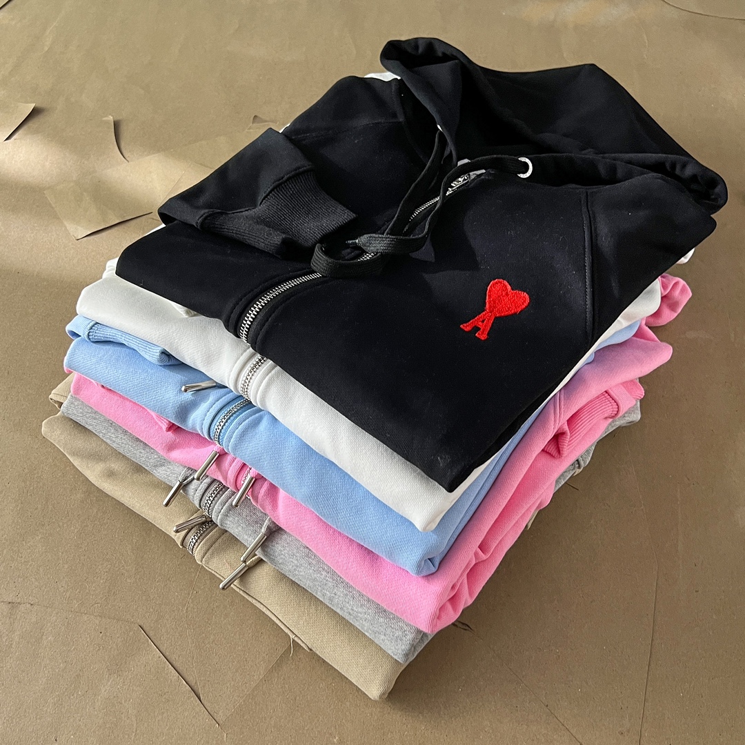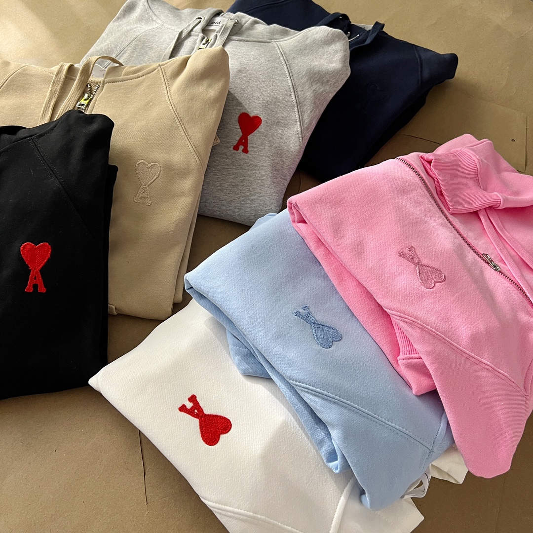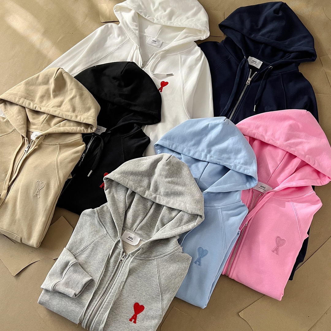 Ami Paris Heart Logo Zip-Up Hoodie Unisex Casual Sweatshirt