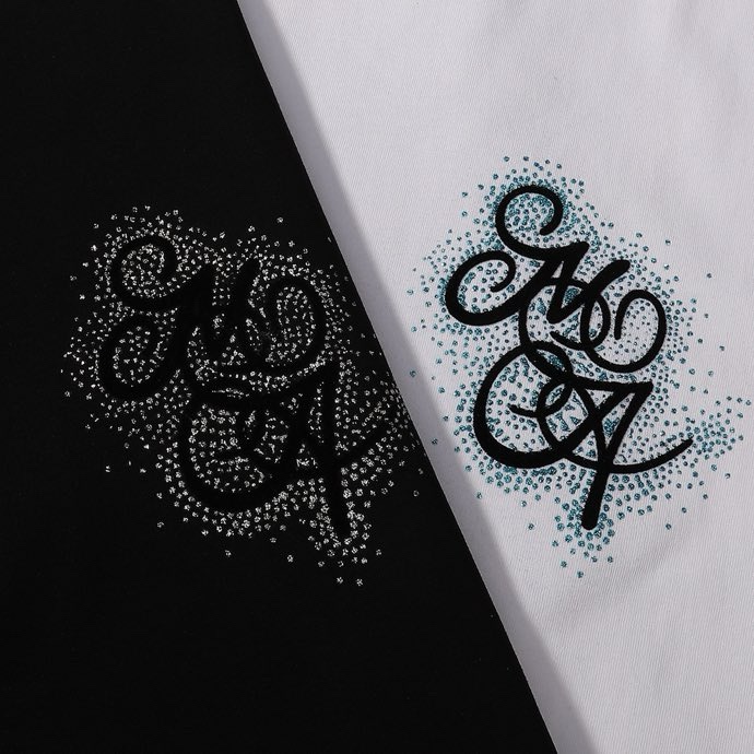 Amiri 2025 Spring/Summer Silver Glitter Logo T-Shirt, Unisex Relaxed Fit