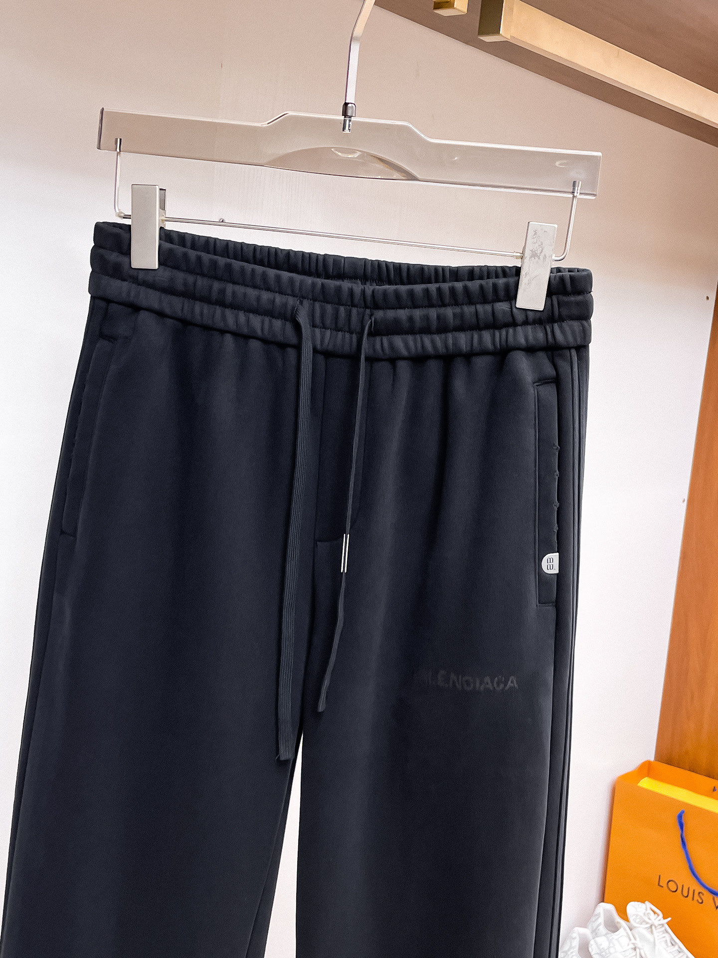 Elevate your casual style with these Balenciaga logo black pants. Custom fabric, comfortable fit, and iconic design for a standout look.