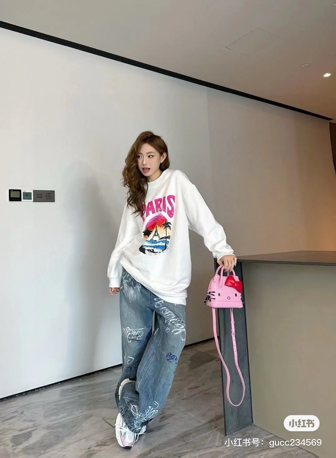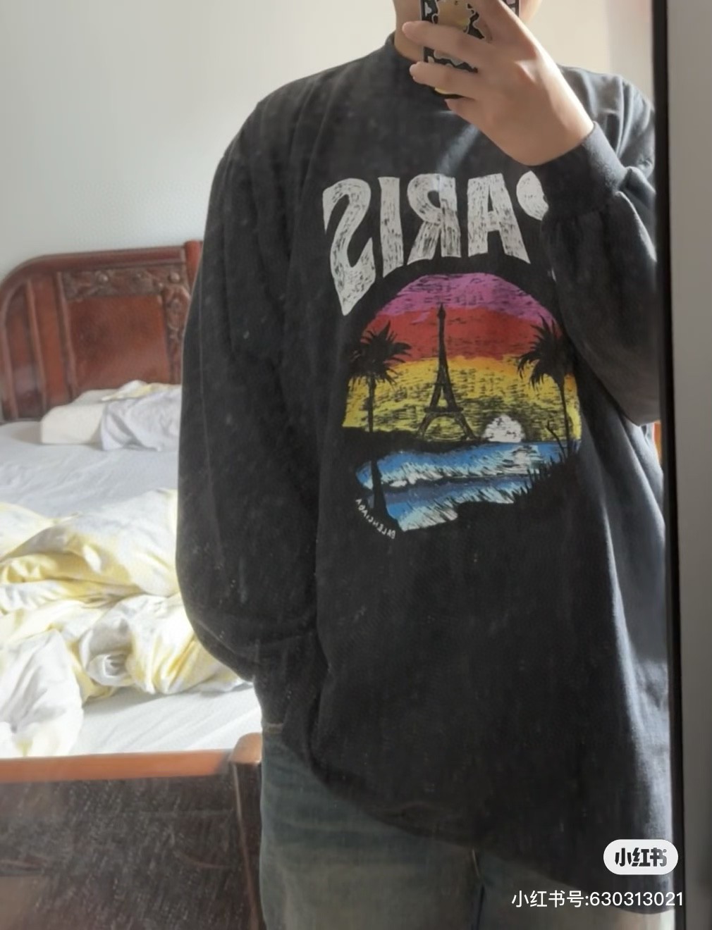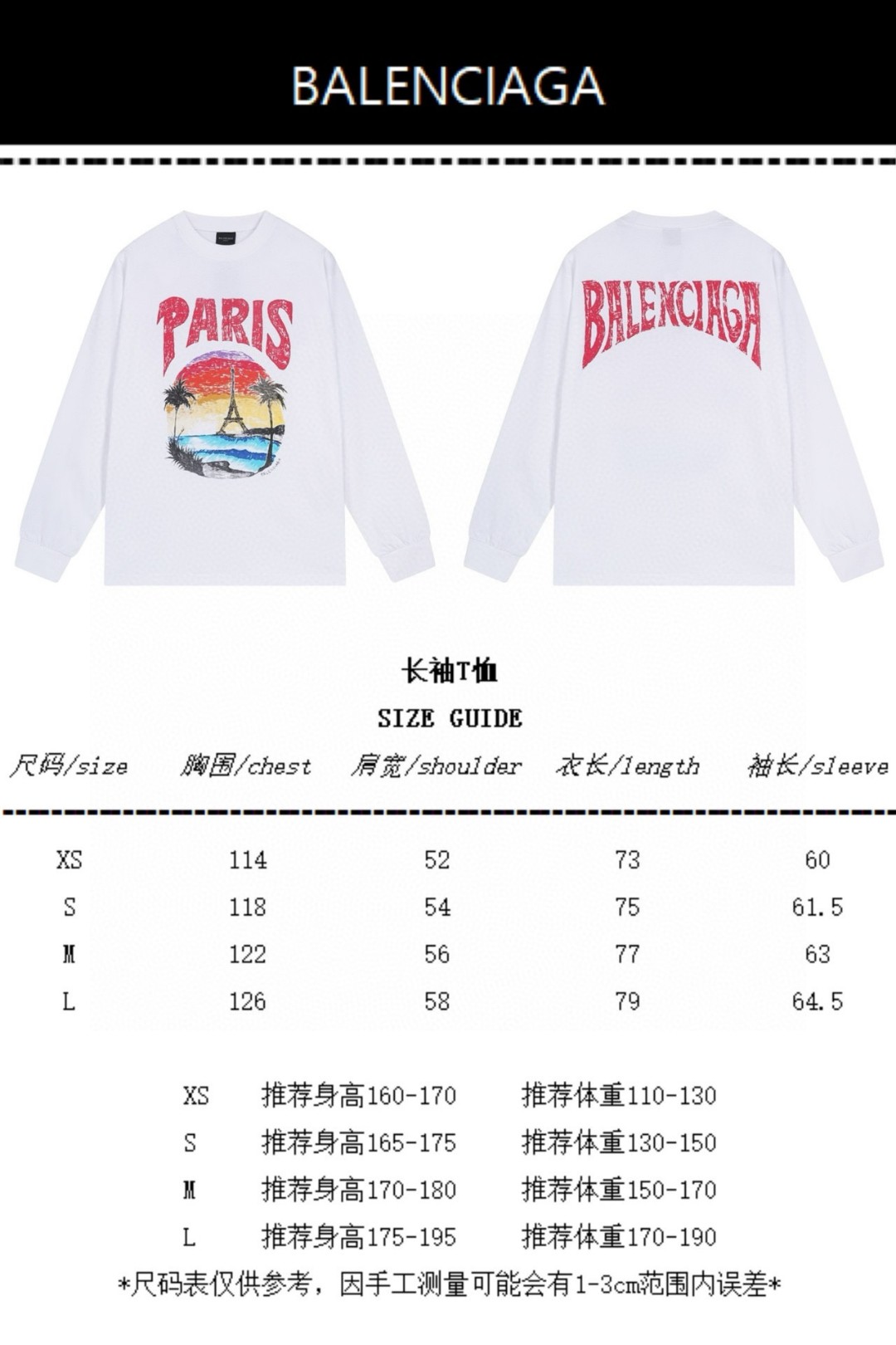 Elevate your style with this Balenciaga long sleeve tee featuring a Paris sunset print, crafted from 260g double yarn cotton for superior comfort.