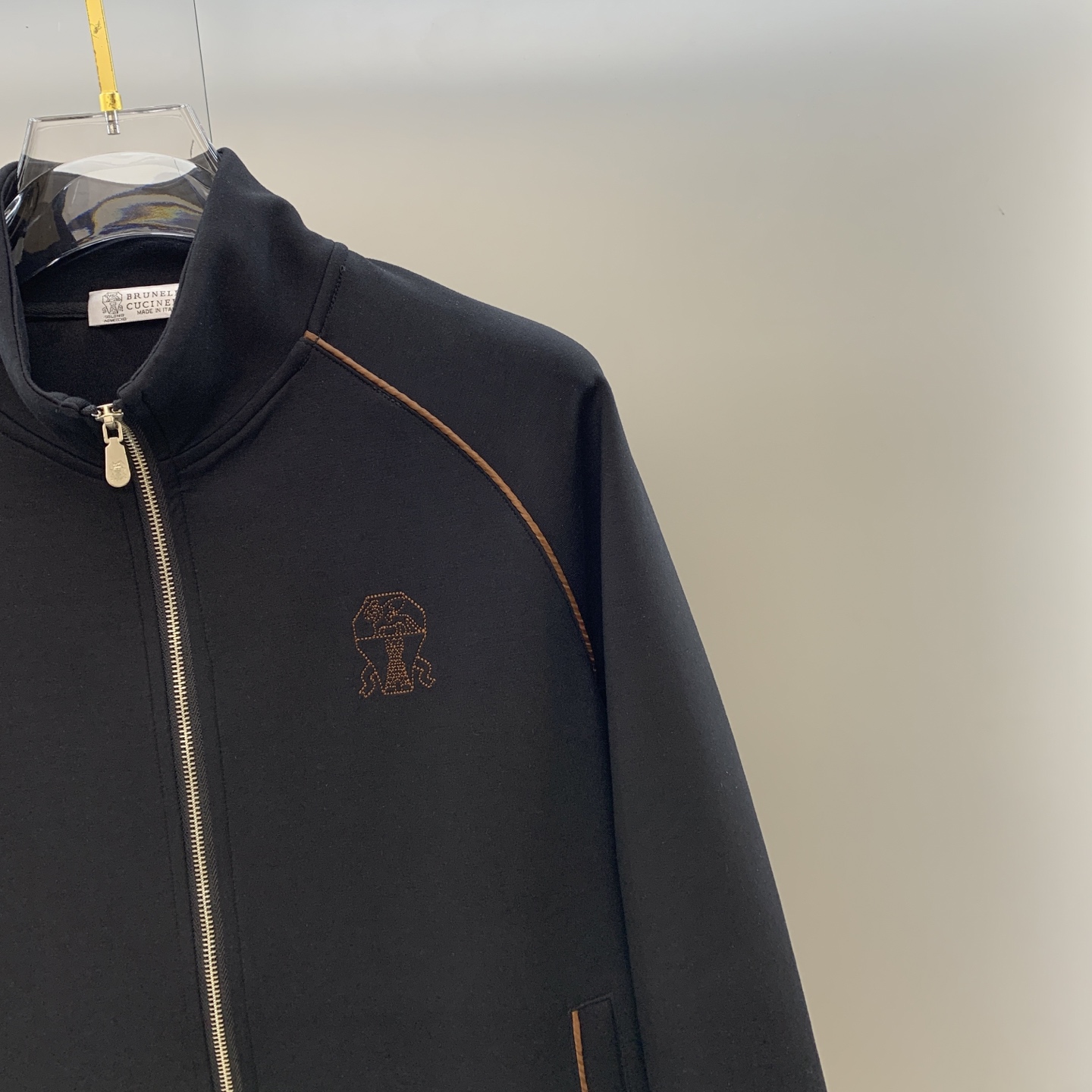 Brunello Cucinelli Men's Black Cotton Blend Tracksuit with Embroidered Logo
