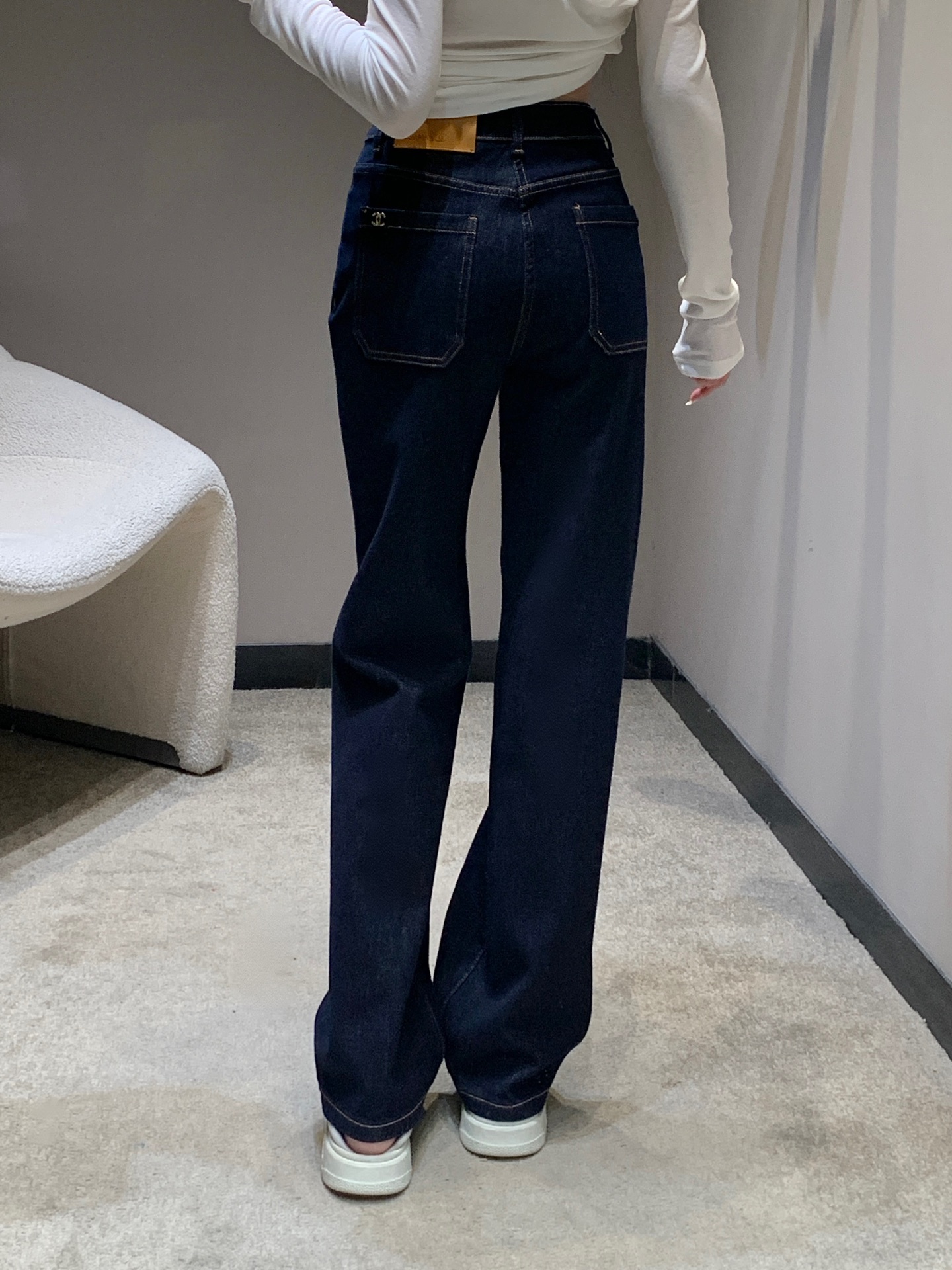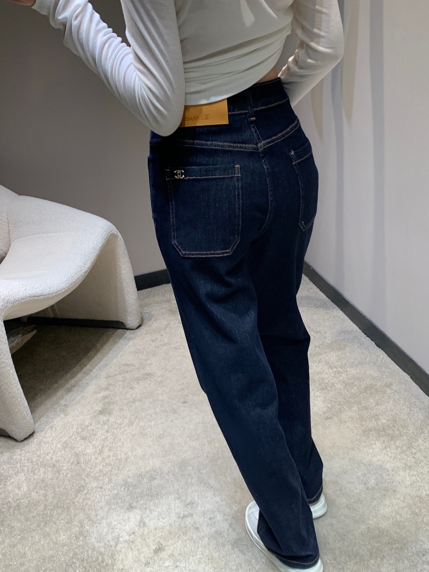 These Chanel 25Fw denim pants are a must-have addition to your wardrobe. Crafted with high-quality, dark denim, these pants offer both style and comfort, making them perfect for any season.