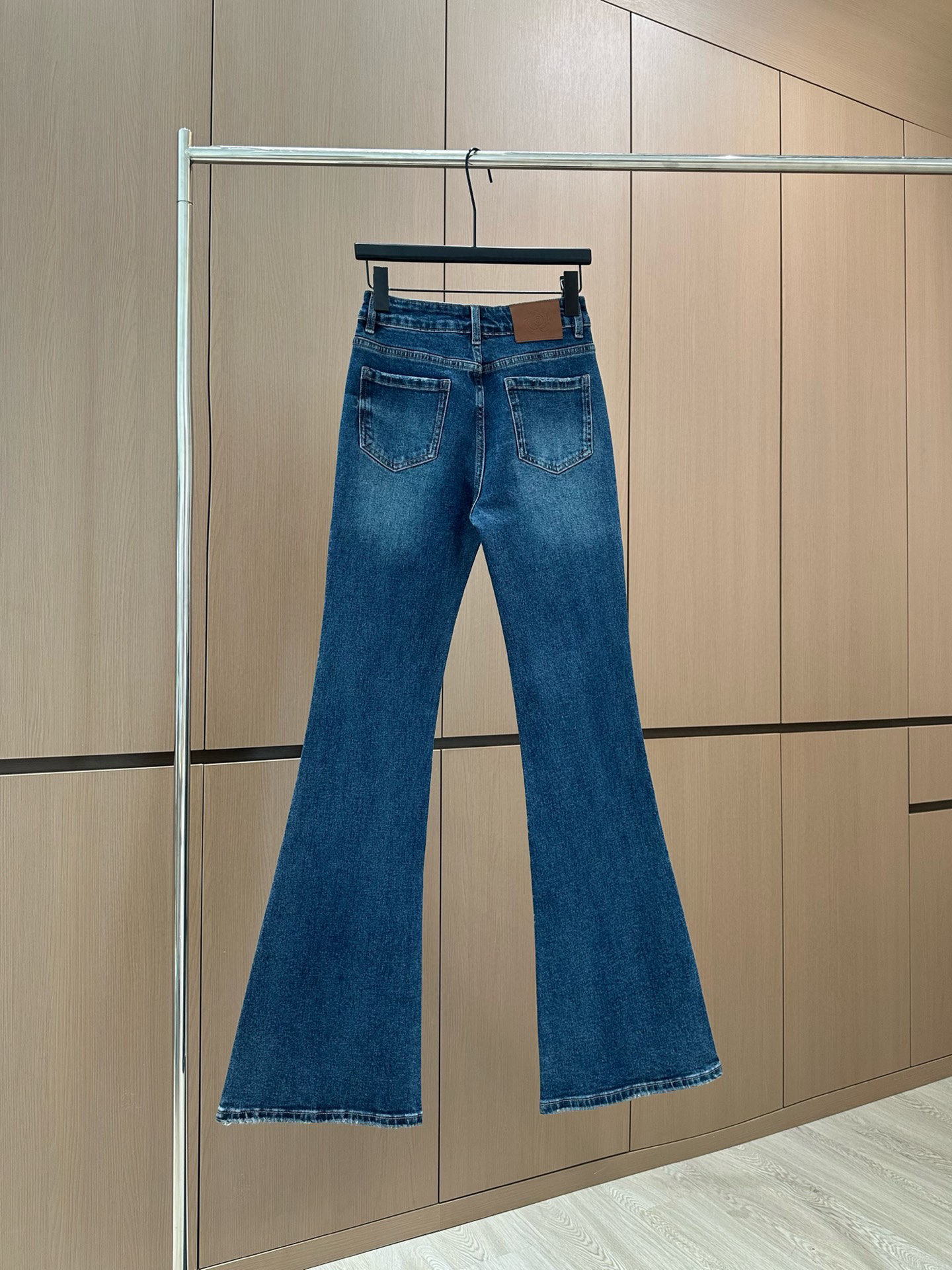Elevate your denim game with these Chanel-inspired flare leg jeans. High-waisted design and vintage wash offer a trendy, flattering fit.