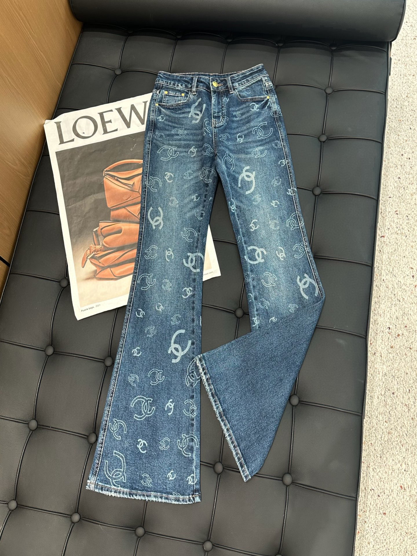 These stylish flare leg jeans are designed to make a statement. With a nod to classic Chanel design, these jeans offer a unique blend of vintage charm and contemporary style.