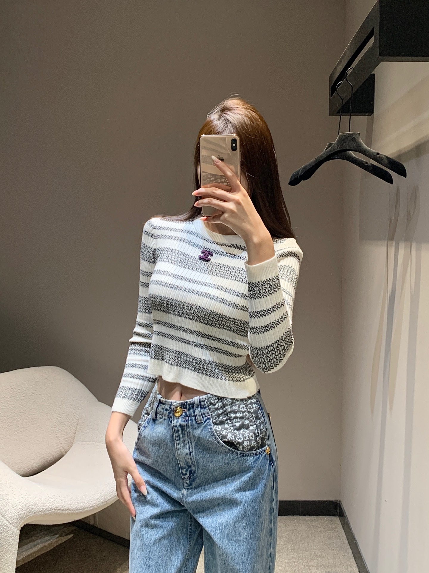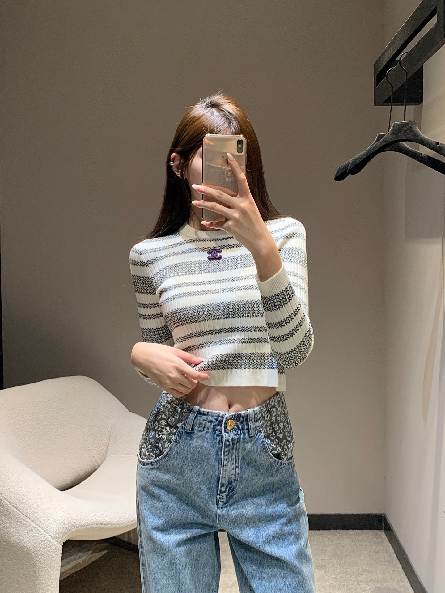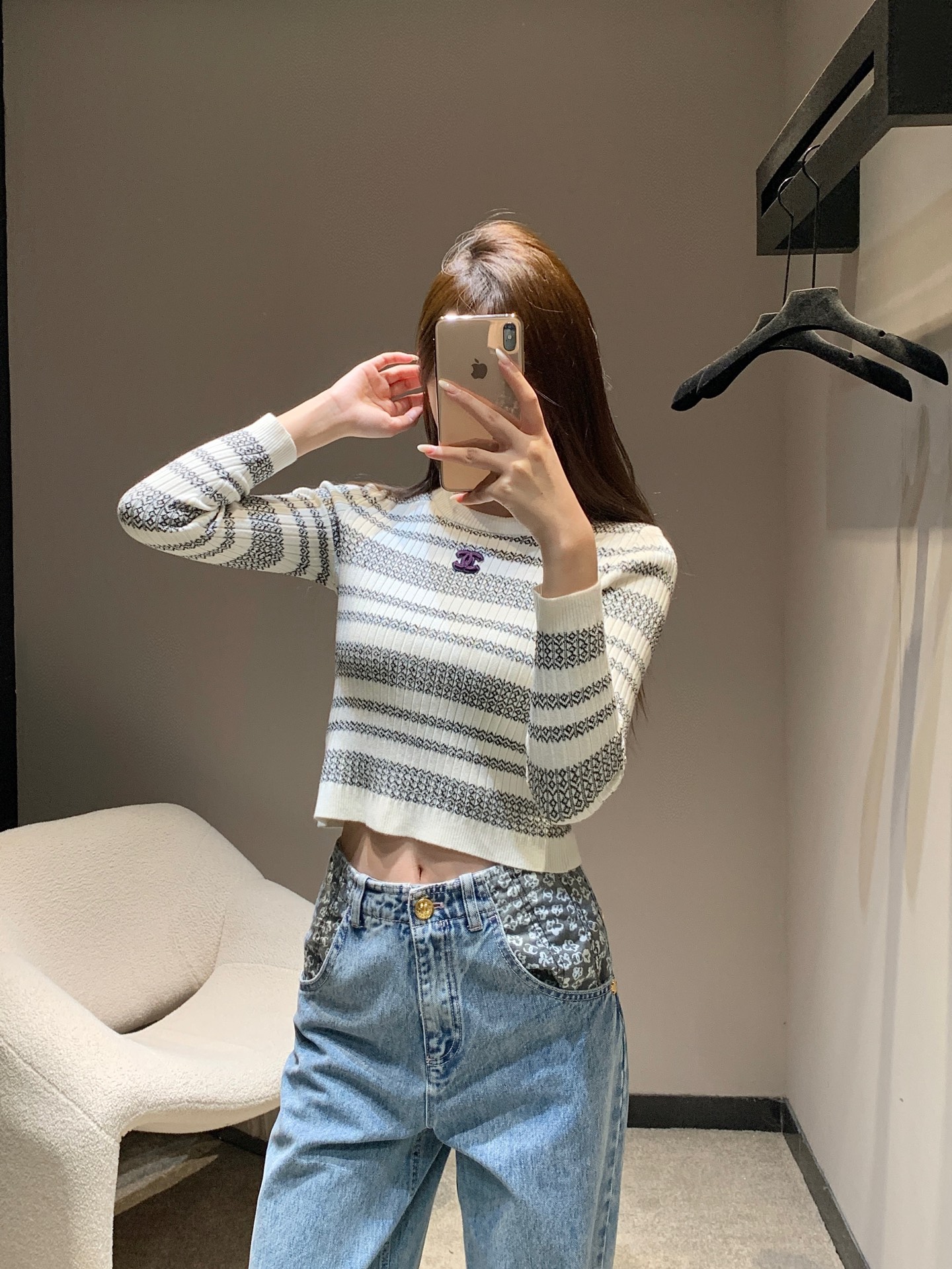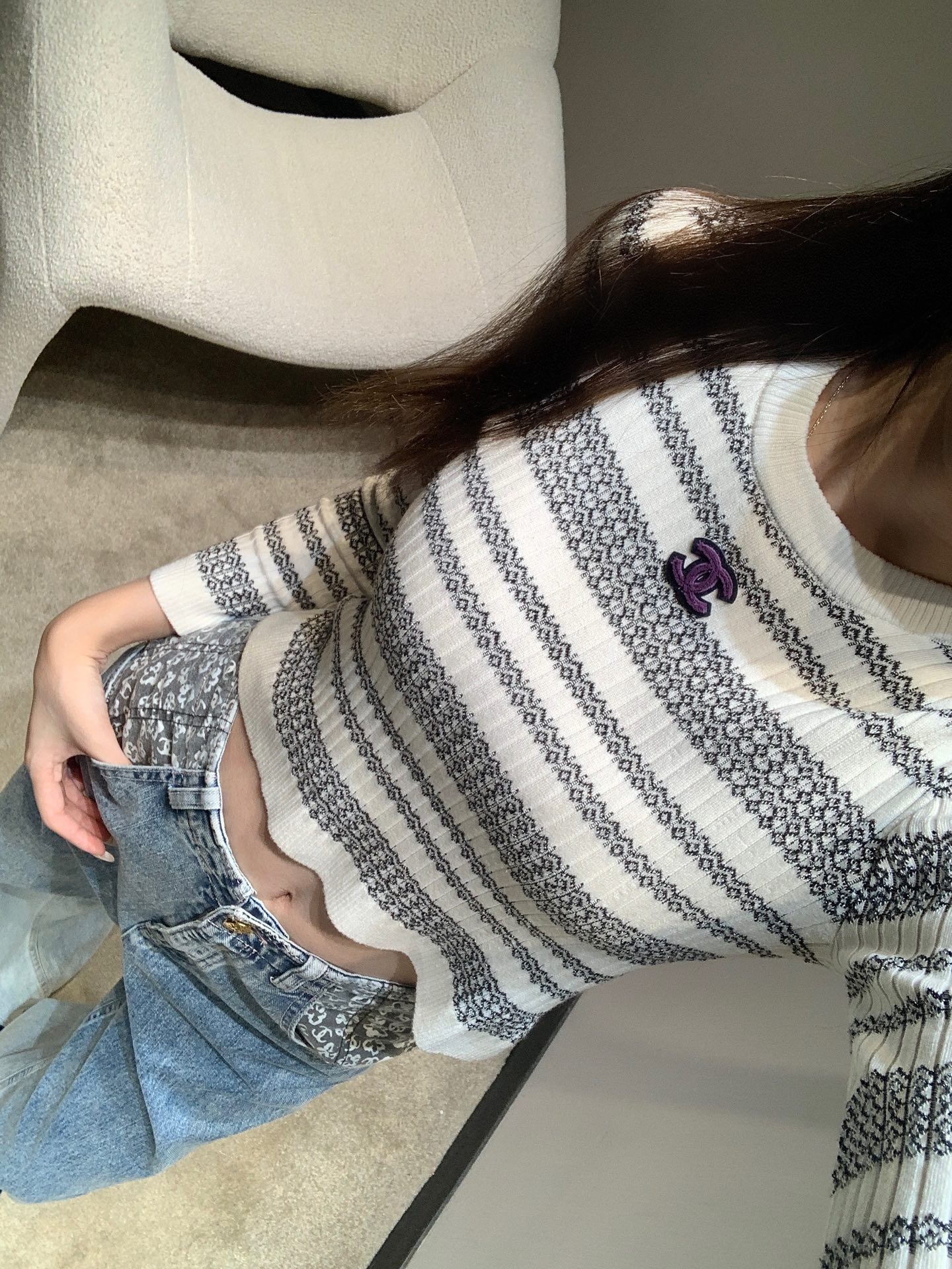 Chanel Striped Knit Top - Stylish & Comfortable Cropped Sweater