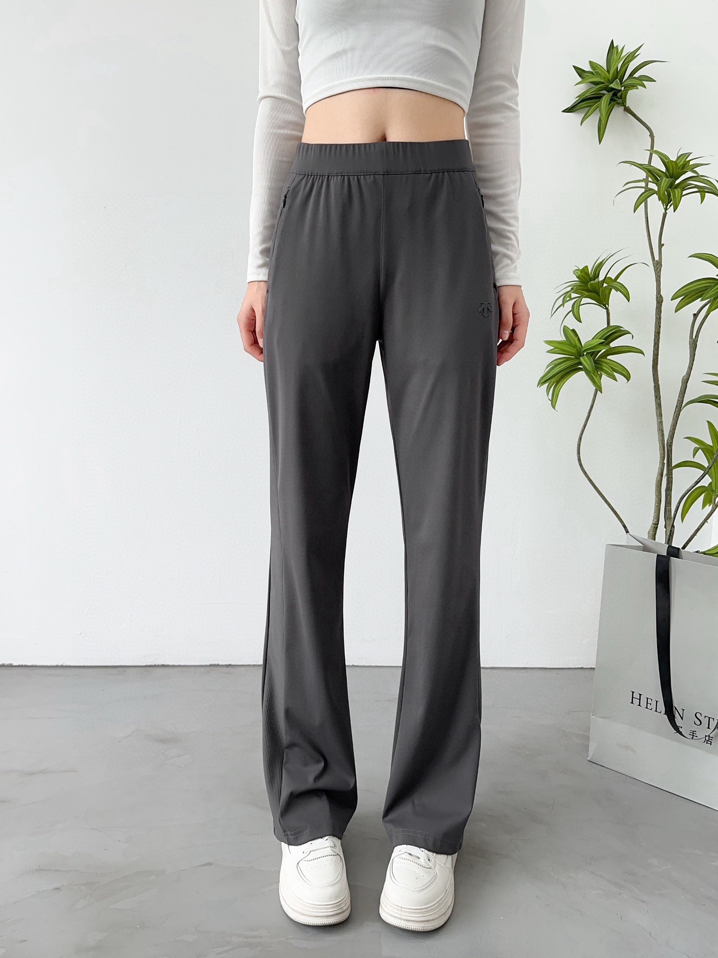 Elevate your workout with these Descente knit flare pants. Soft, stretchy, and breathable, perfect for any activity.