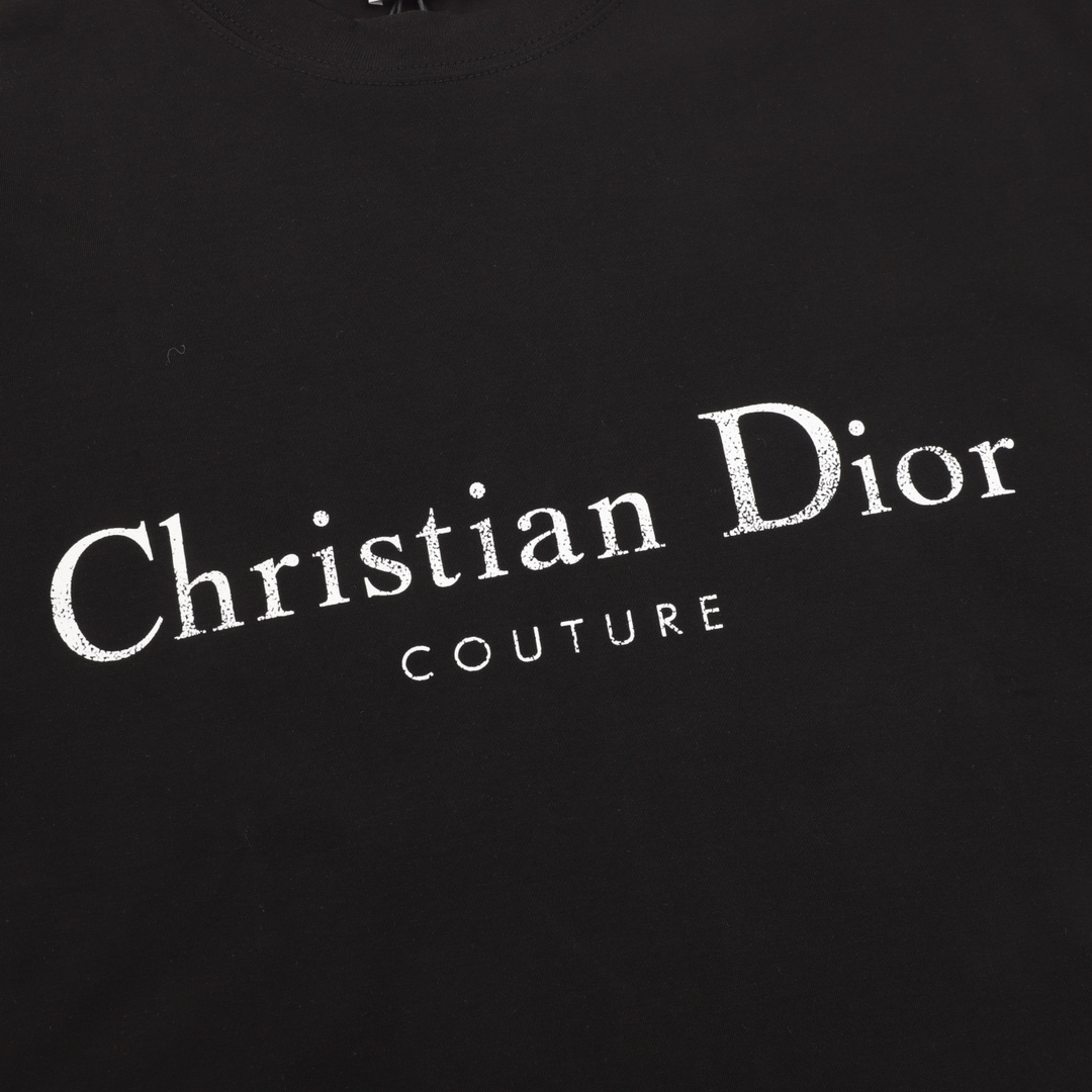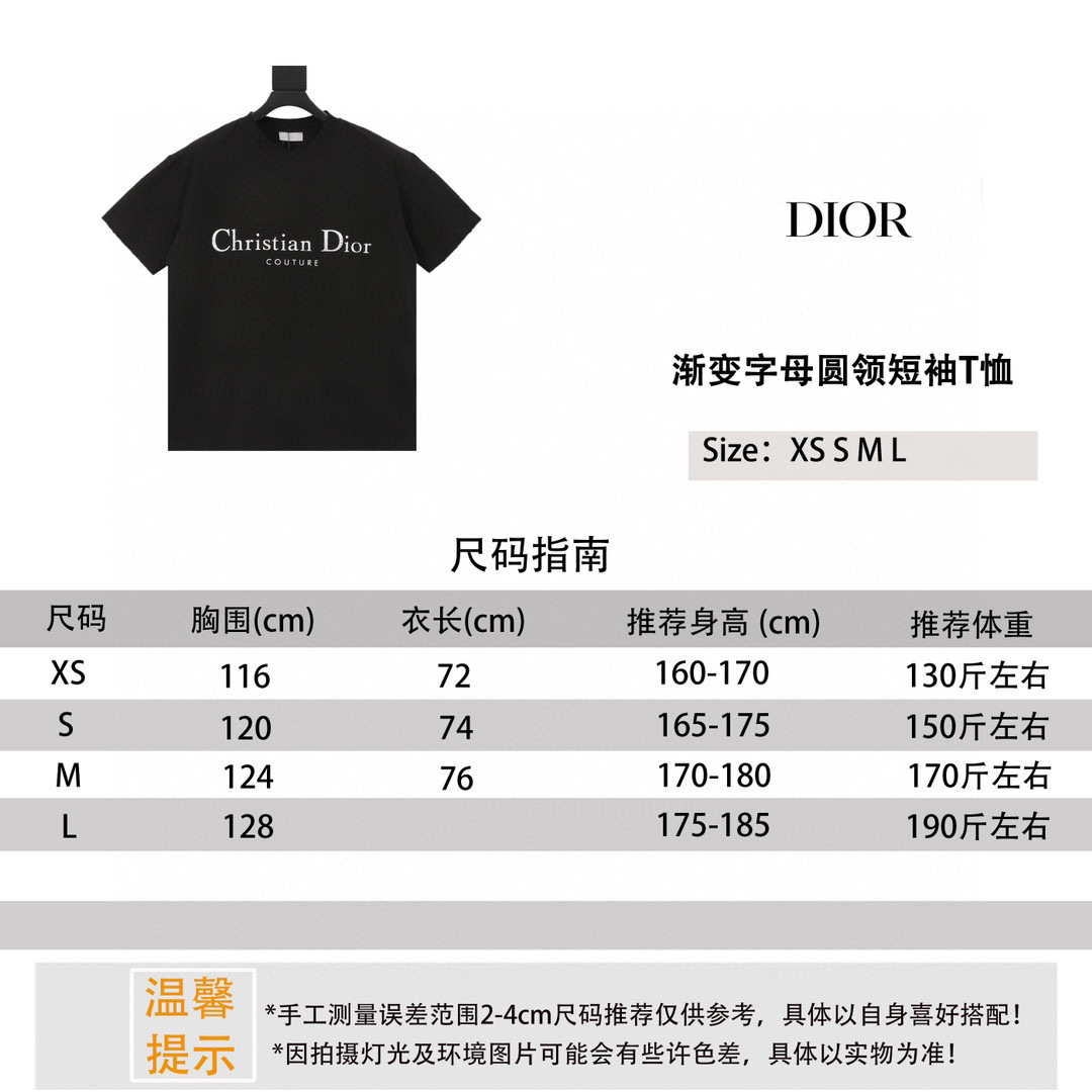 Experience luxury with this Dior tee. Features a gradient letter design, round neck, and soft, thick fabric. Unisex style, sizes XS-L.