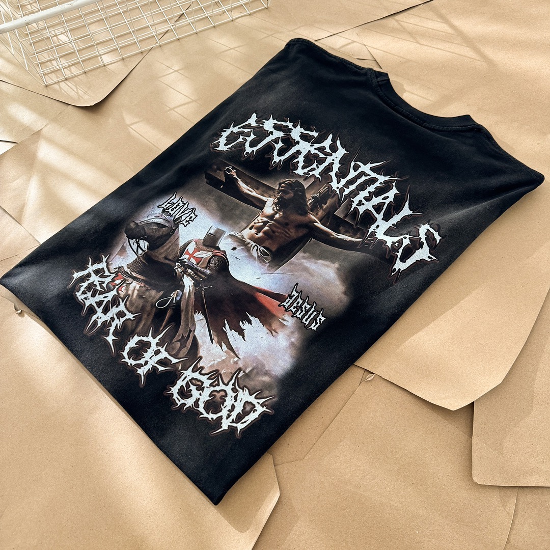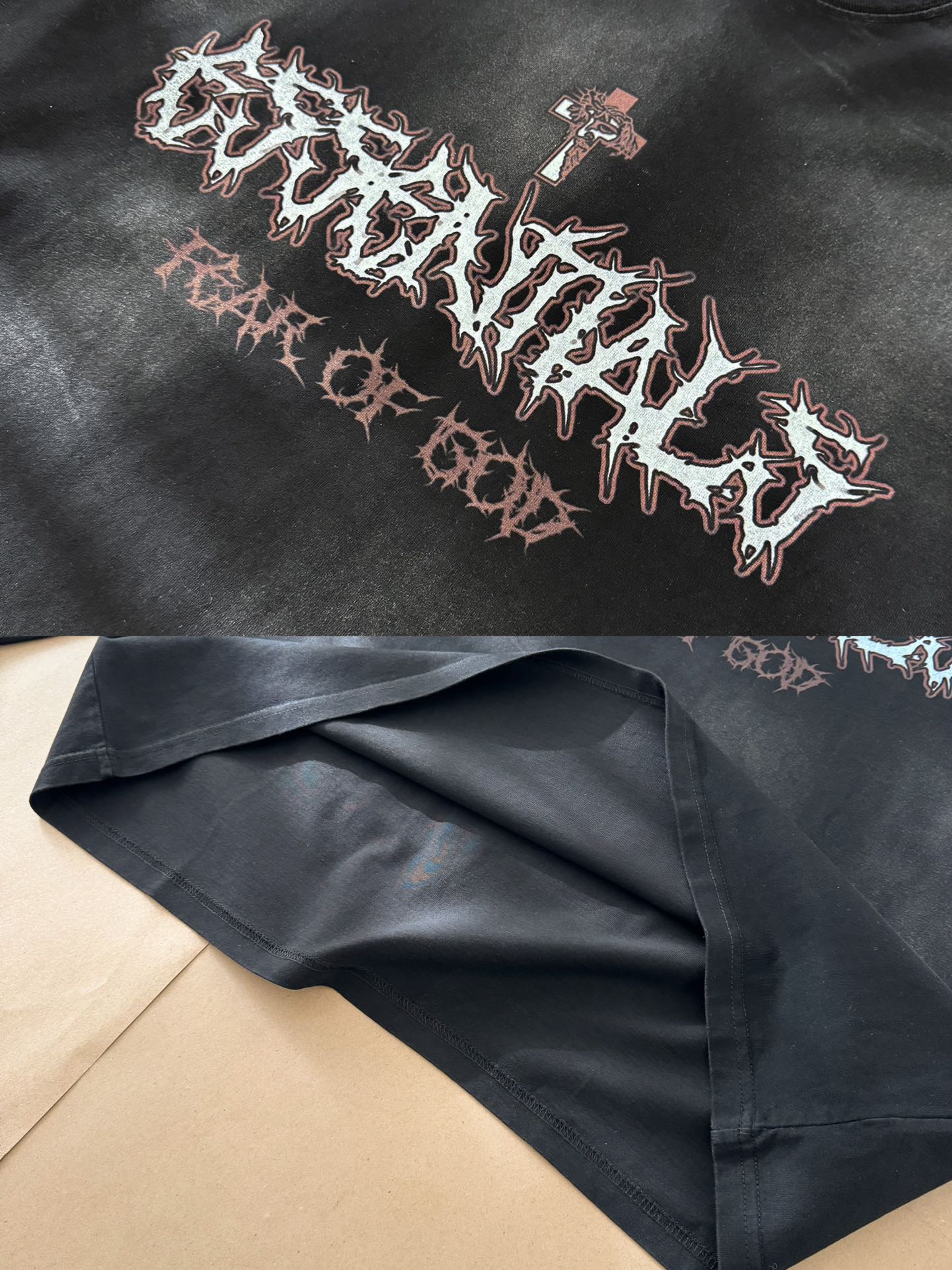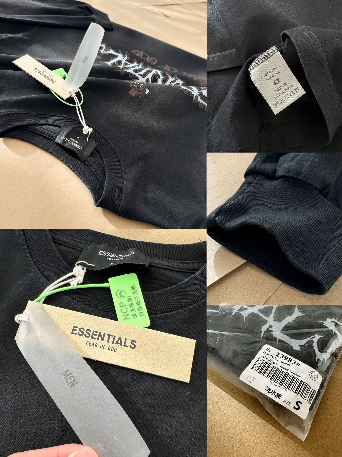 - Graphic print featuring "Essentials" and "Fear of God" logos