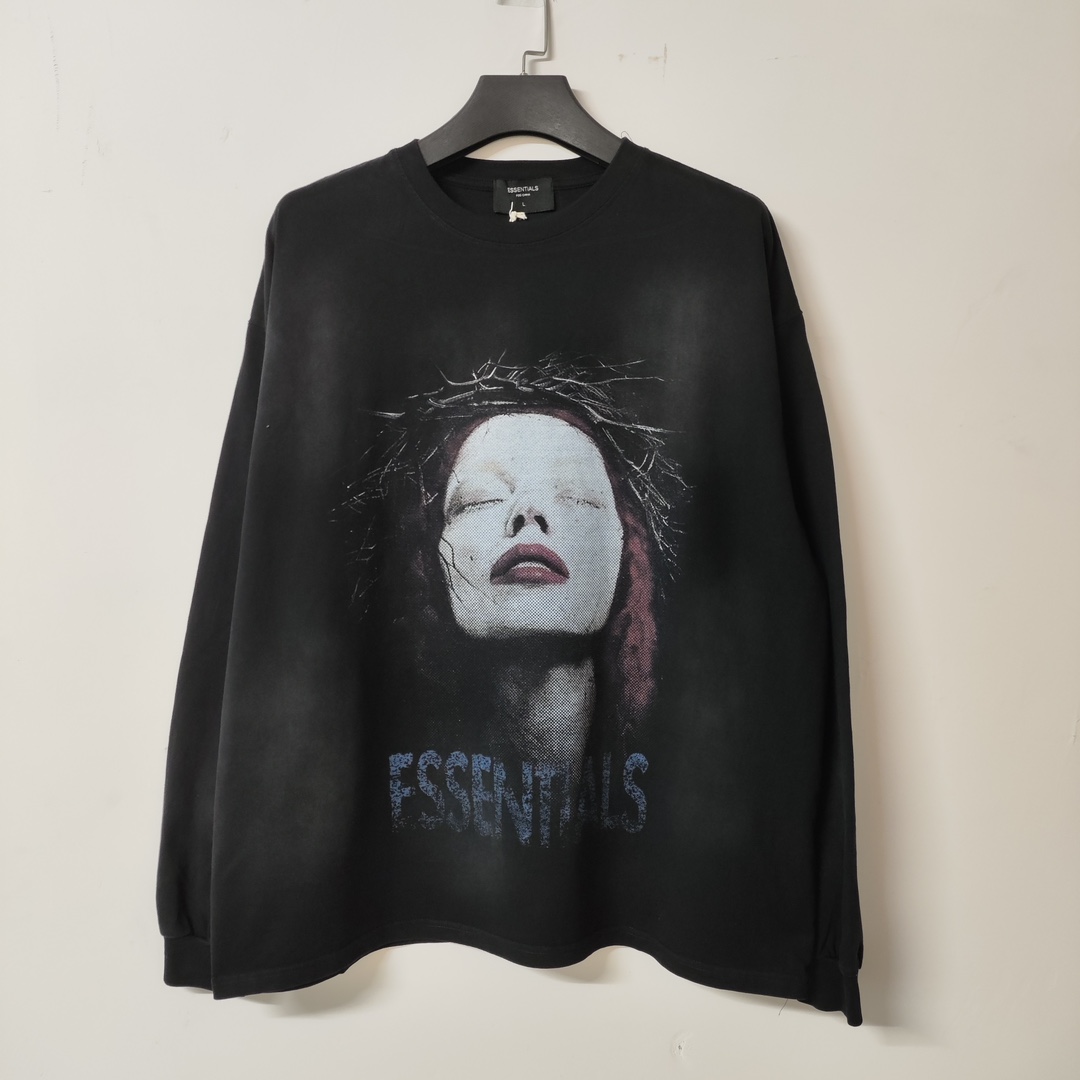 Essentials Fear of God Vintage Wash Black 'Sleeping Goddess' Long Sleeve Tee