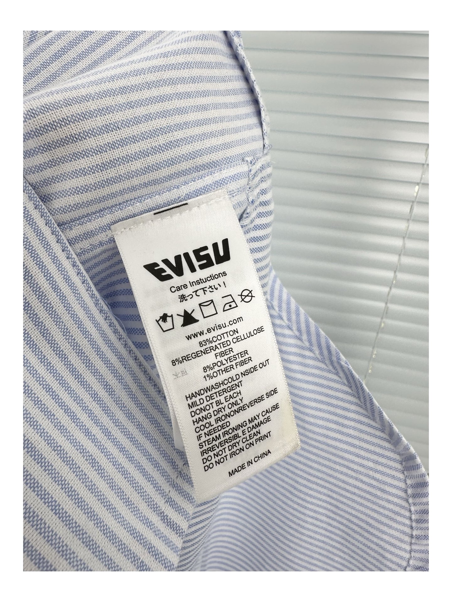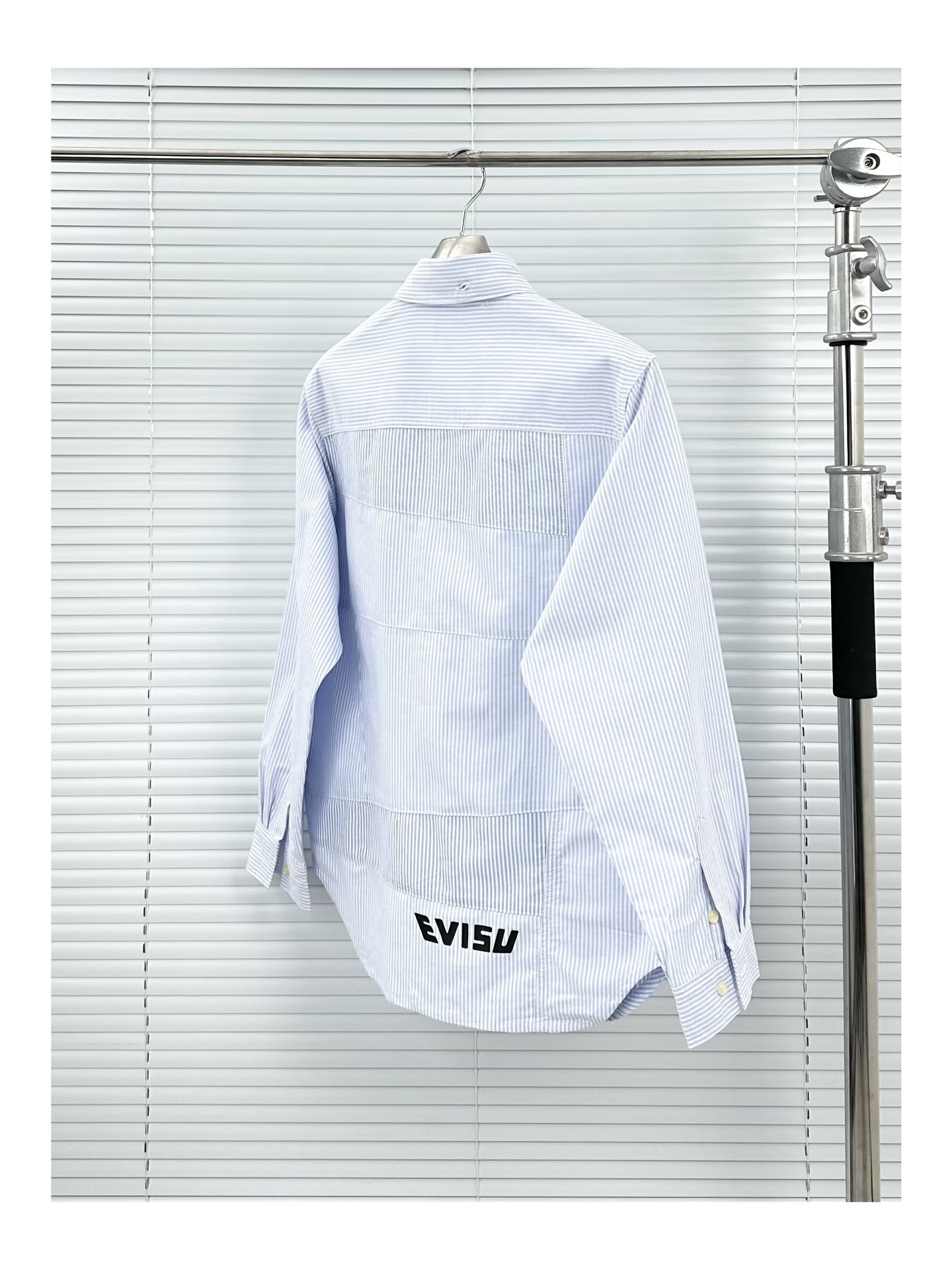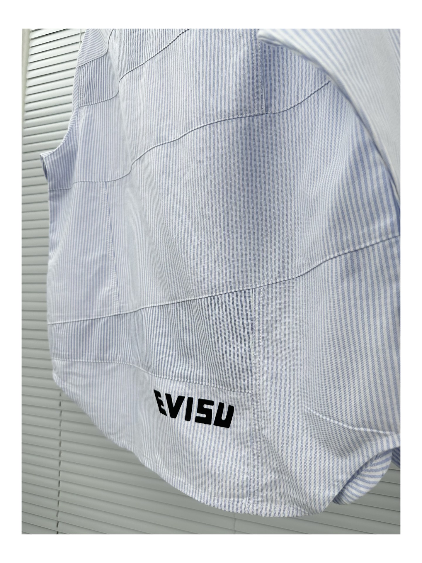 This EVISU striped shirt is a stylish and unique addition to any wardrobe, perfect for those who appreciate quality craftsmanship and contemporary design.