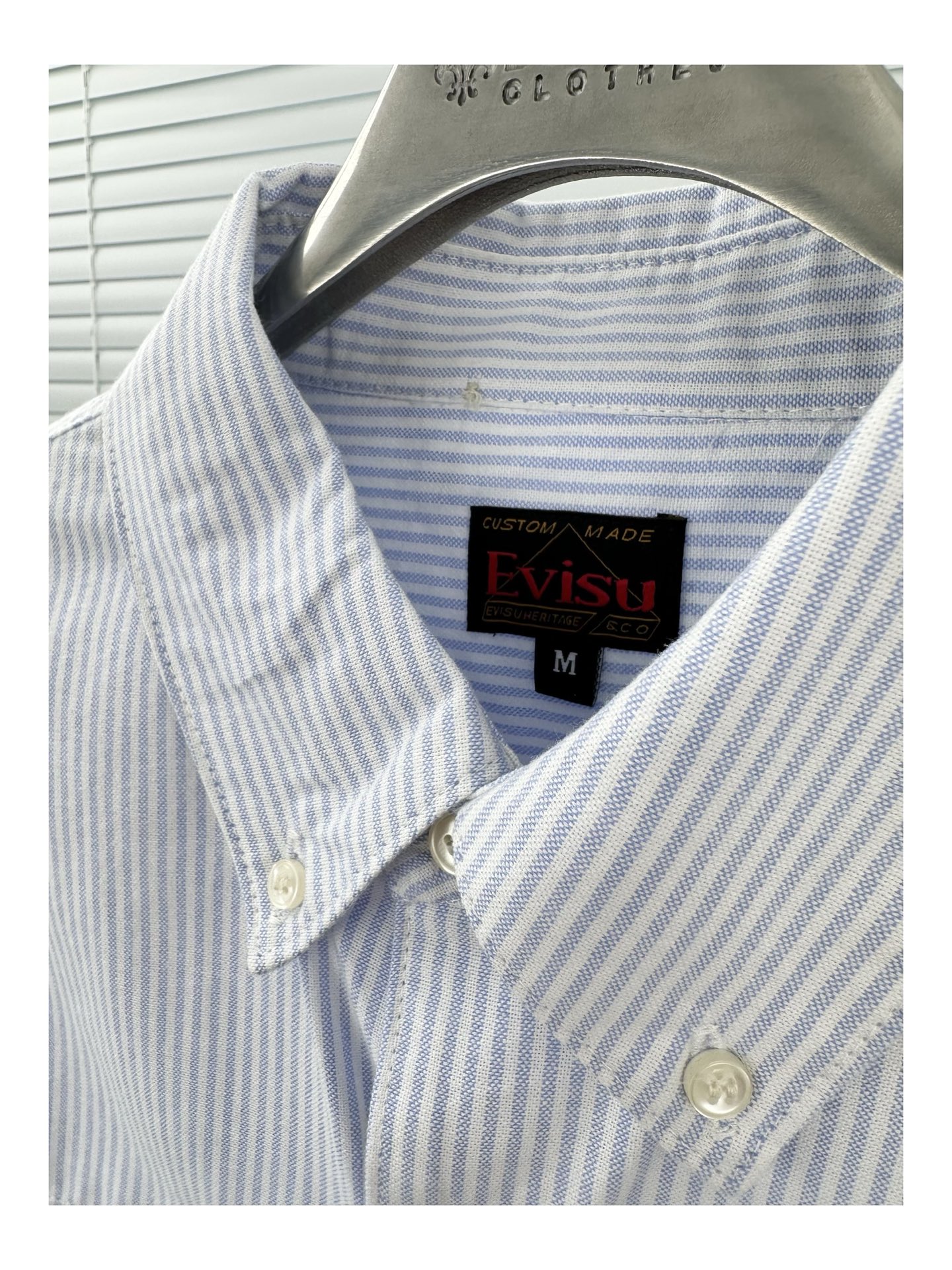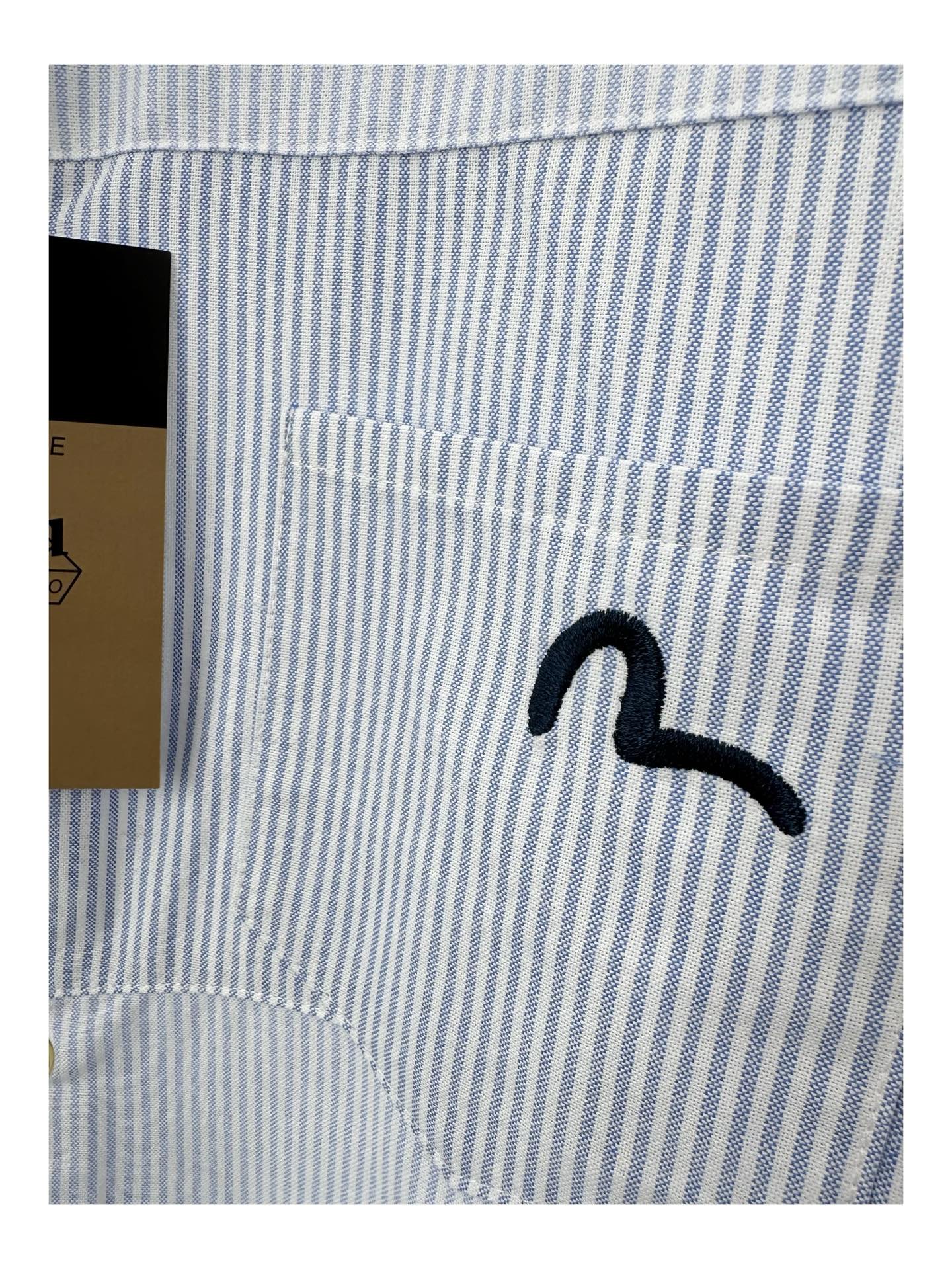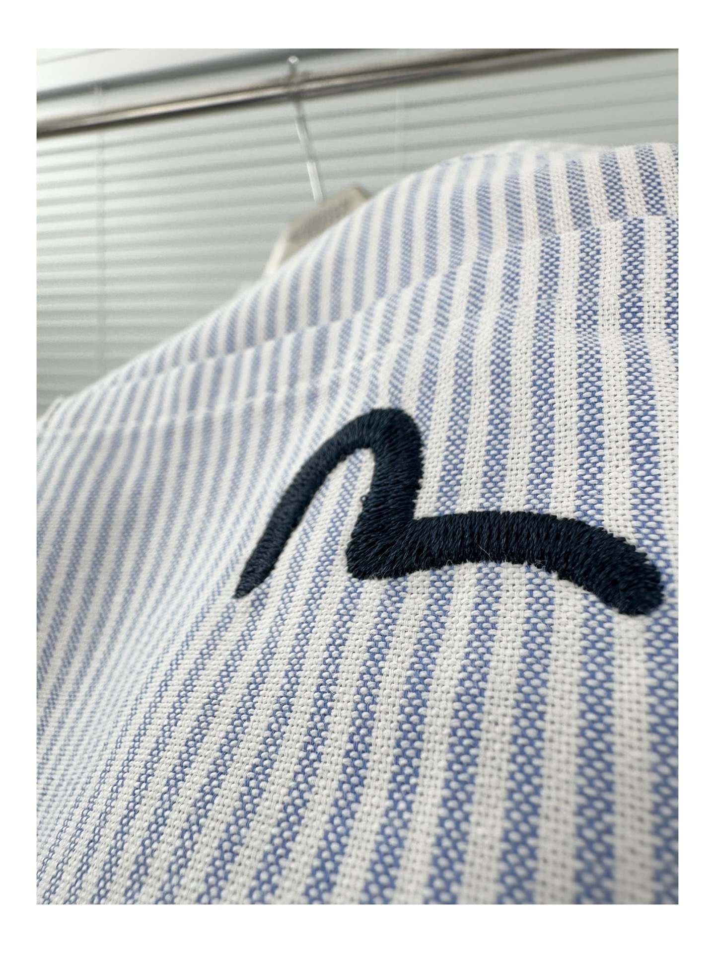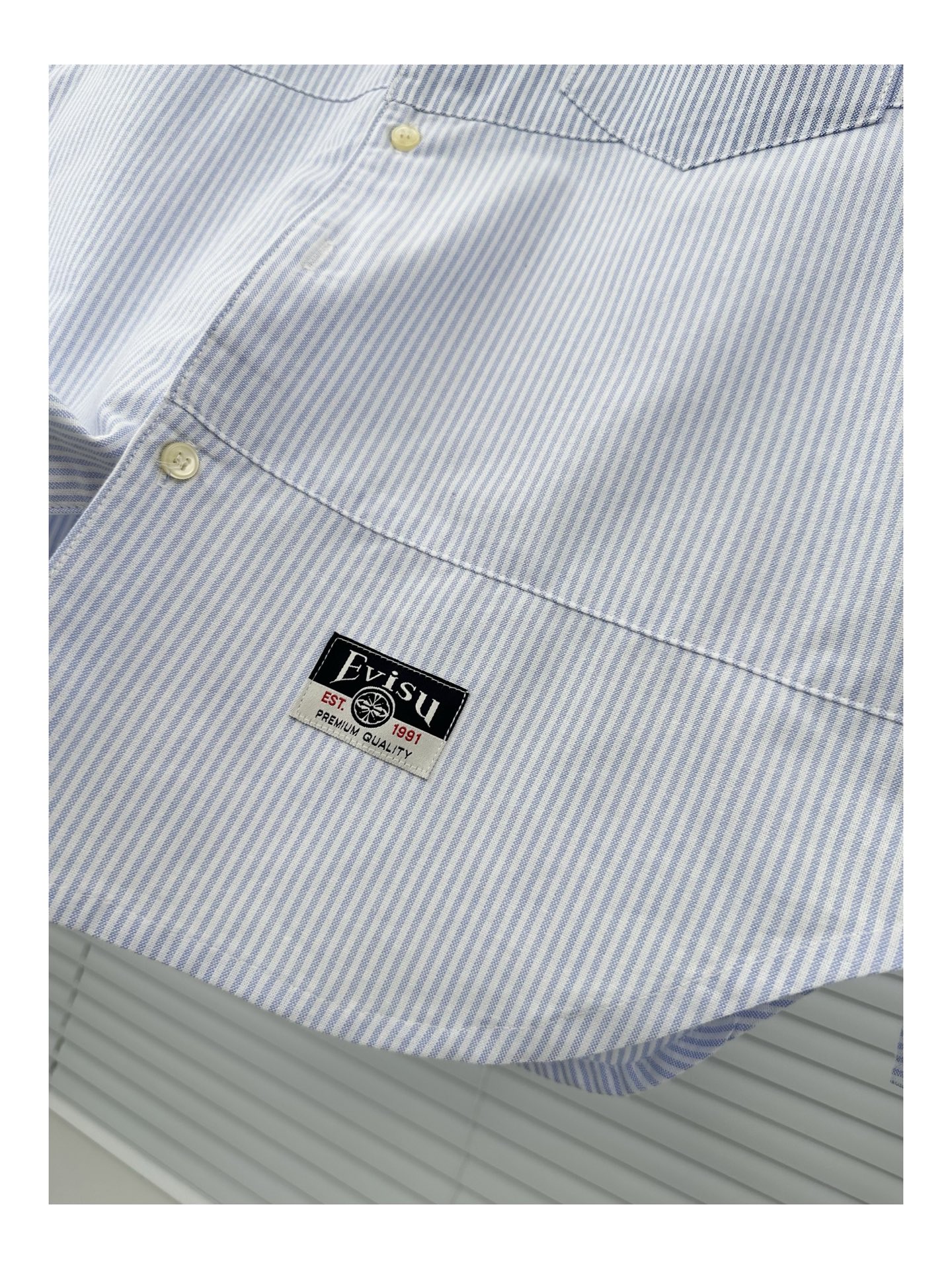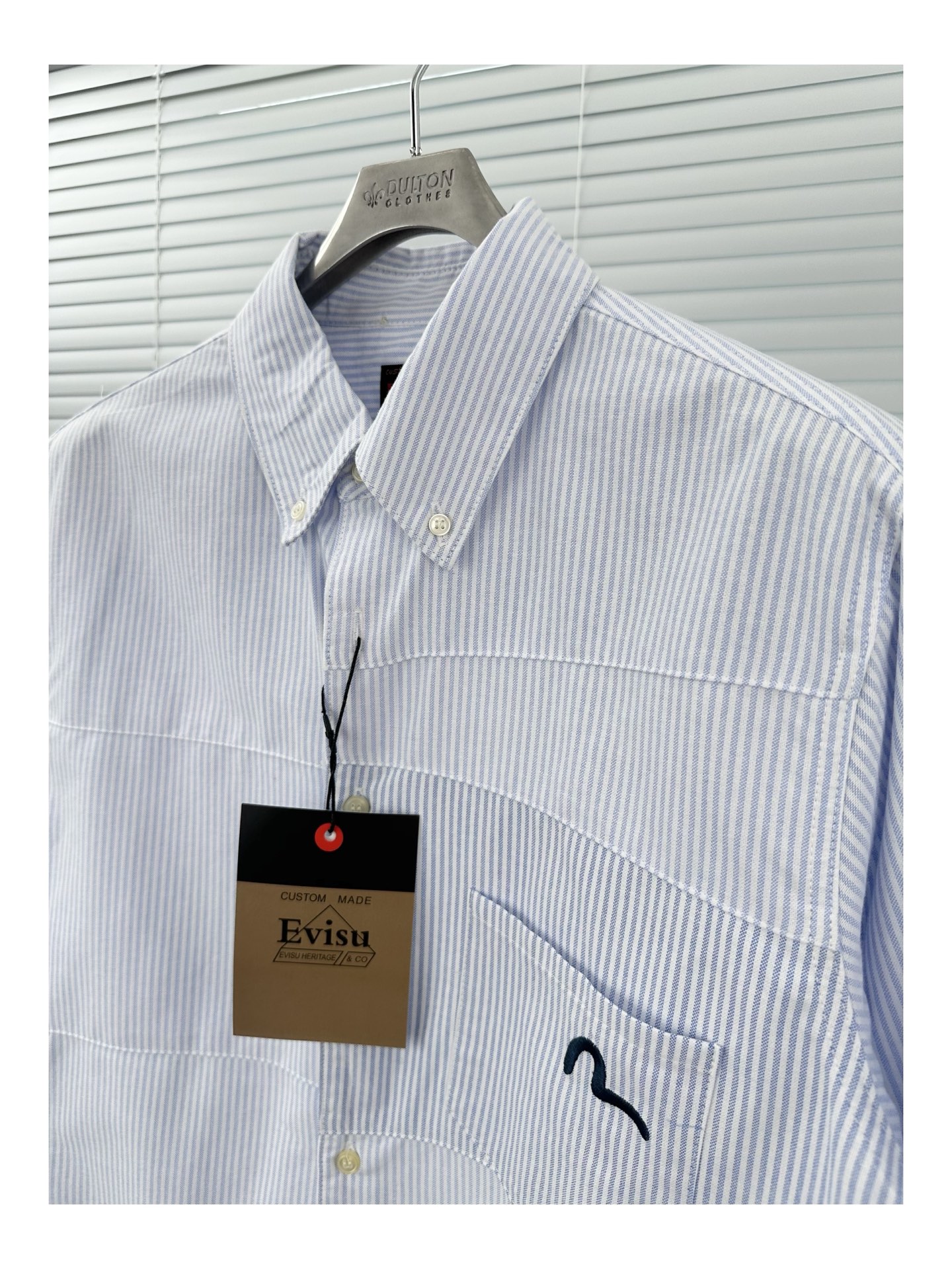 EVISU Striped Shirt - Blue and White, Embroidered Seagull Logo, Casual Style