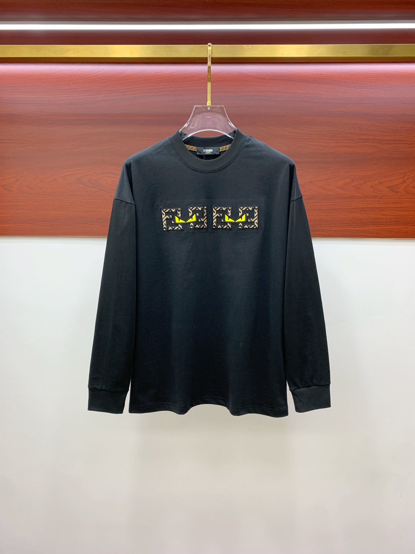This Fendi long sleeve T-shirt is a stylish and comfortable addition to any wardrobe. Featuring the iconic Fendi monster eyes graphic, this shirt is perfect for making a statement while staying comfortable.