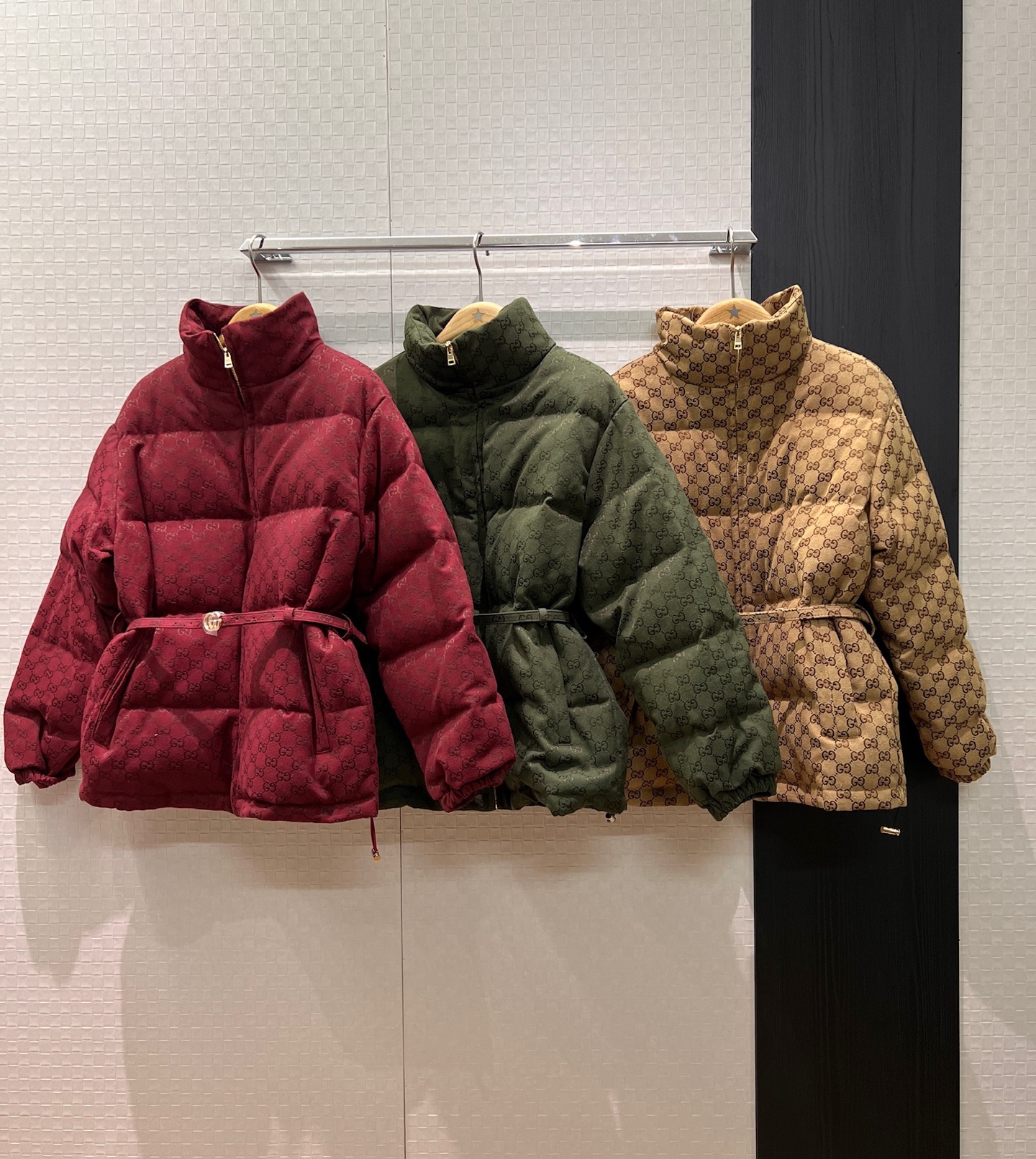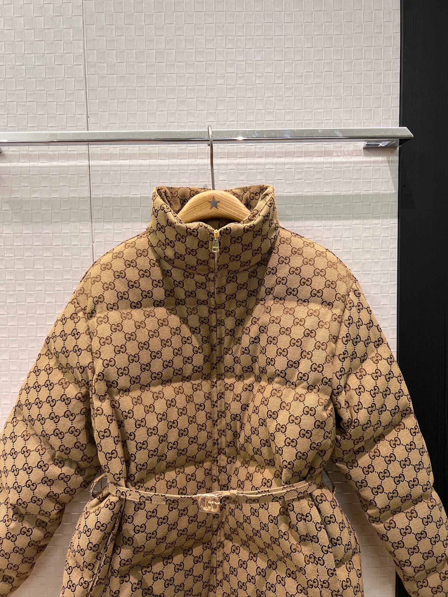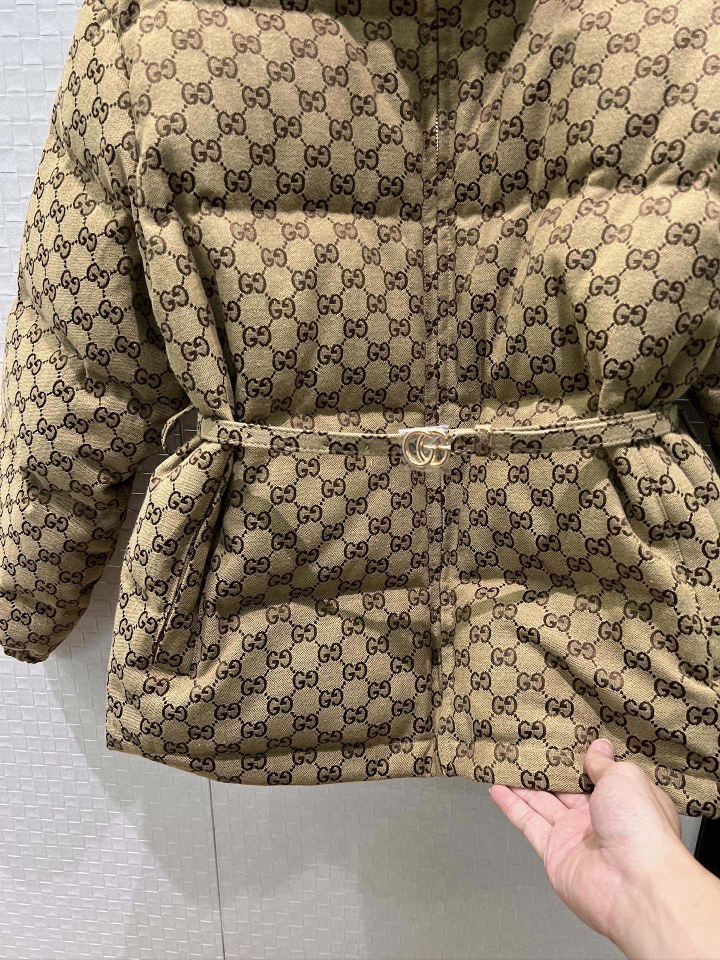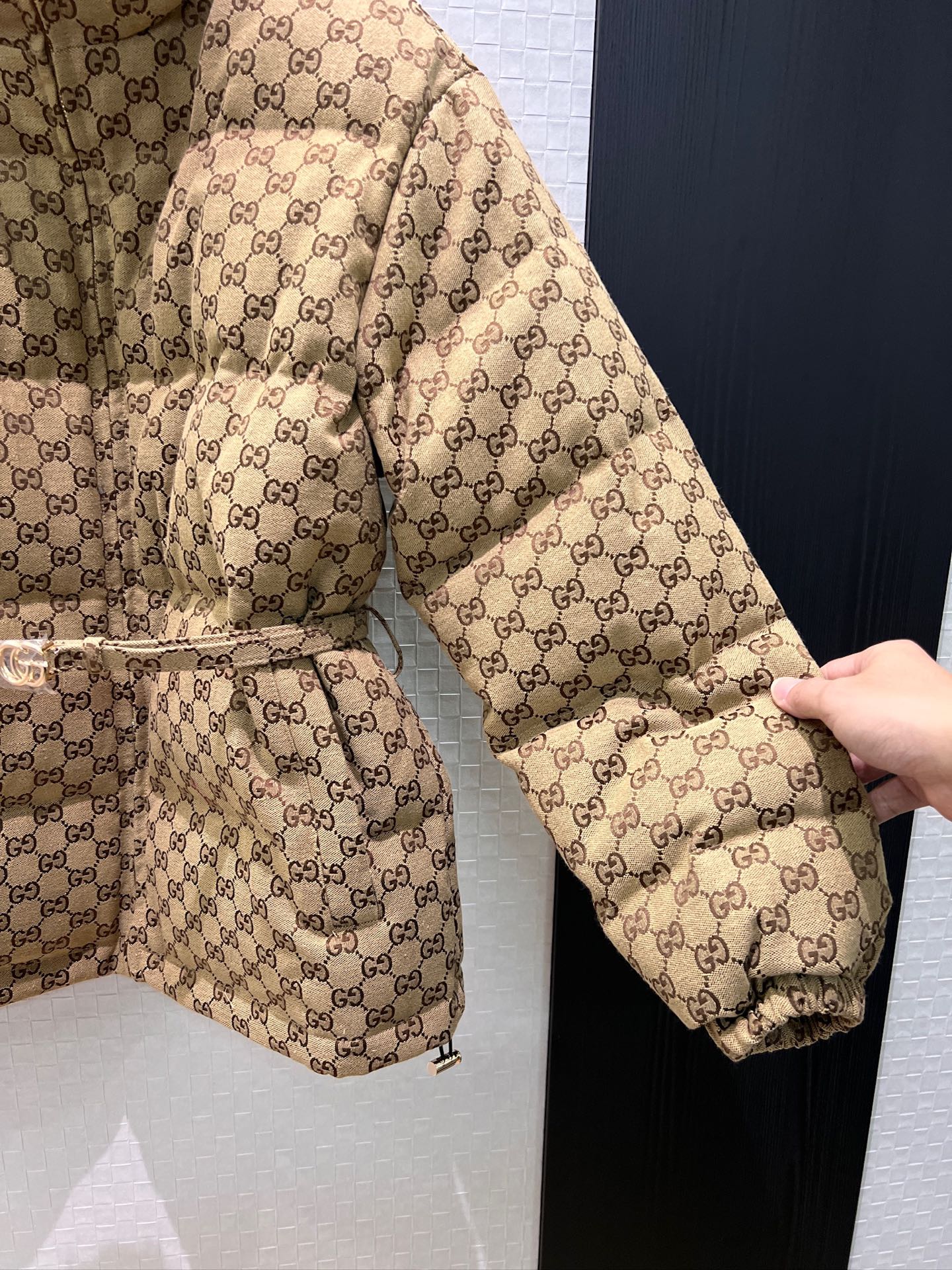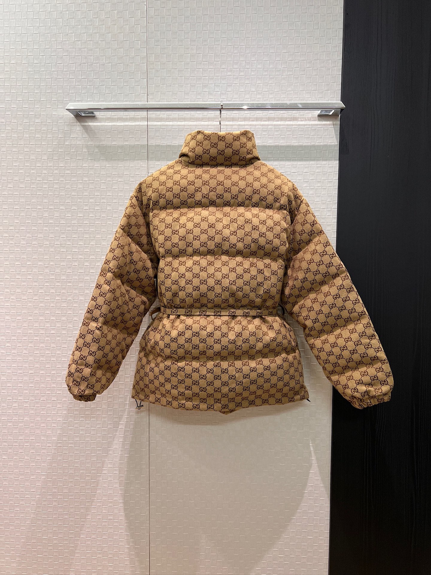 Gucci Monogram Padded Down Jacket With Belt Beige