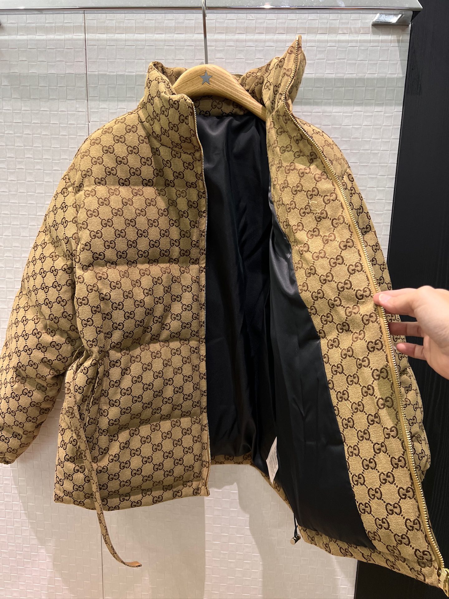 This Gucci monogram padded down jacket is the perfect blend of luxury and practicality. Crafted with meticulous attention to detail, this coat is designed to keep you warm and stylish throughout the colder months.
