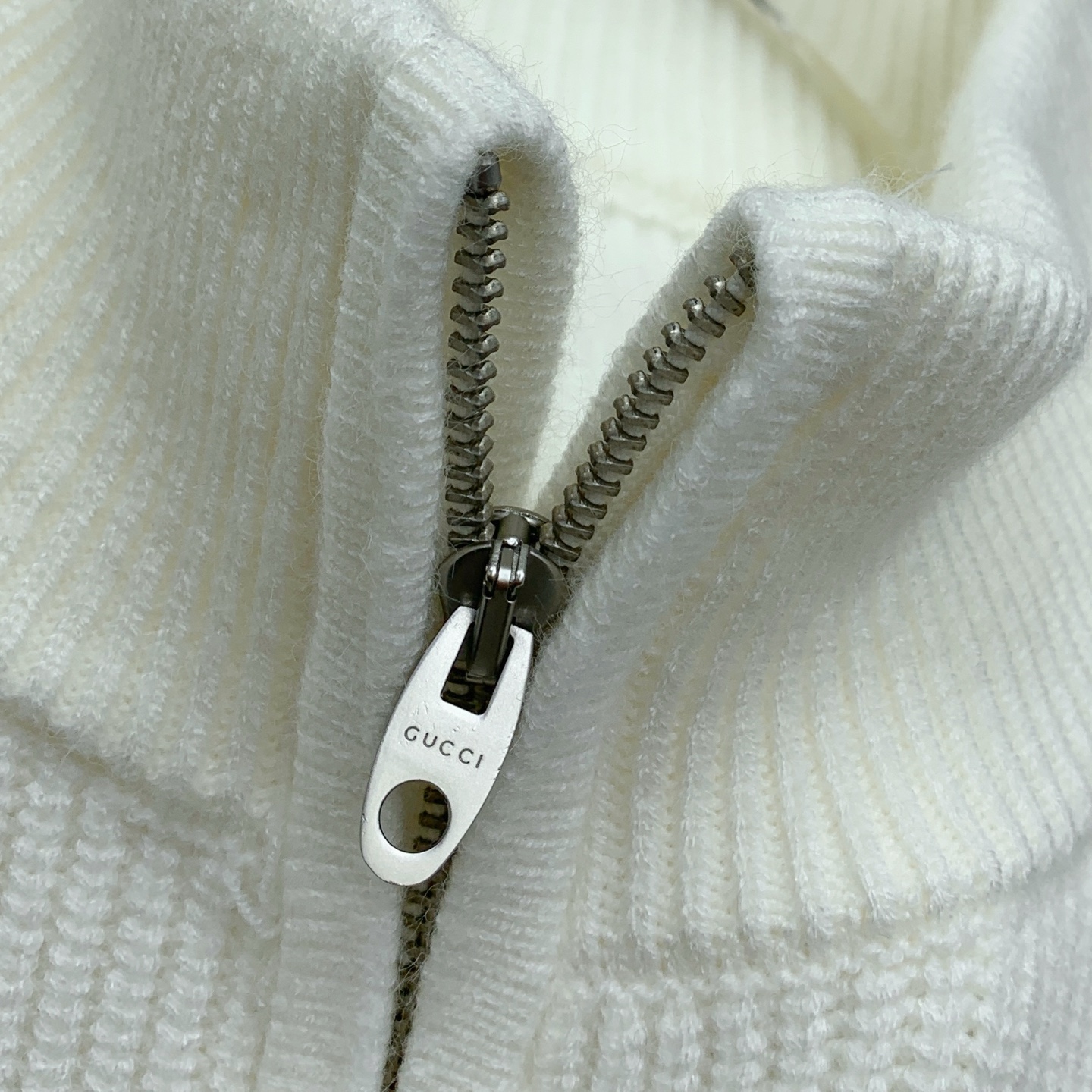 This Gucci wool knit cardigan is the perfect way to add a touch of luxury to your everyday style. Crafted from the finest wool, this cardigan features a comfortable fit and a stylish design.