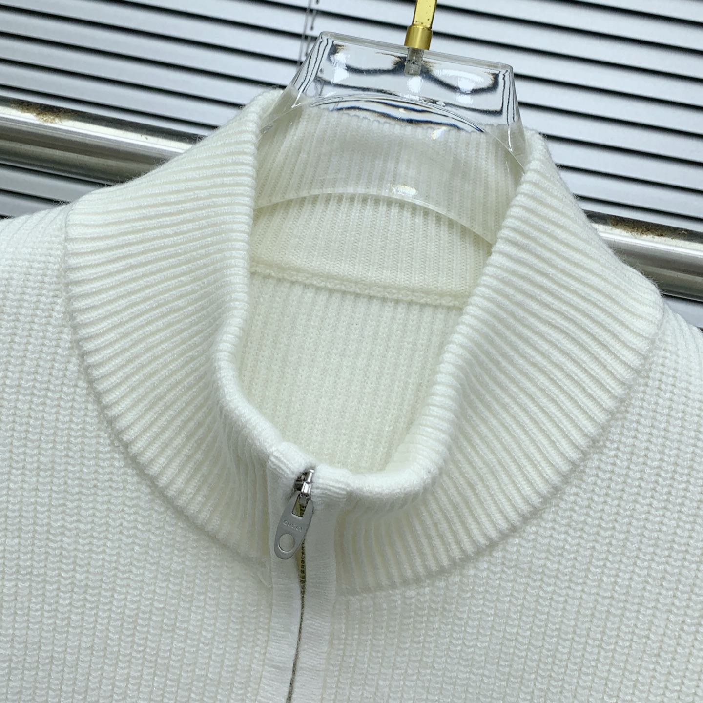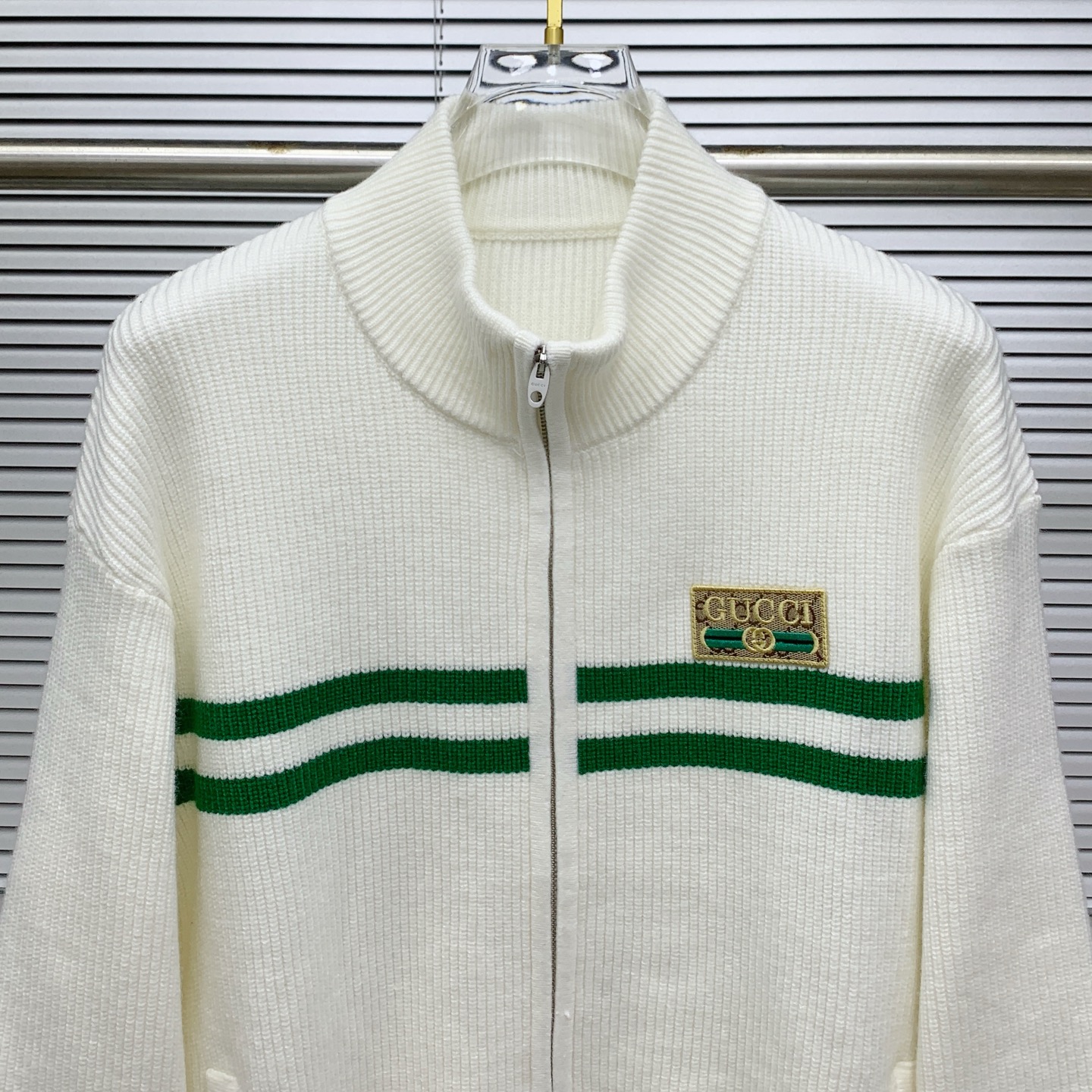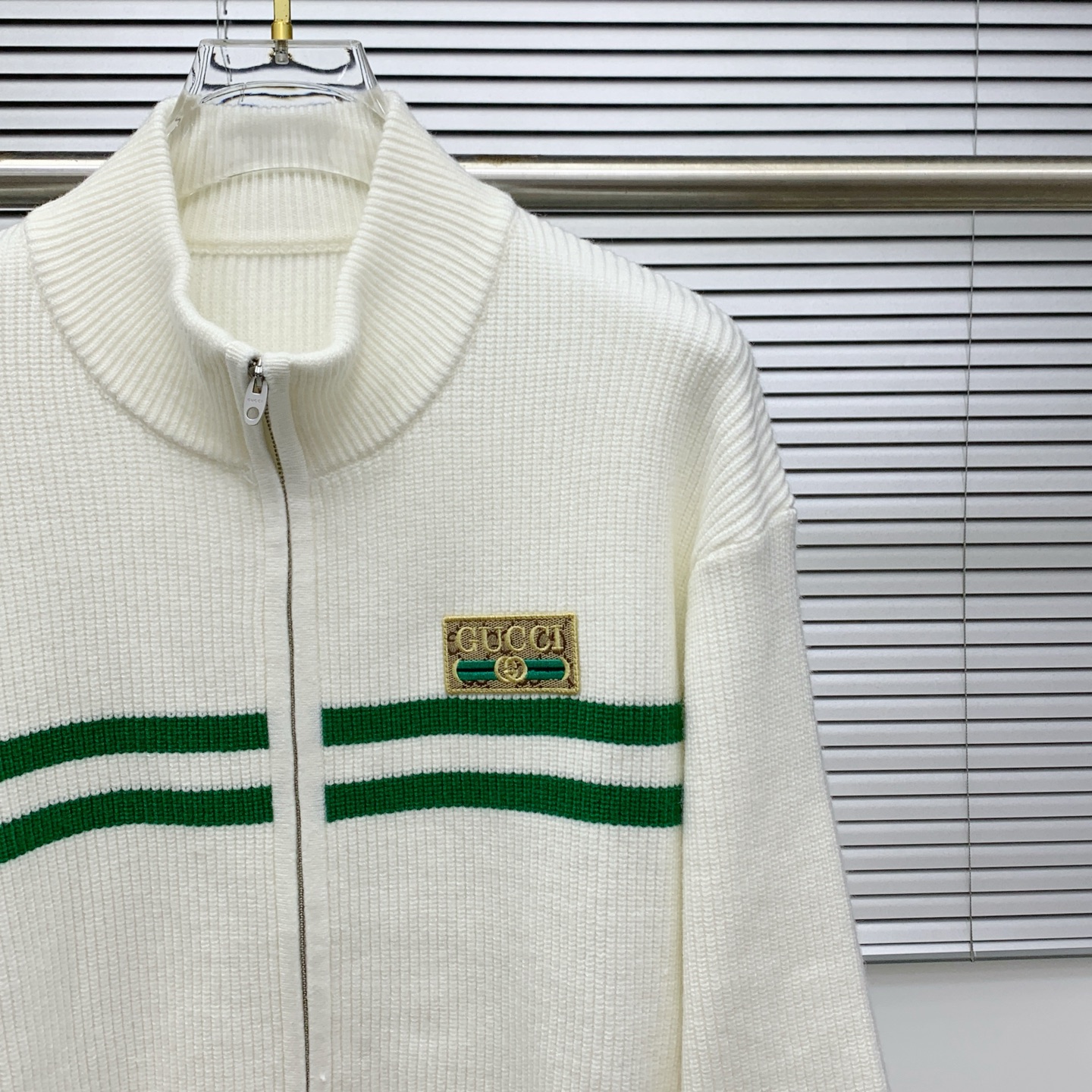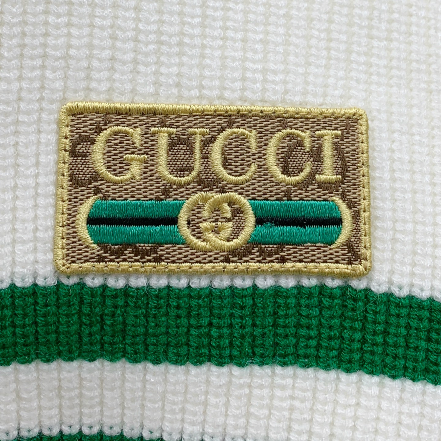 Gucci Wool Knit Cardigan Sweater White with Green Stripes and Logo