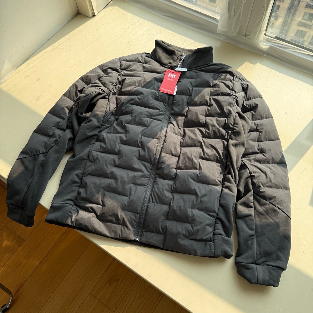 Stay warm & dry in this Helly Hansen puffer jacket. Lightweight, windproof, and water-resistant, it's perfect for outdoor activities. Available in multiple sizes.