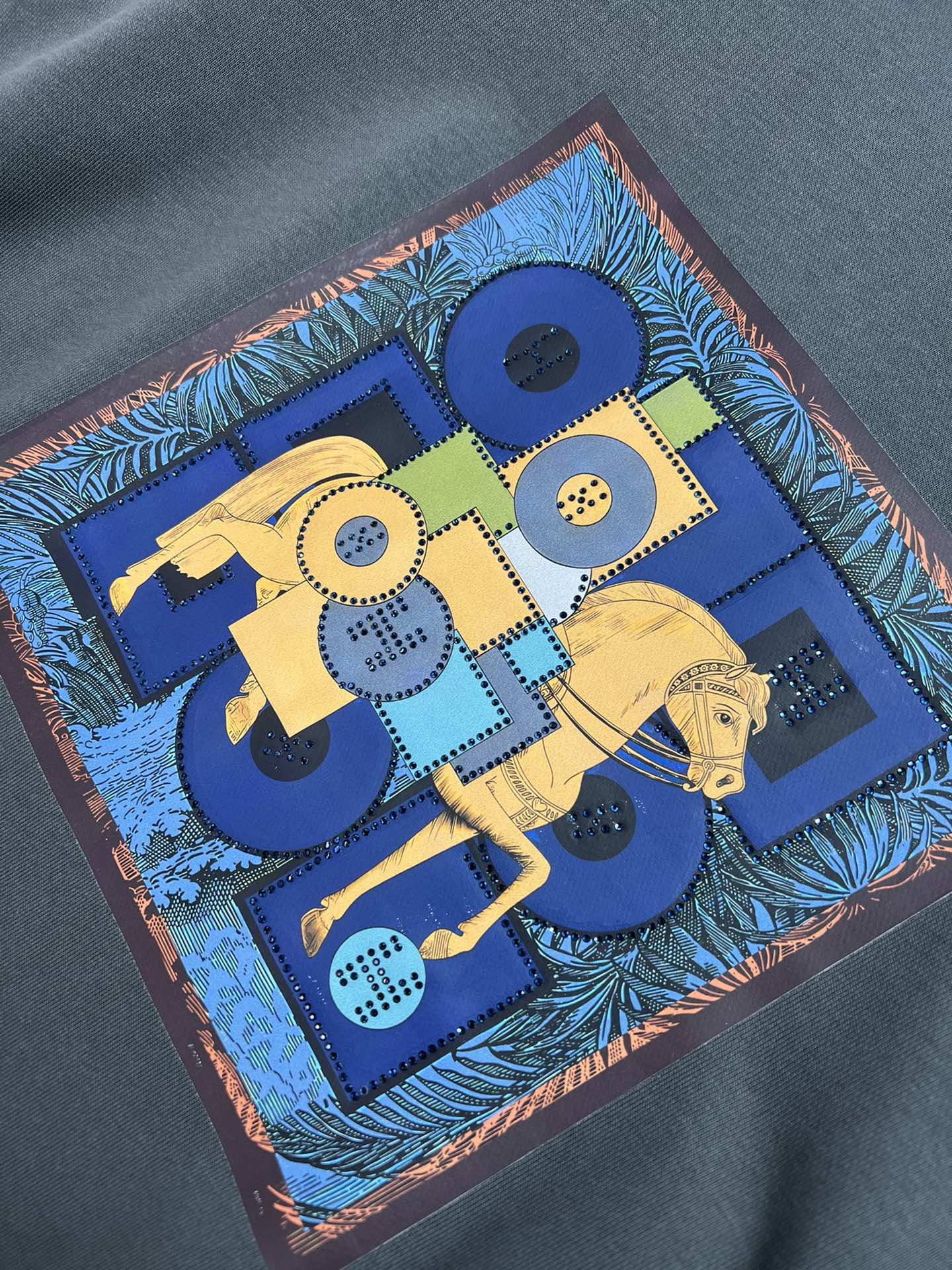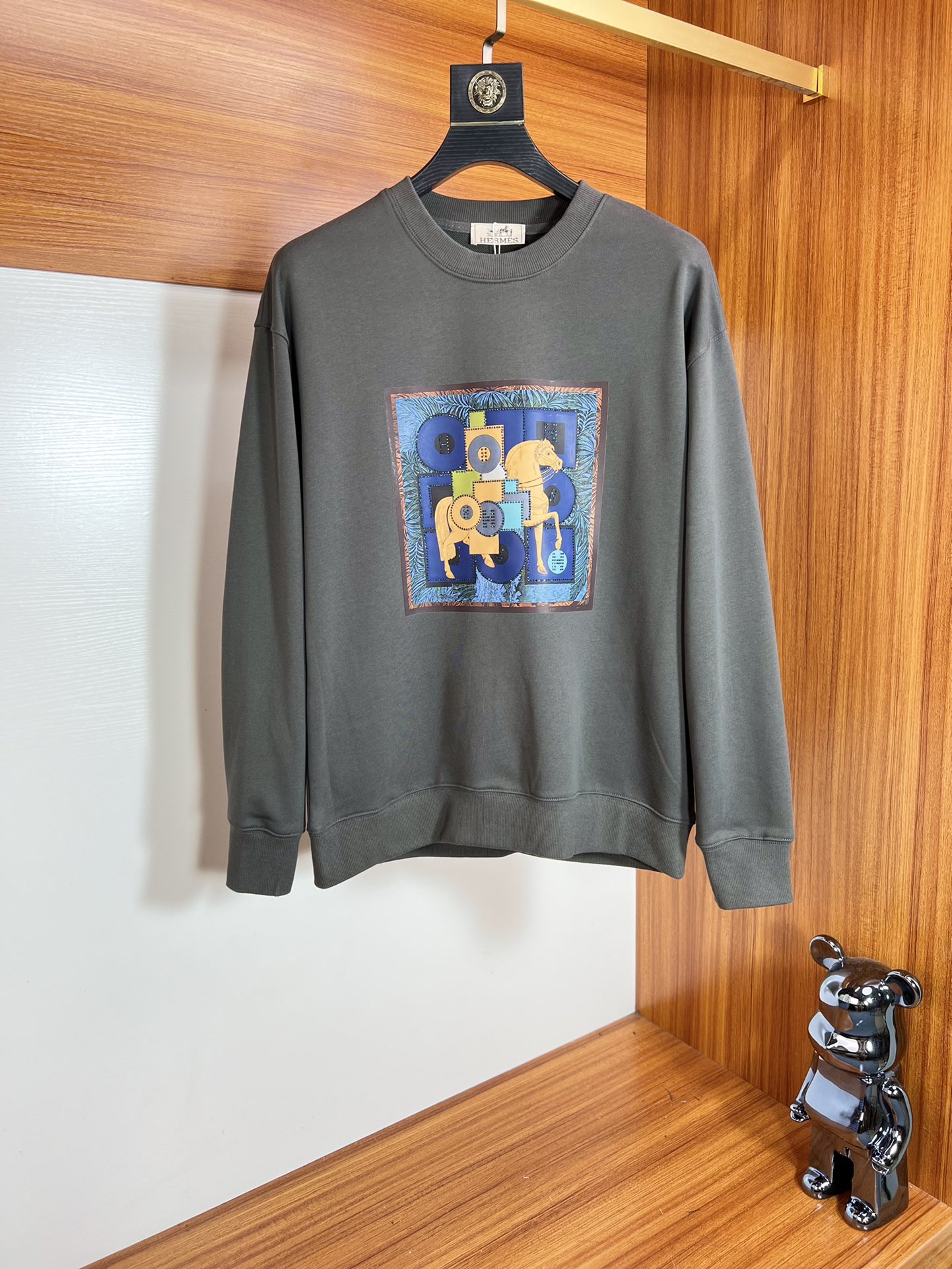 Hermes 2025 FW Cotton Sweatshirt With Diamond Printing, Couple Style