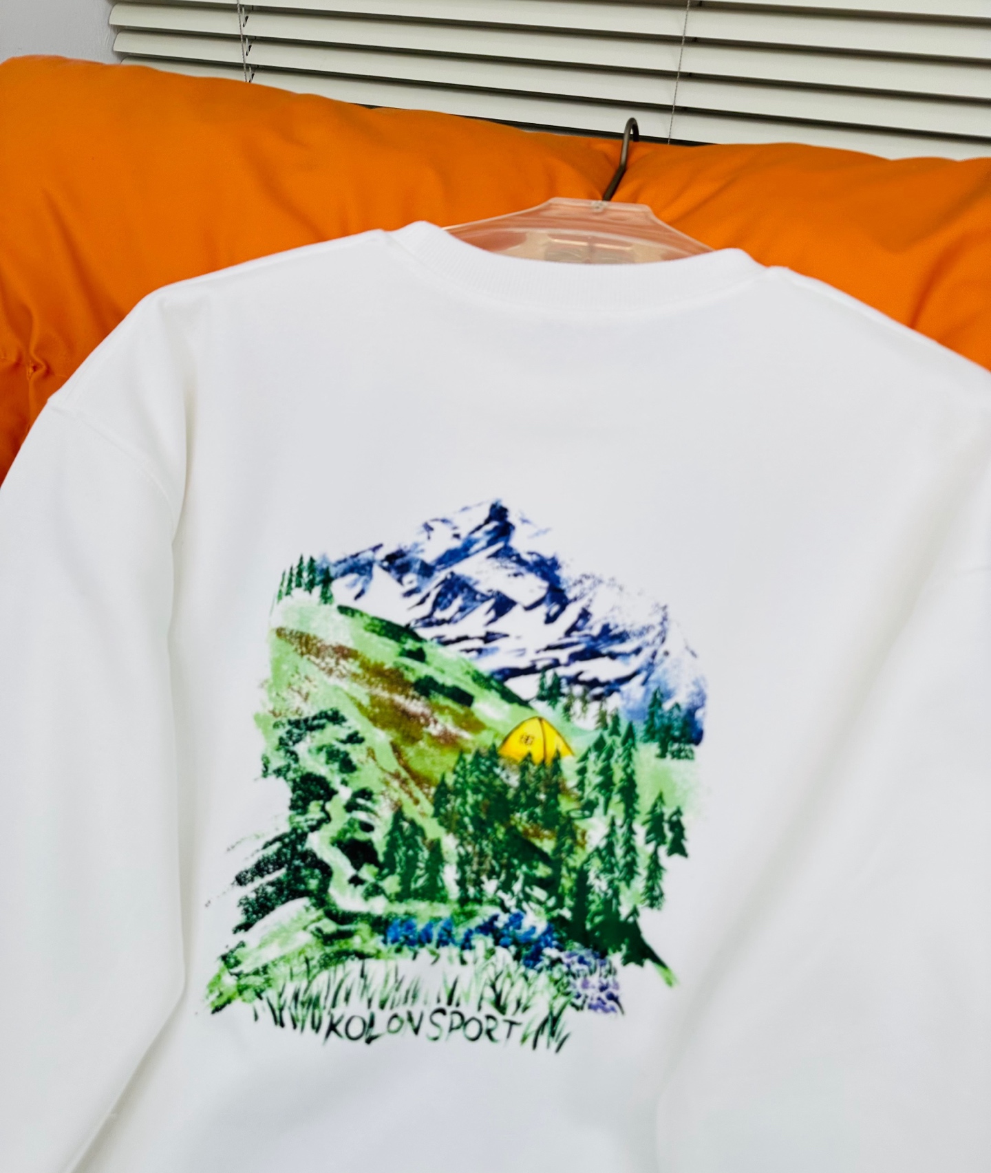 Experience ultimate comfort with this KOLON SPORT crewneck sweatshirt. Crafted from custom 320g cotton with detailed prints.