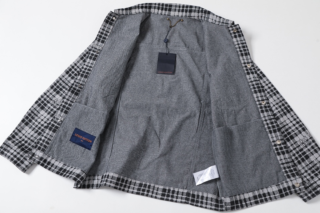 Louis Vuitton 1V 25FW Gray Checkered Print Denim Jacket - Unisex Luxury